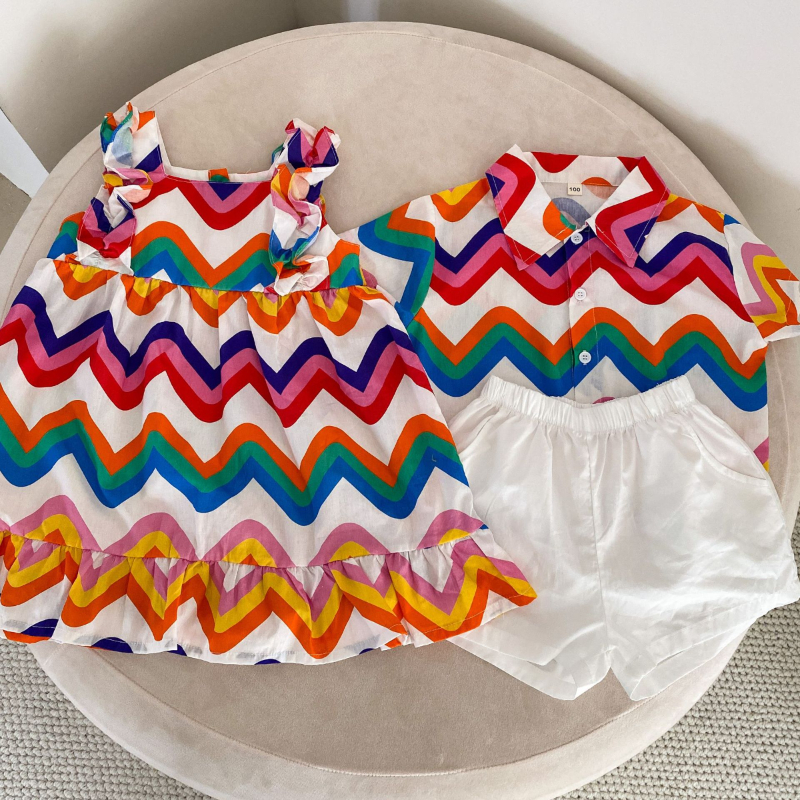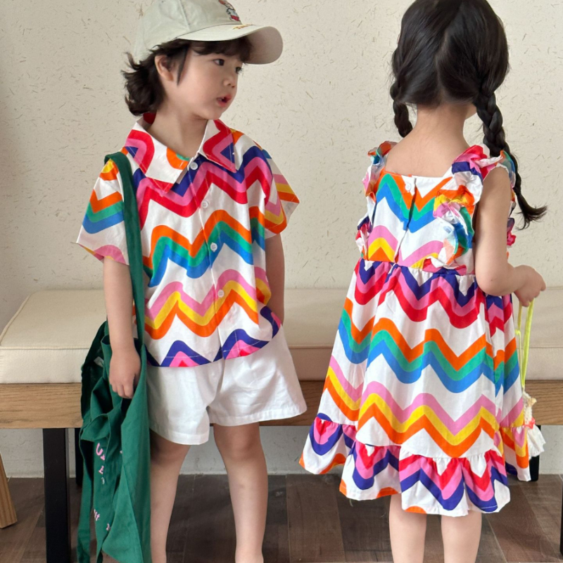 【BS248】日系繽紛普普風兄妹短袖洋裝套裝(1色)