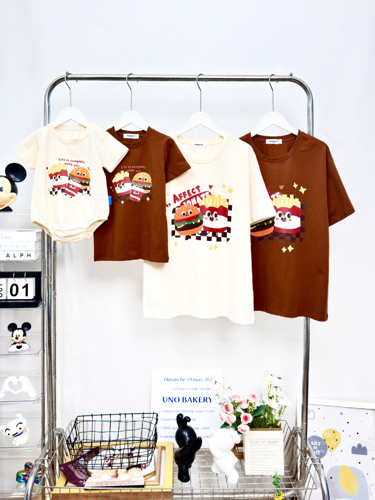 【F145】日系漢堡薯條飲料全家福親子短袖上衣(2色)