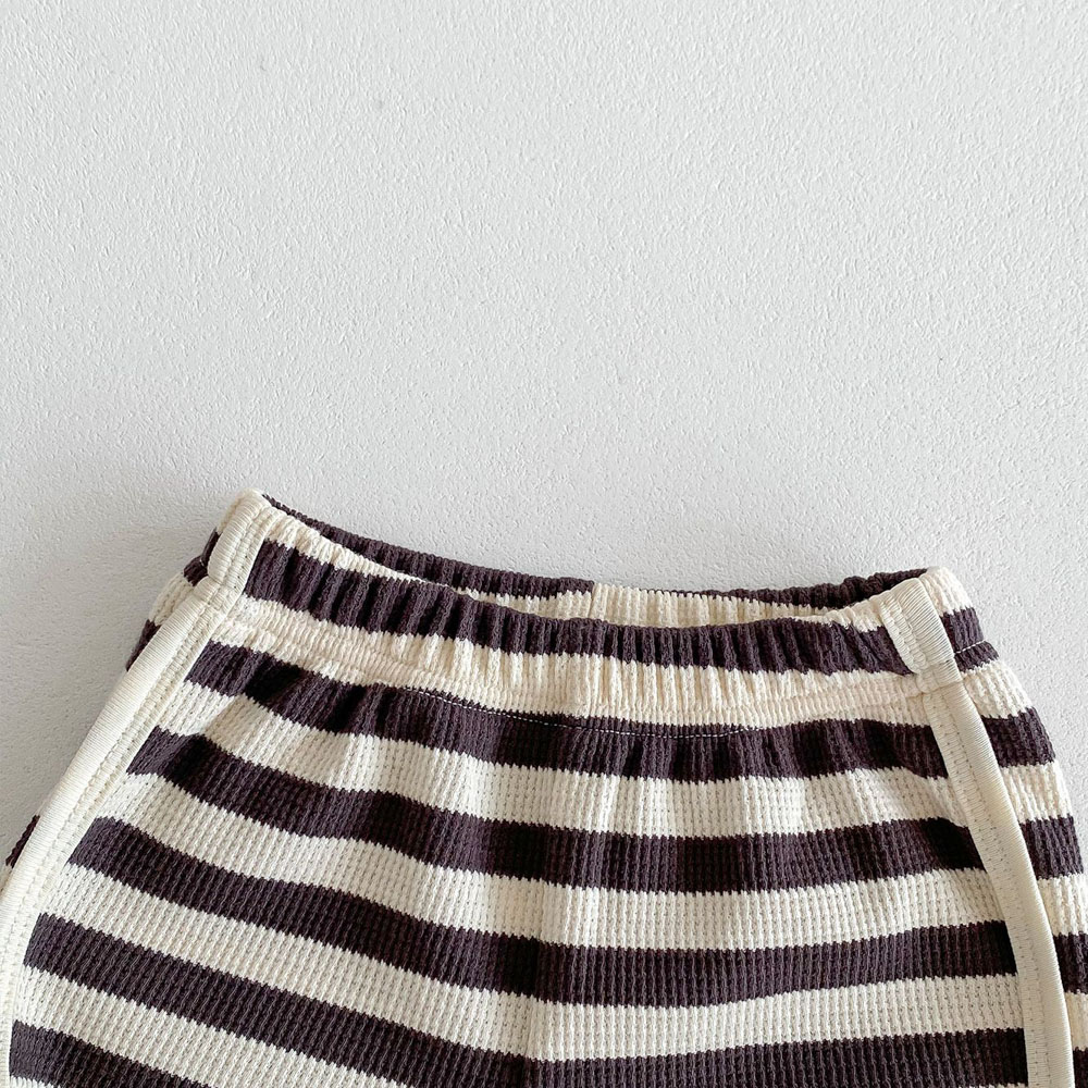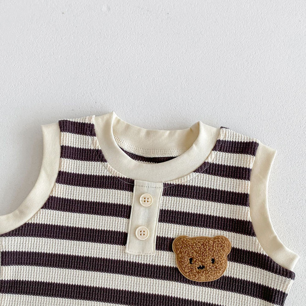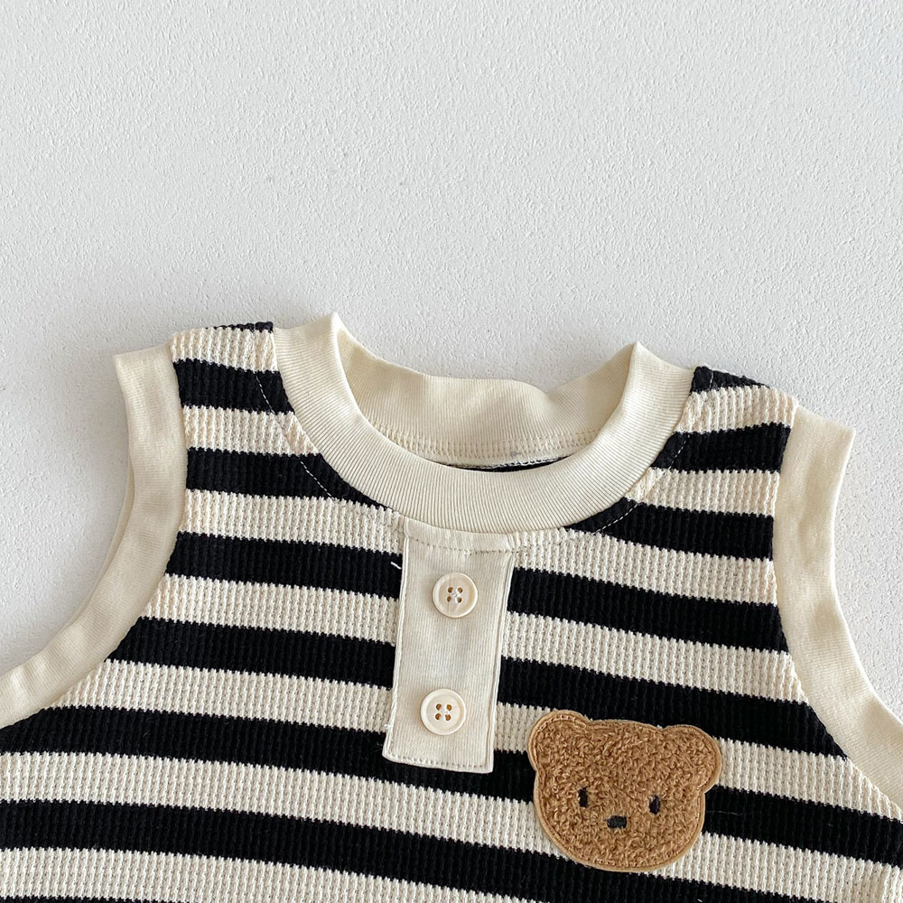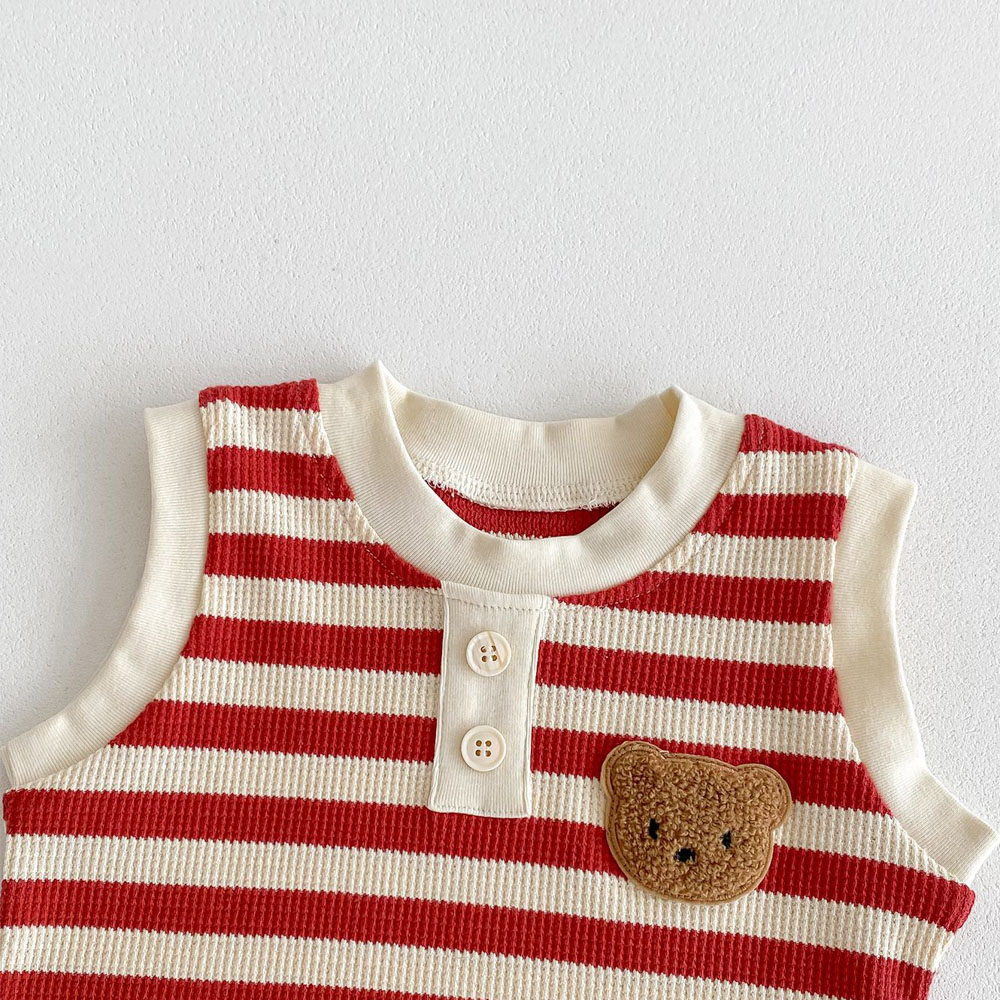 【BE007】日系大頭熊條紋兩件式無袖短褲套裝(4色)