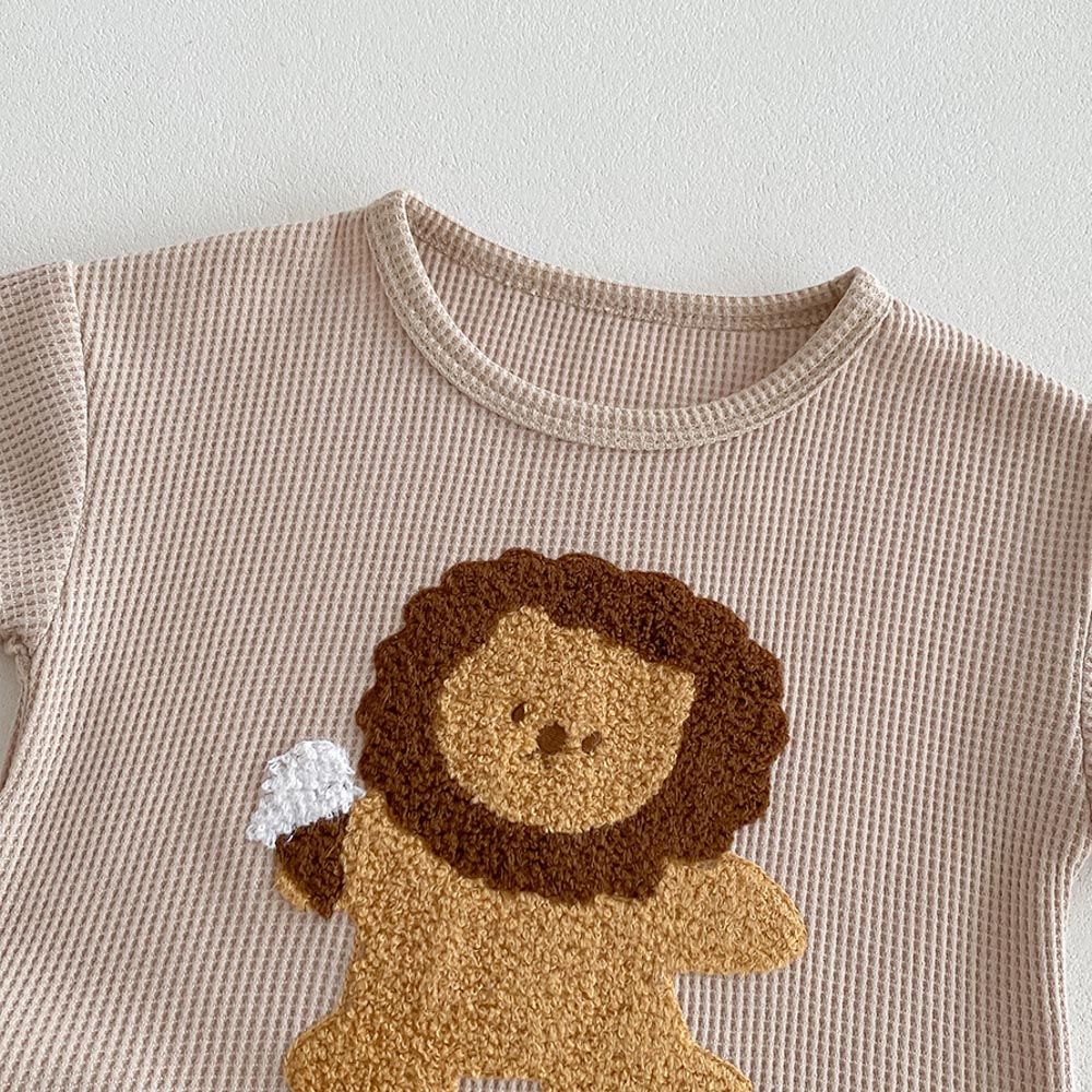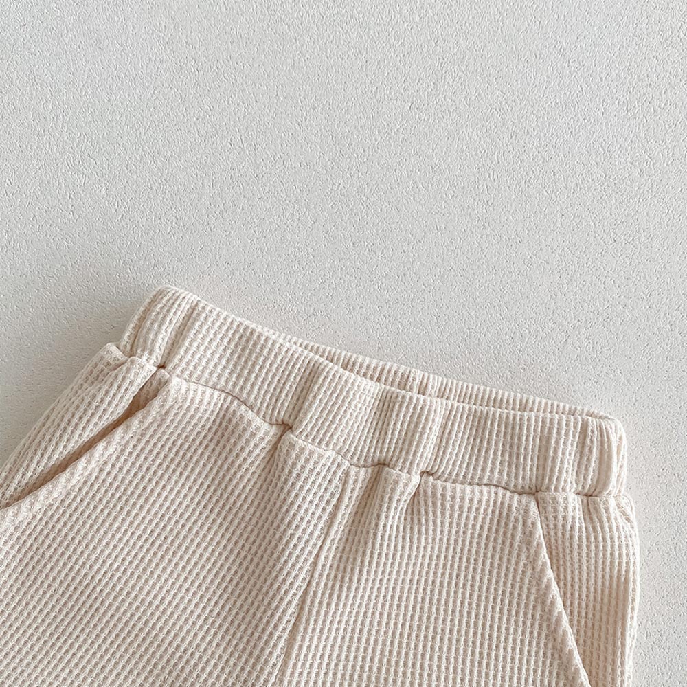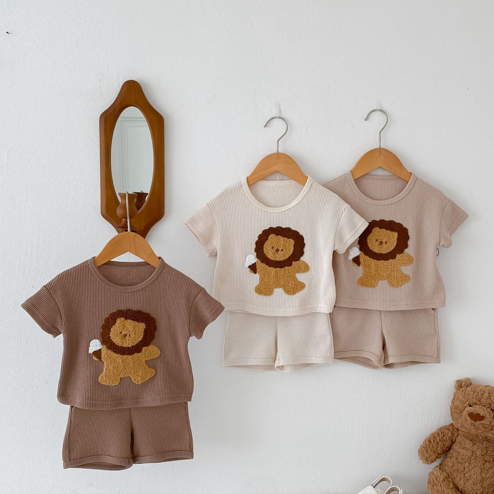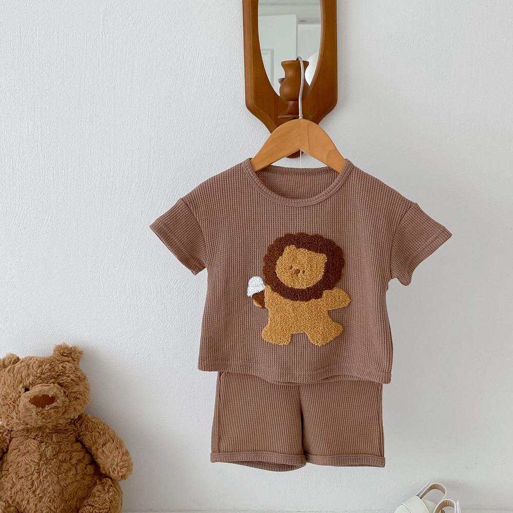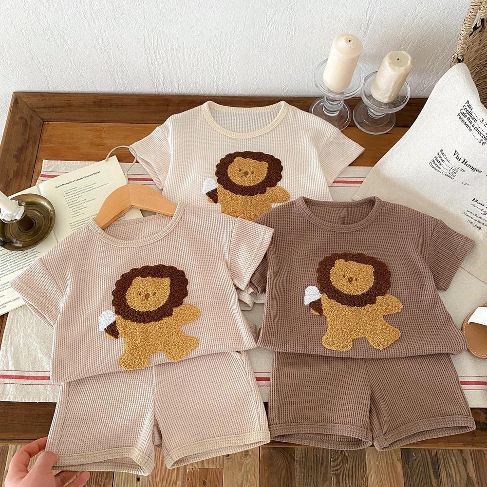 【BE016】日系冰淇淋獅子華夫格紋兩件式短袖短褲套裝(3色)