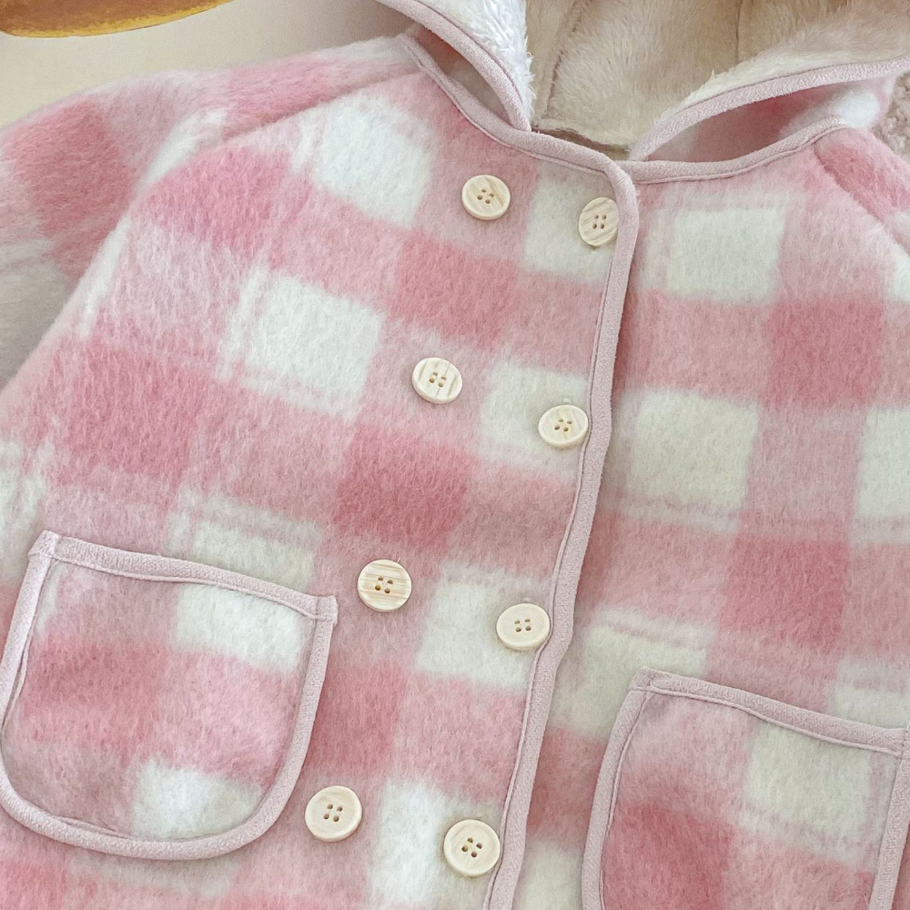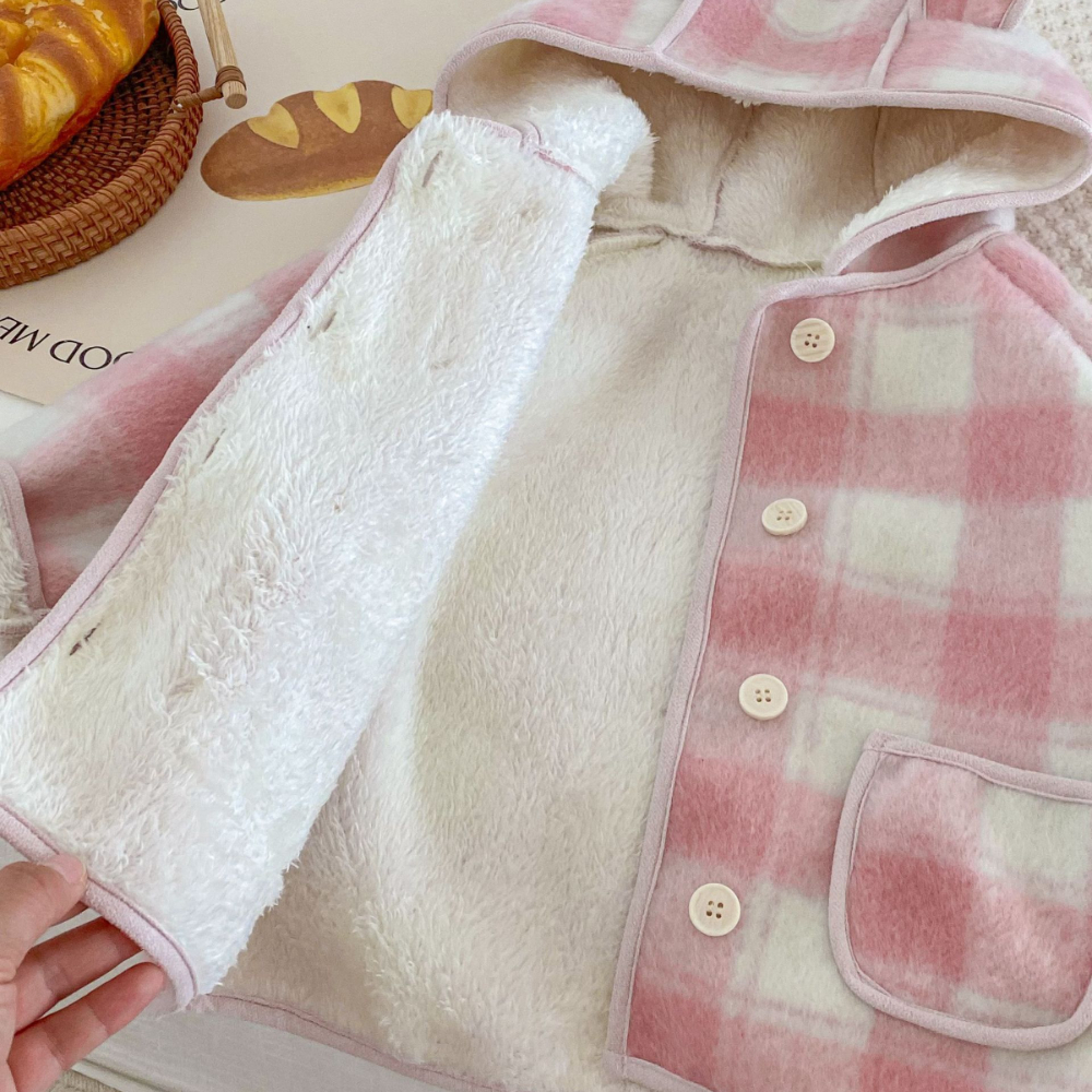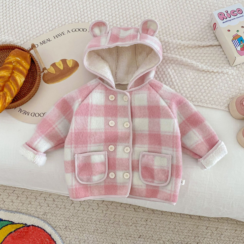 【BO053】日系立體耳朵格紋加厚保暖連帽長袖外套(1色)