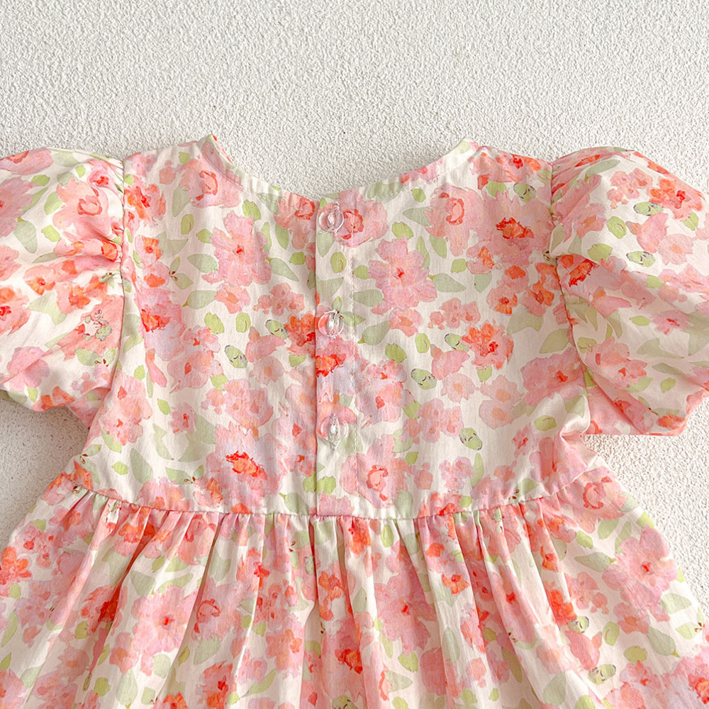 【BS145】韓版大蝴蝶結水彩花短袖包屁衣小洋裝(送髮箍)(1色)