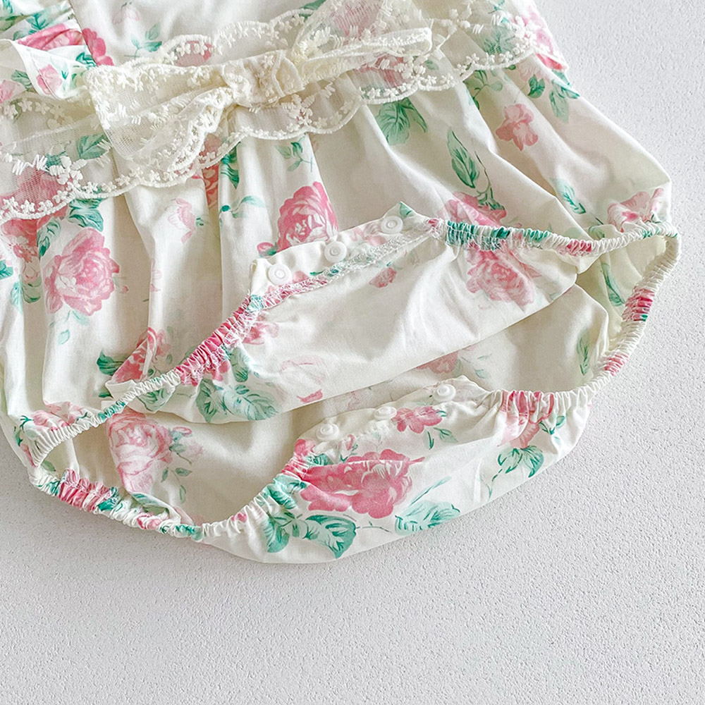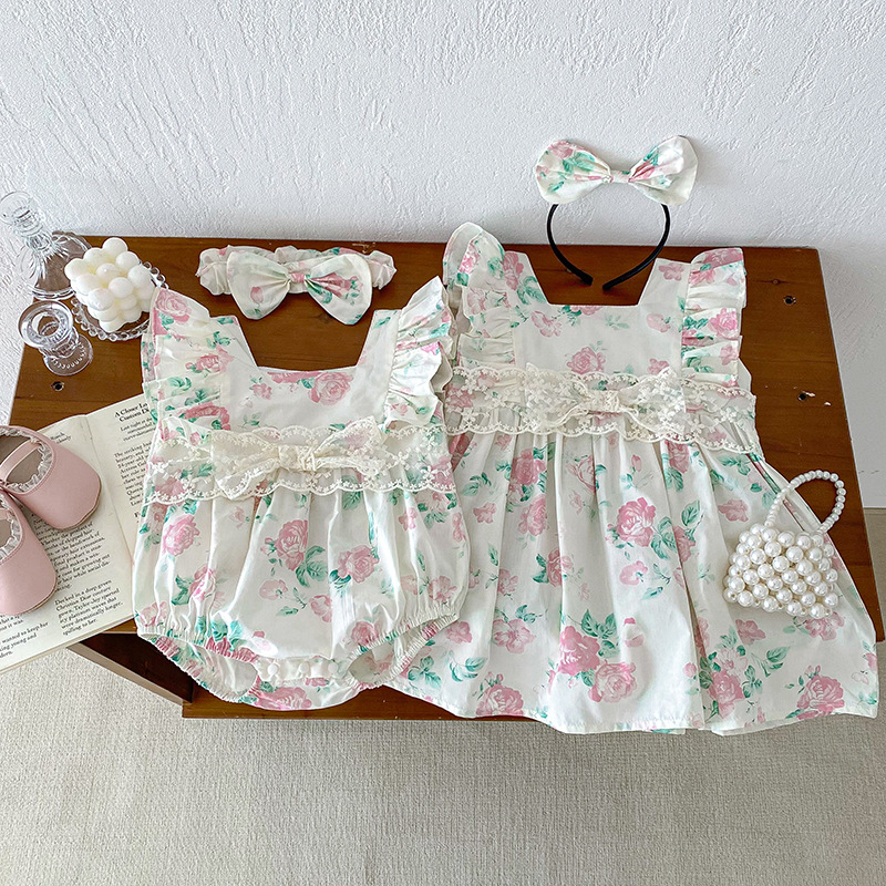 【BS149】韓版蕾絲玫瑰花無袖包屁衣小洋裝(送髮箍)(1色)