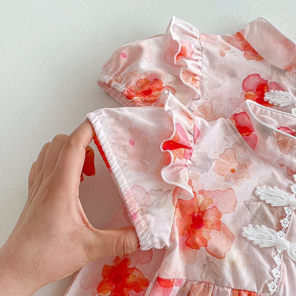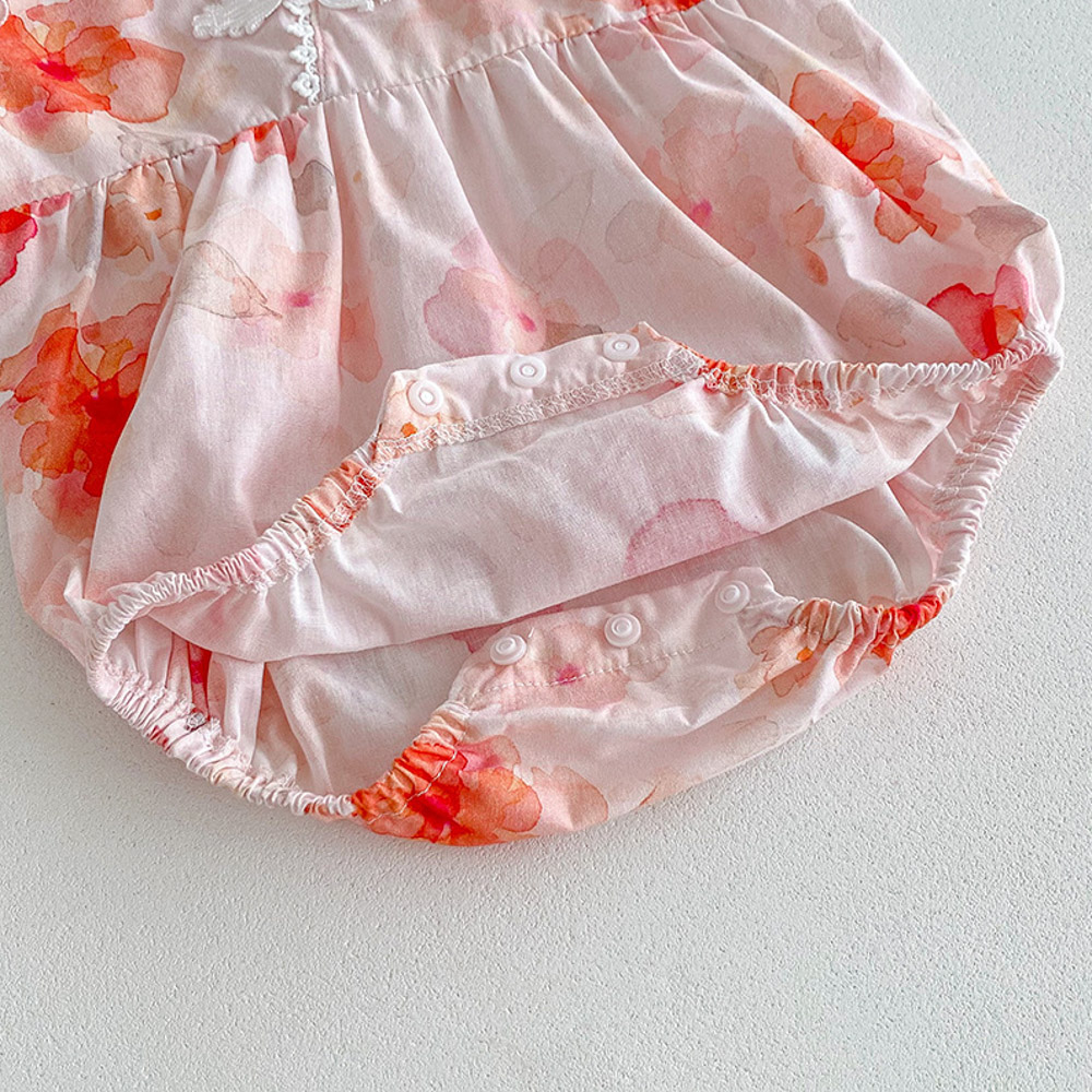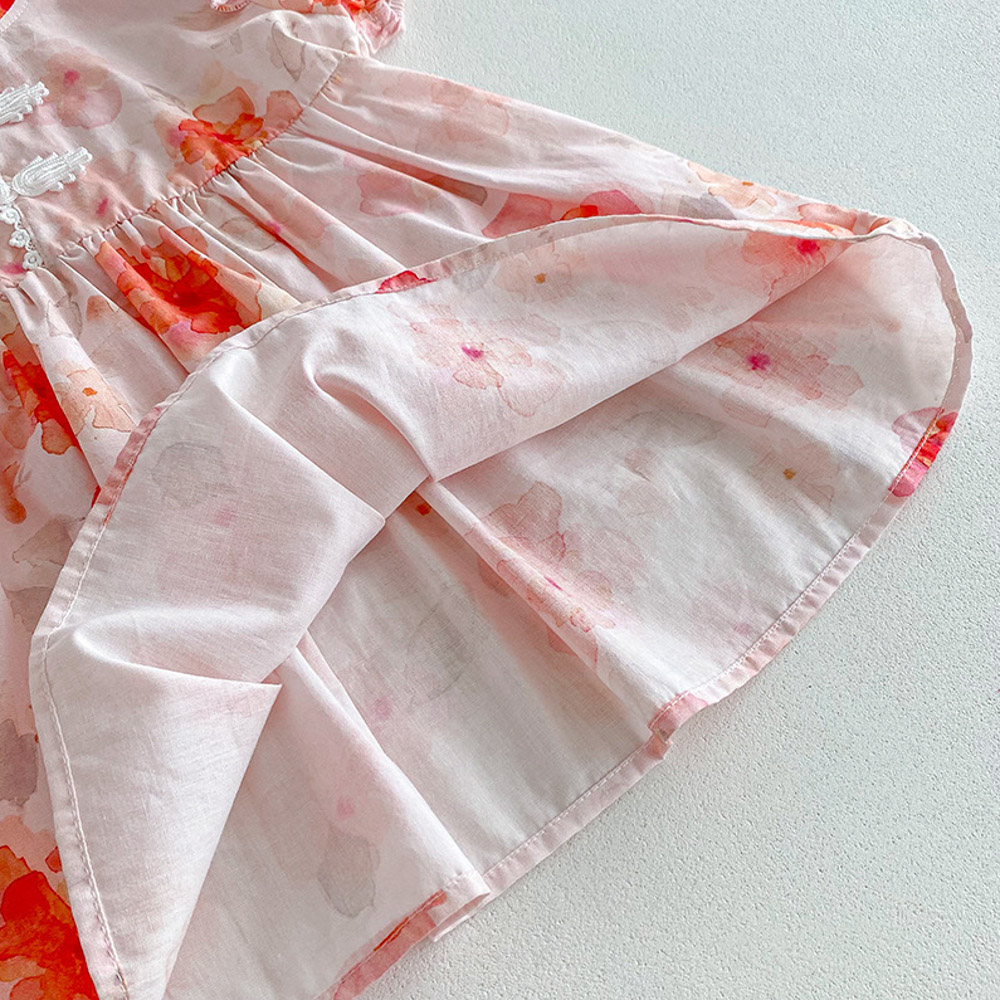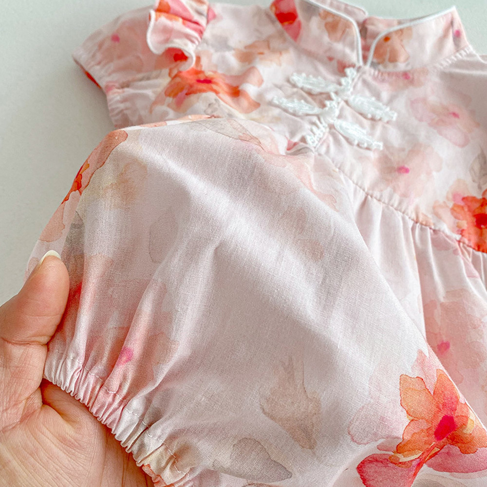 【BS151】中國風水彩花短袖包屁衣小洋裝(送髮箍)(1色)