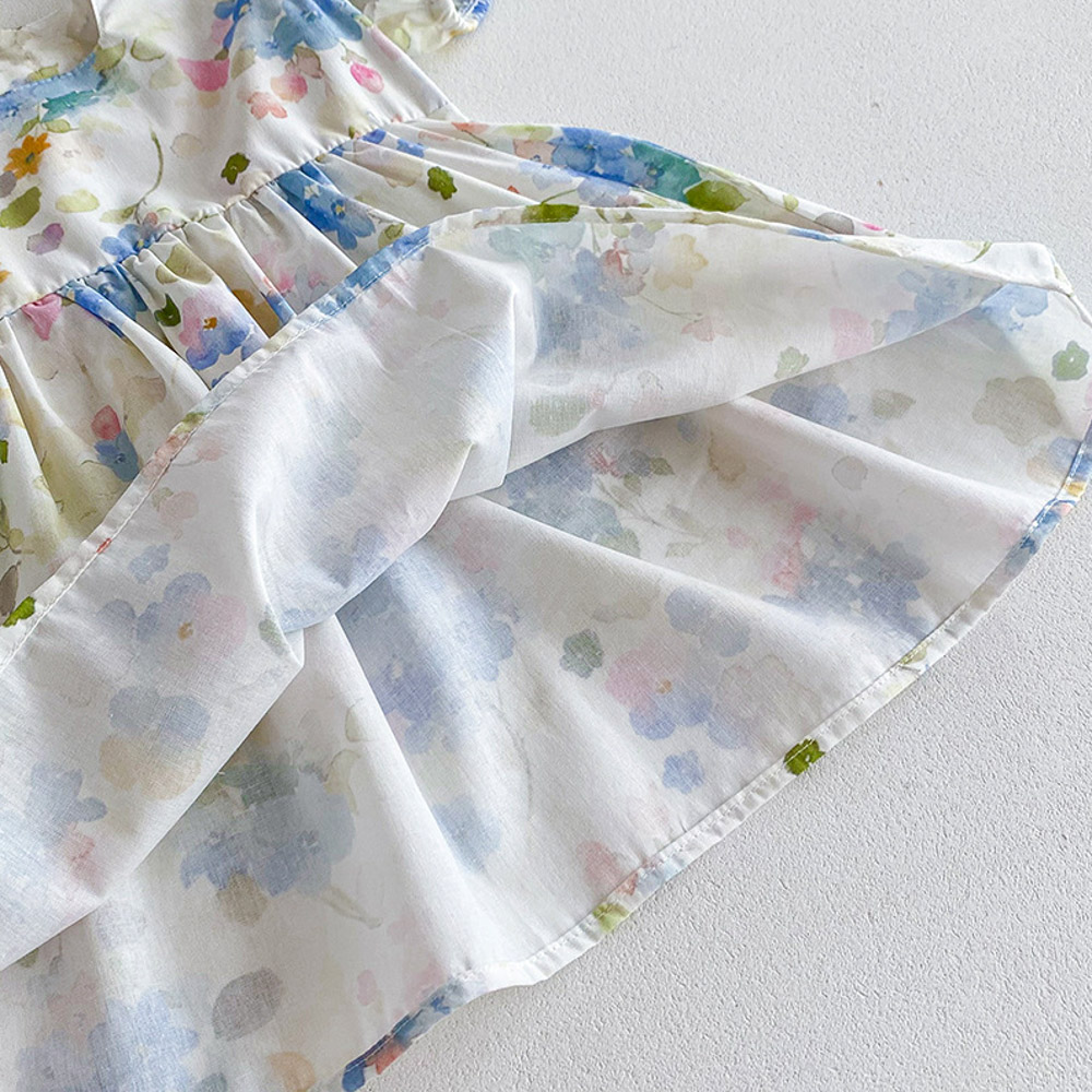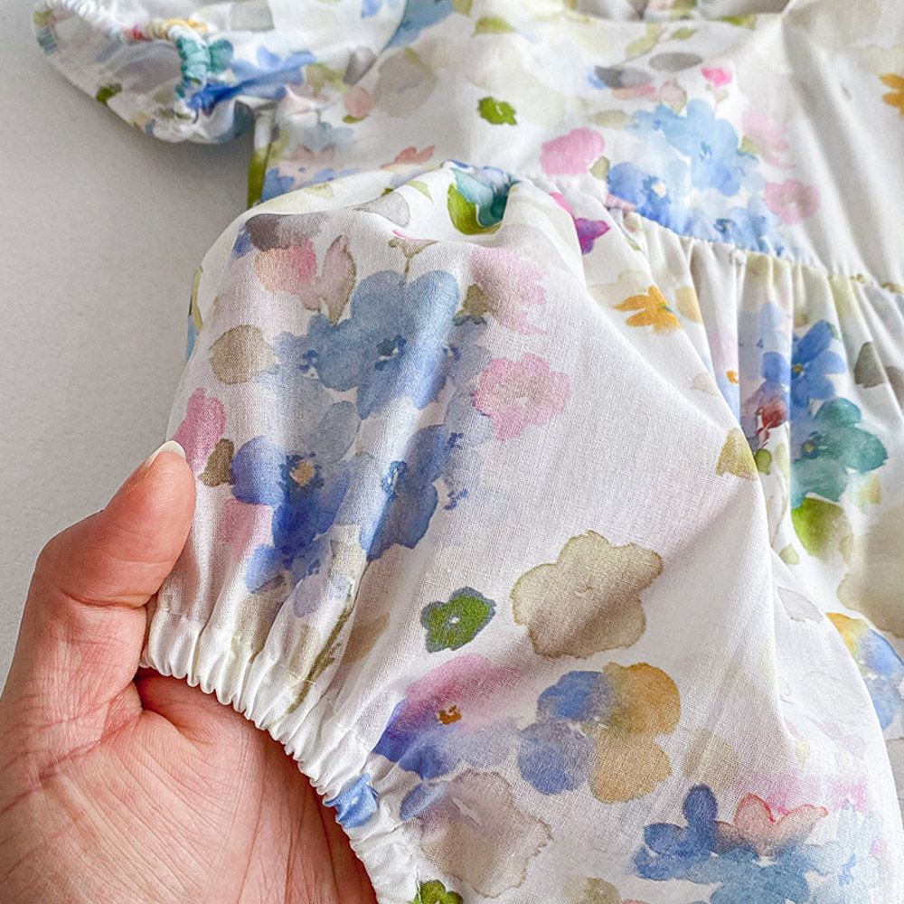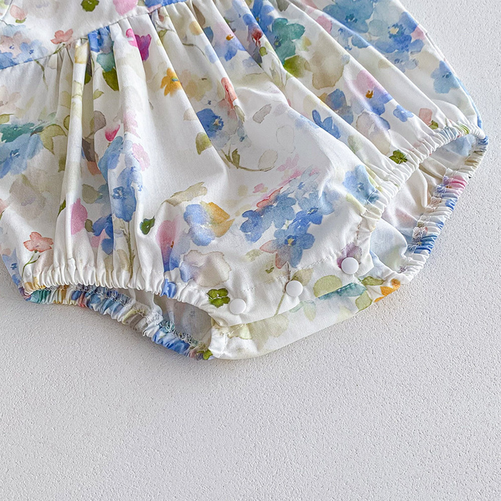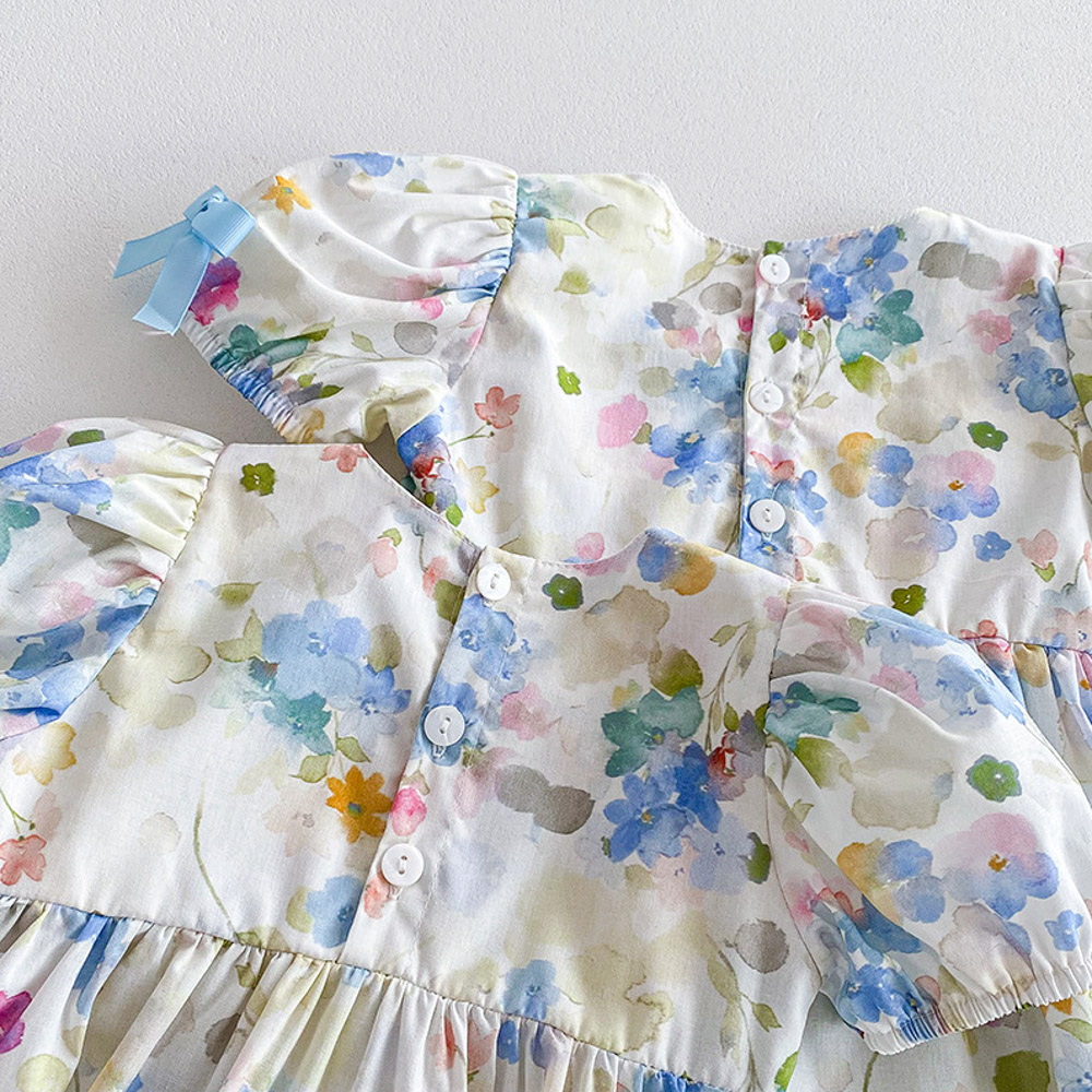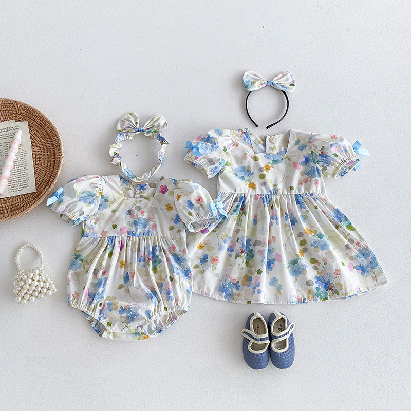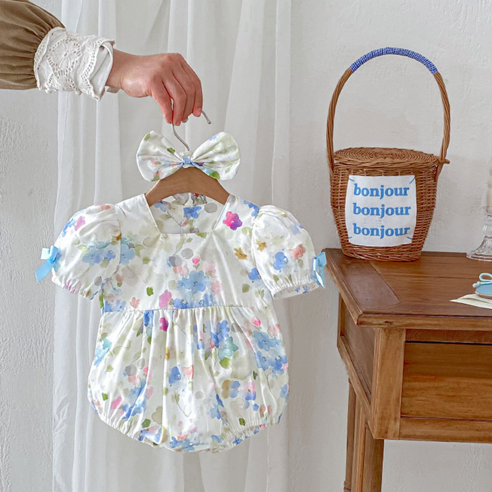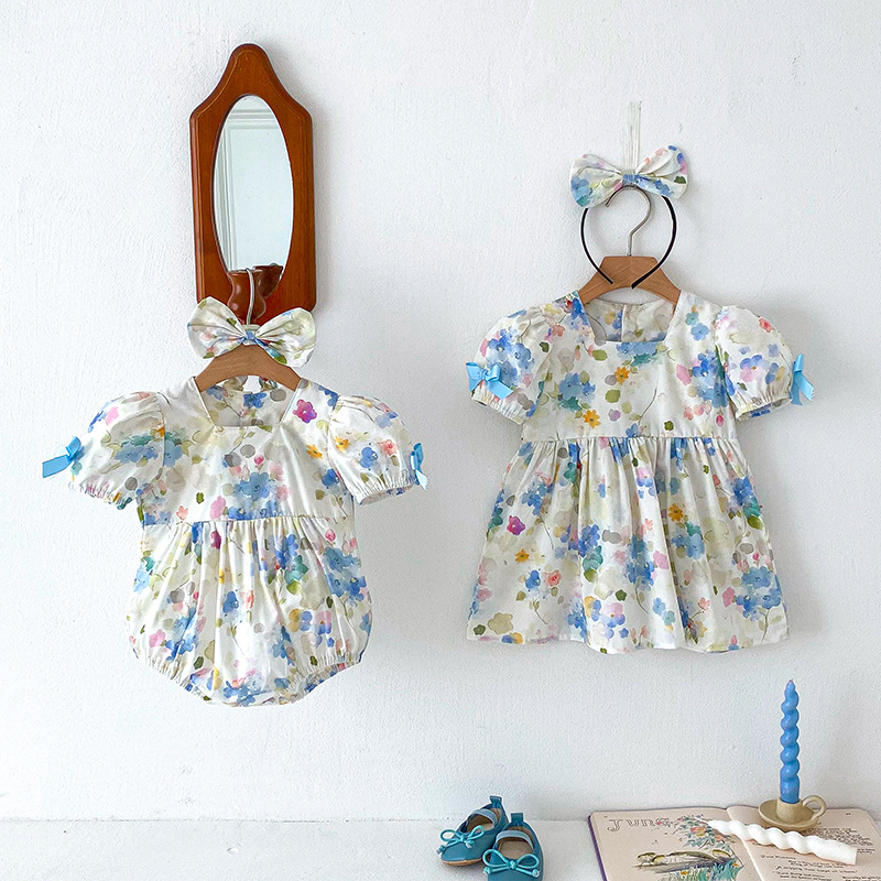 【BS154】韓版繽紛水彩花短袖包屁衣小洋裝(送髮箍)(1色)