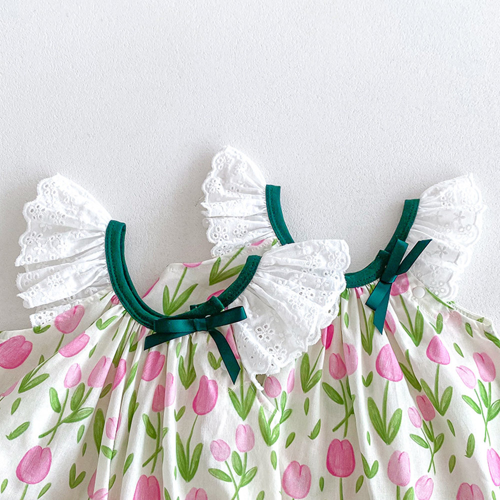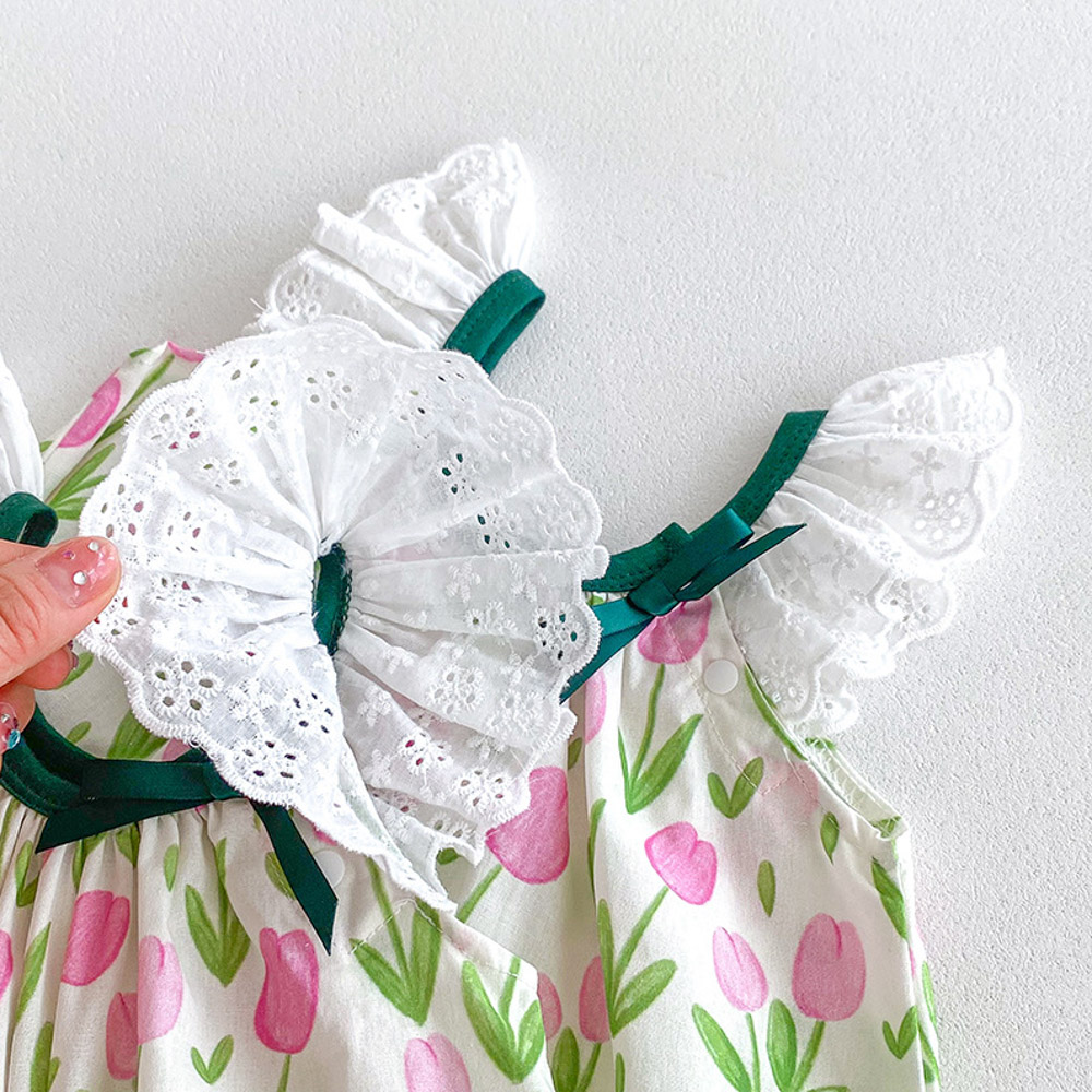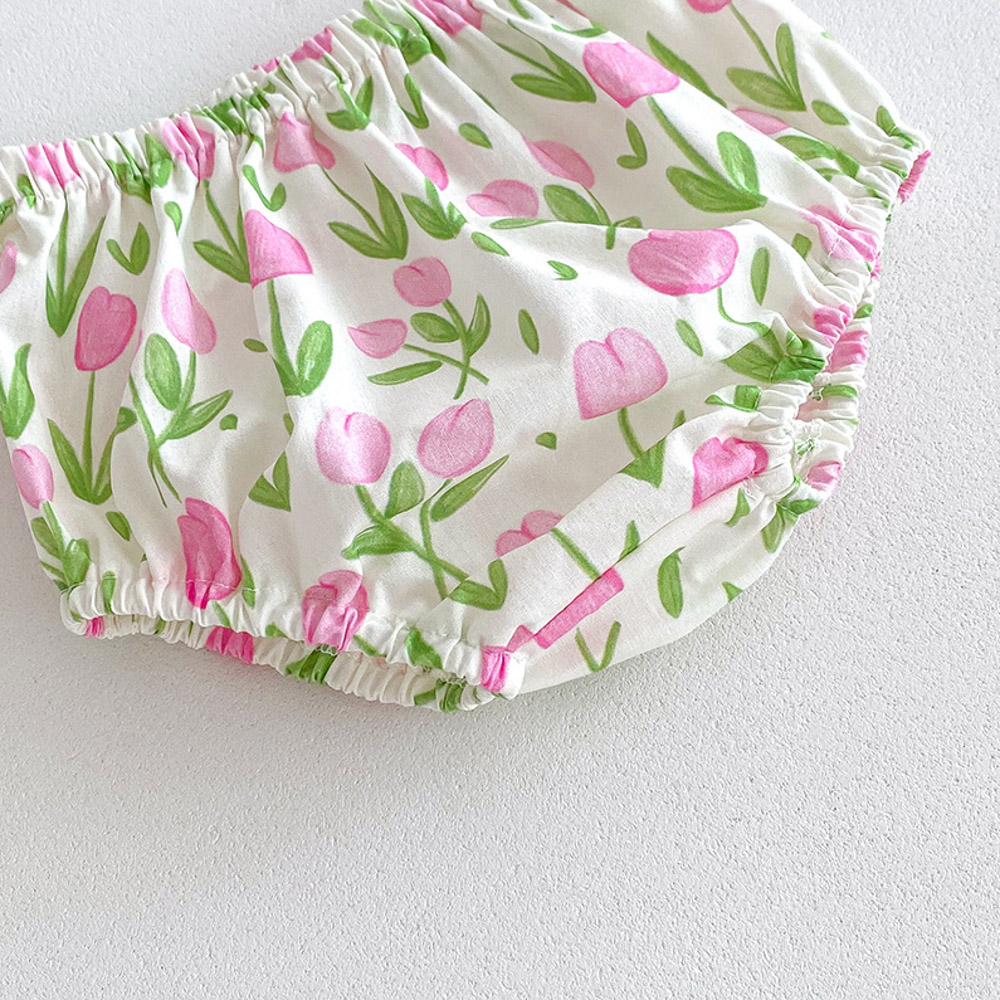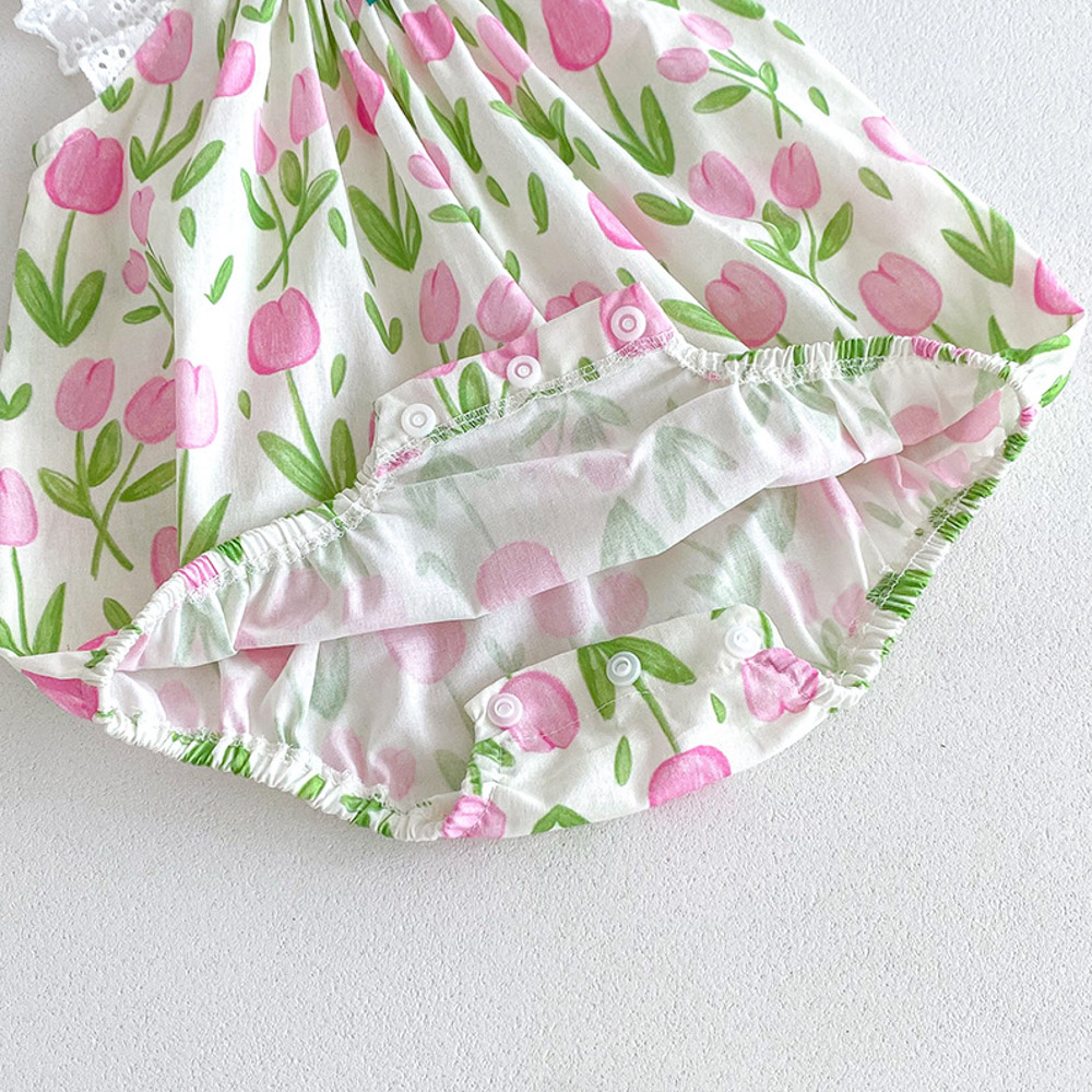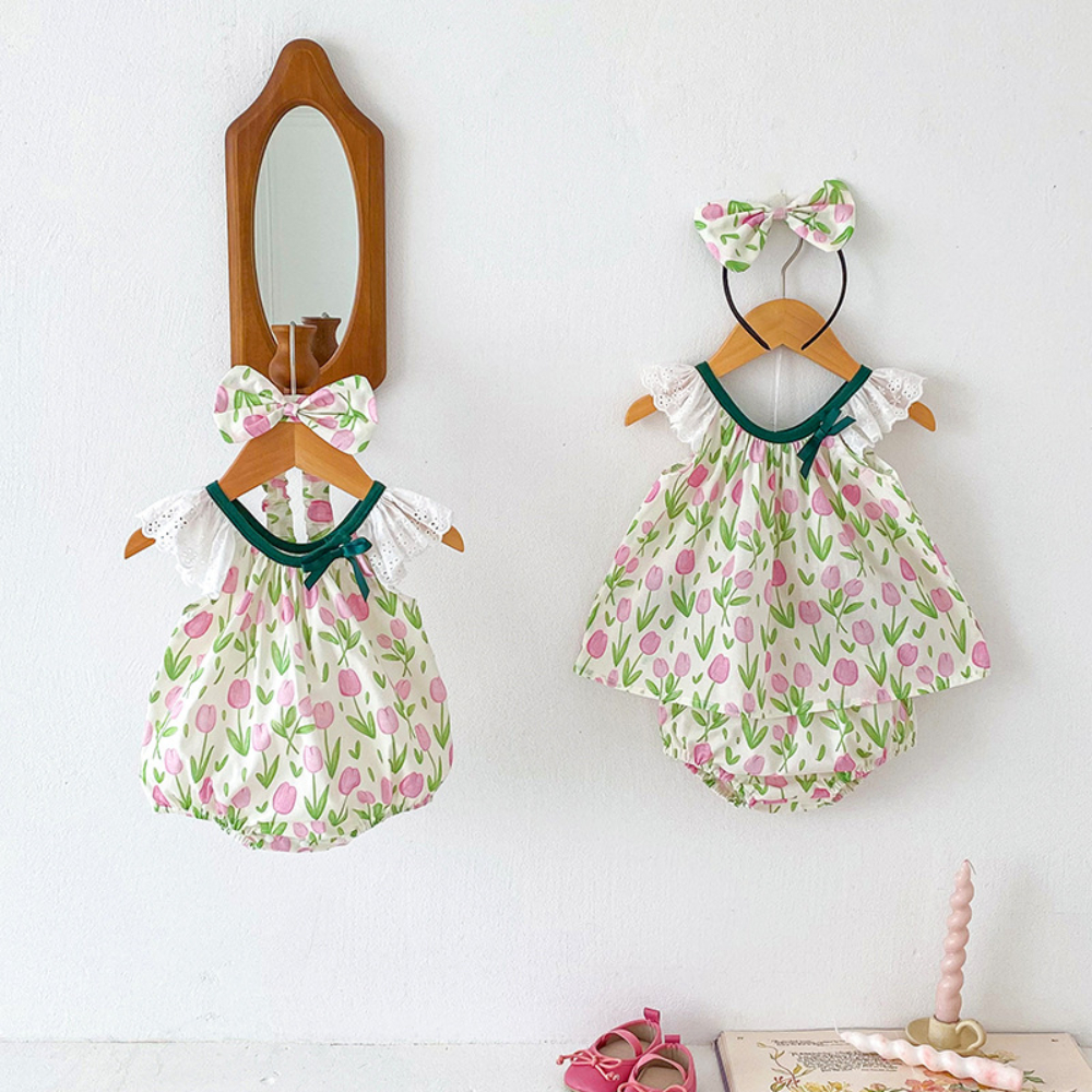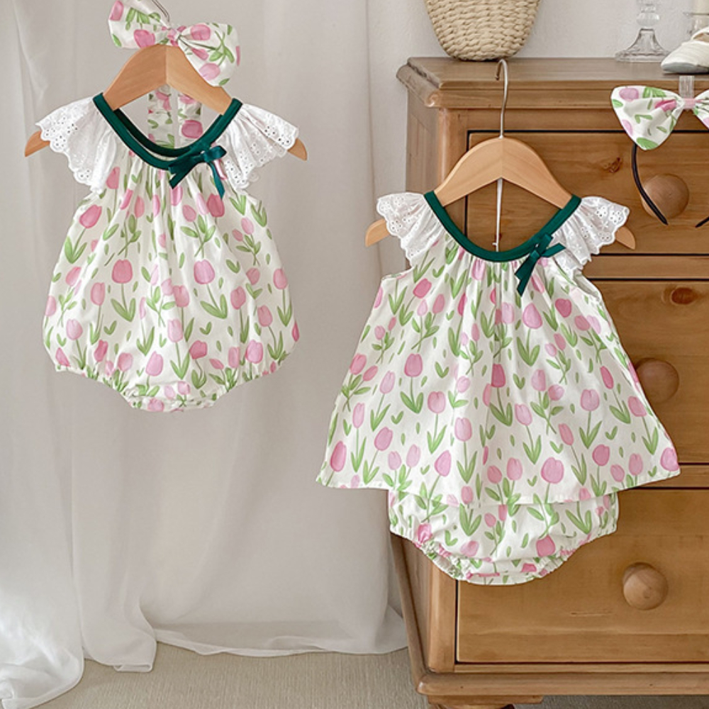 【BS158】韓版水彩鬱金香無袖包屁衣套裝(送髮箍)(1色)