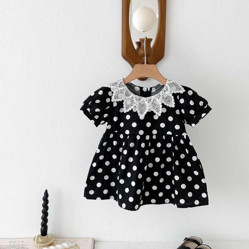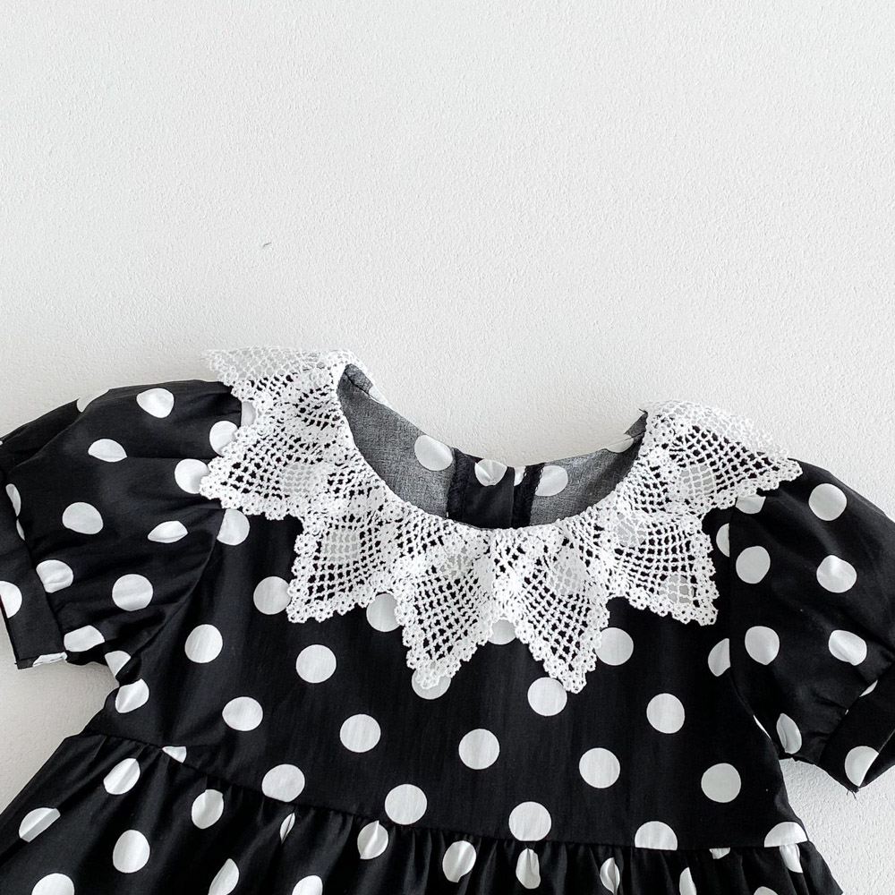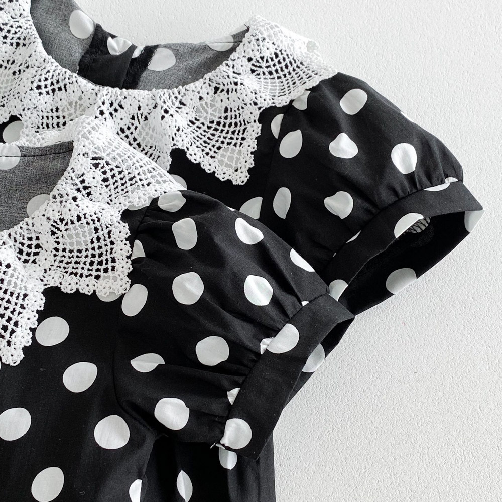 【BS171】韓版蕾絲尖領點點短袖包屁衣小洋裝(1色)