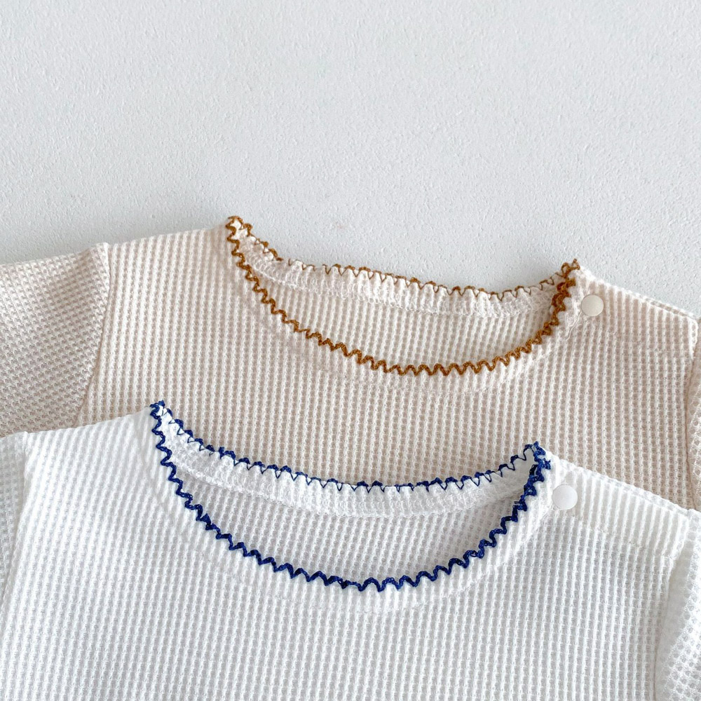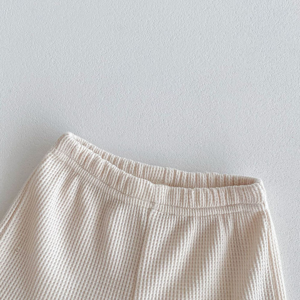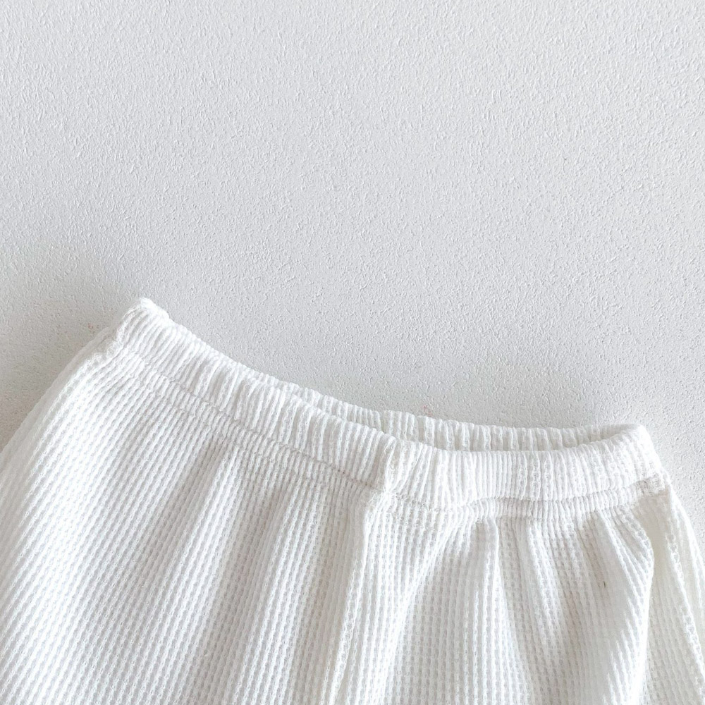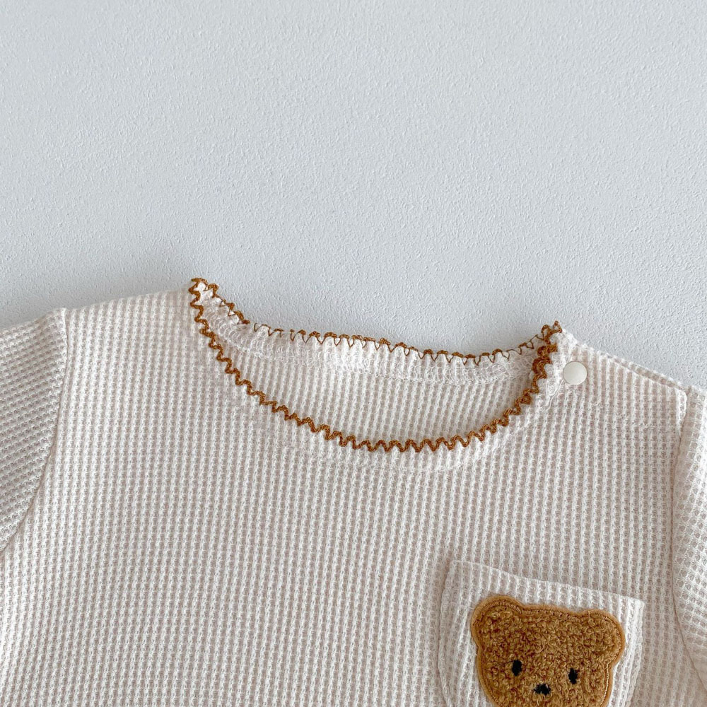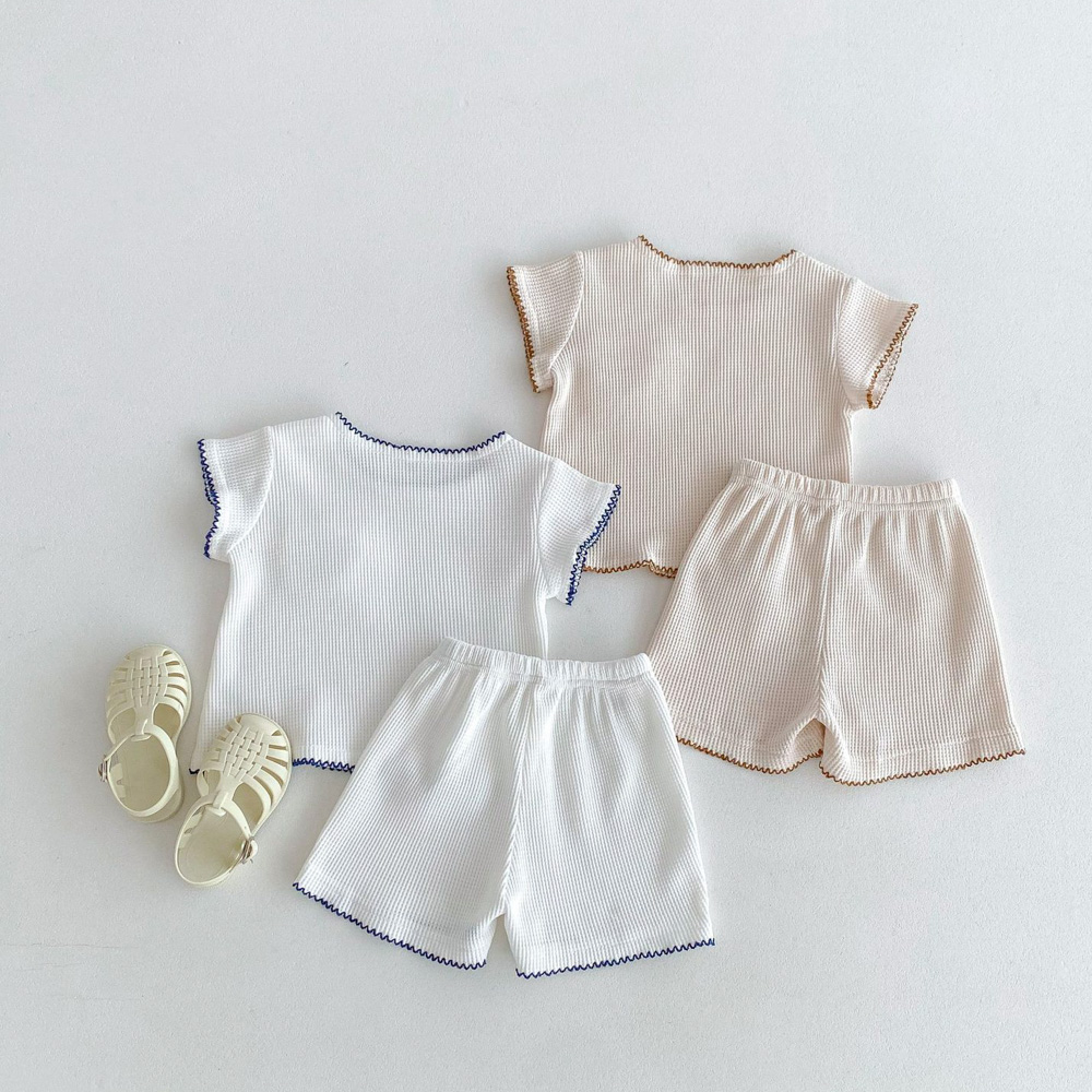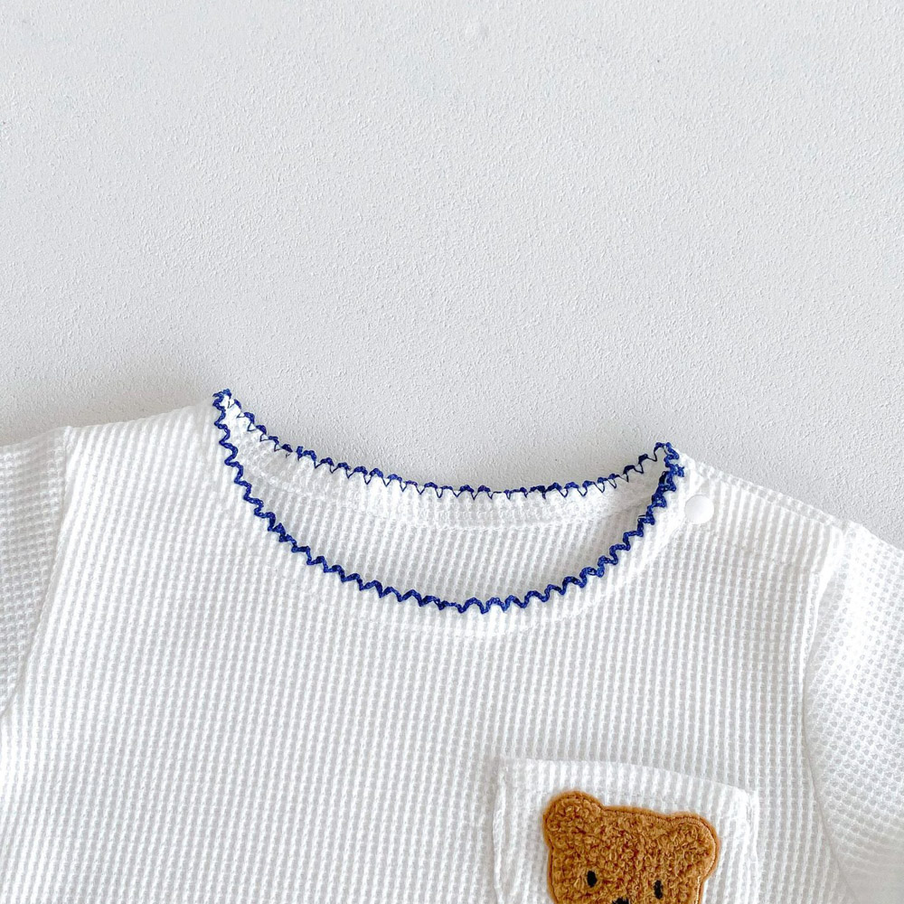 【BE012】日系撞色滾邊口袋熊華夫格紋兩件式短袖短褲套裝(2色)