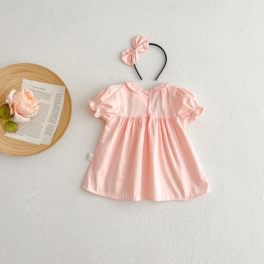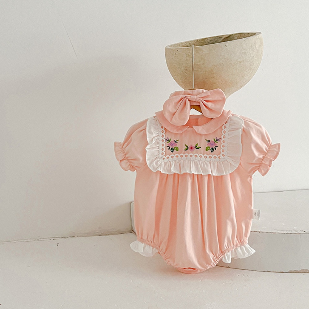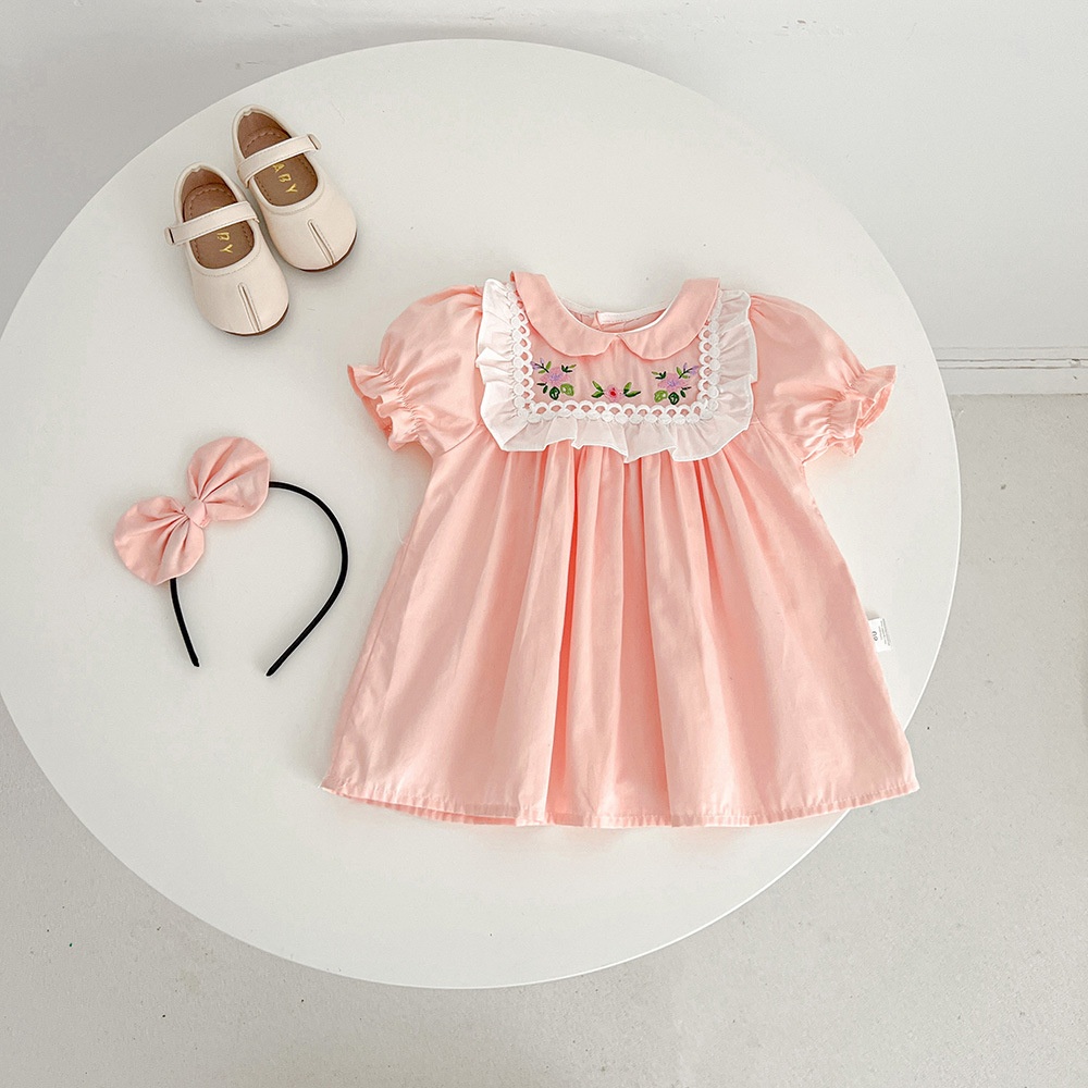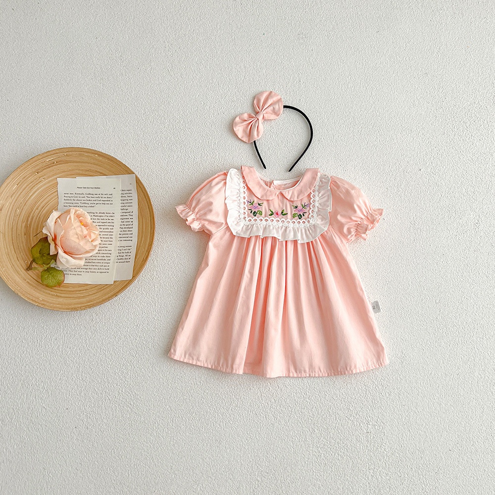 【BS061】韓版刺繡花蕾絲方領短袖包屁衣小洋裝(送髮箍)(1色)
