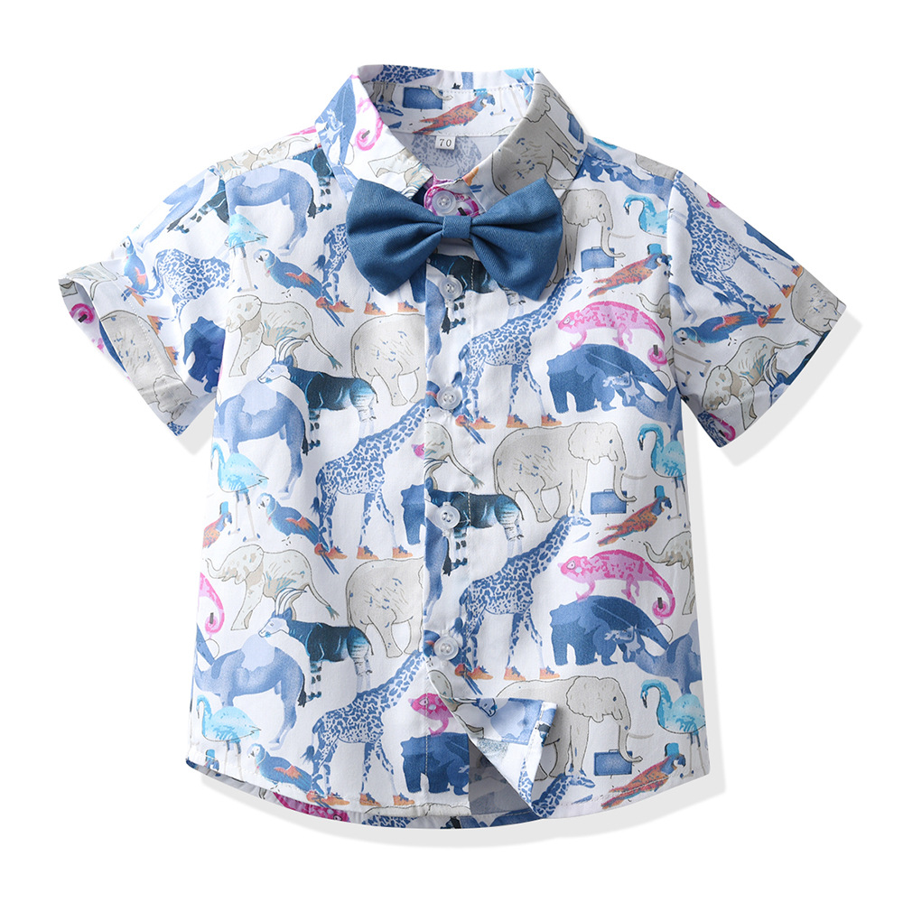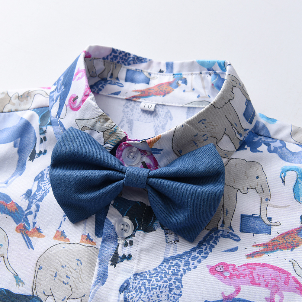 【BB088】韓版小領結繽紛動物園兩件式短袖短褲套裝(2色)