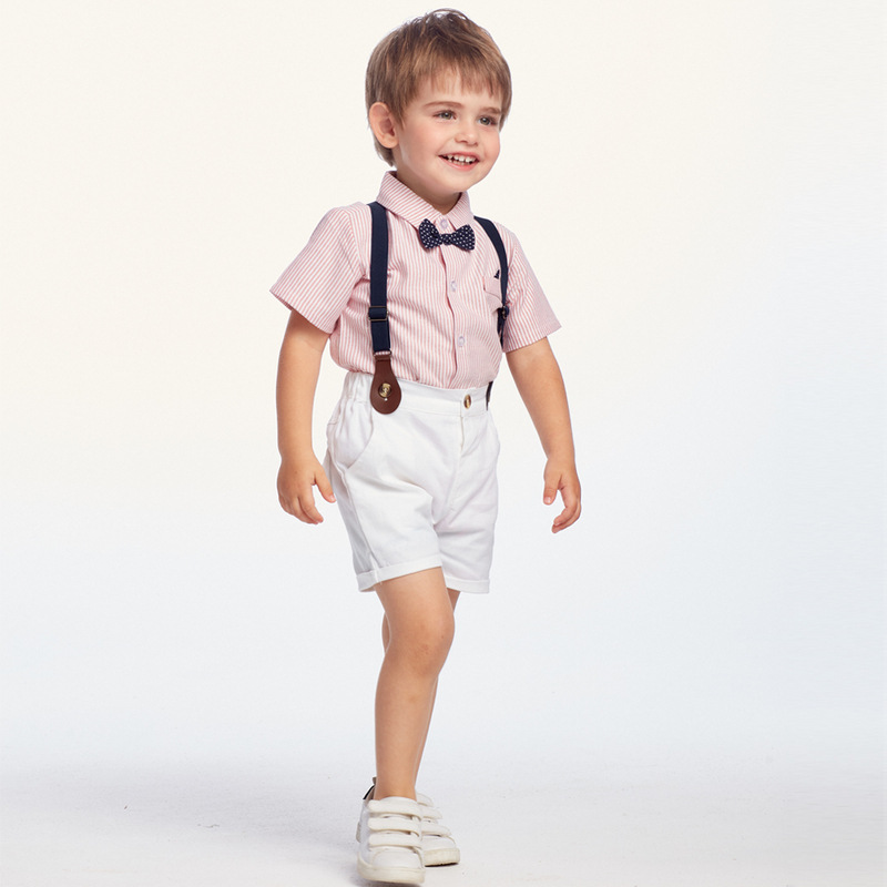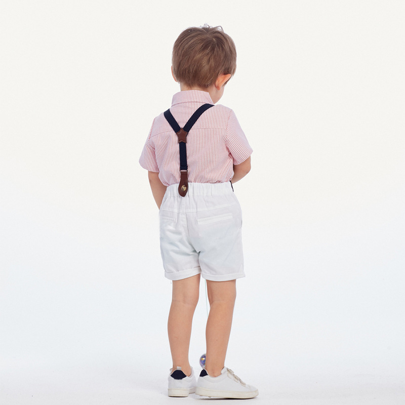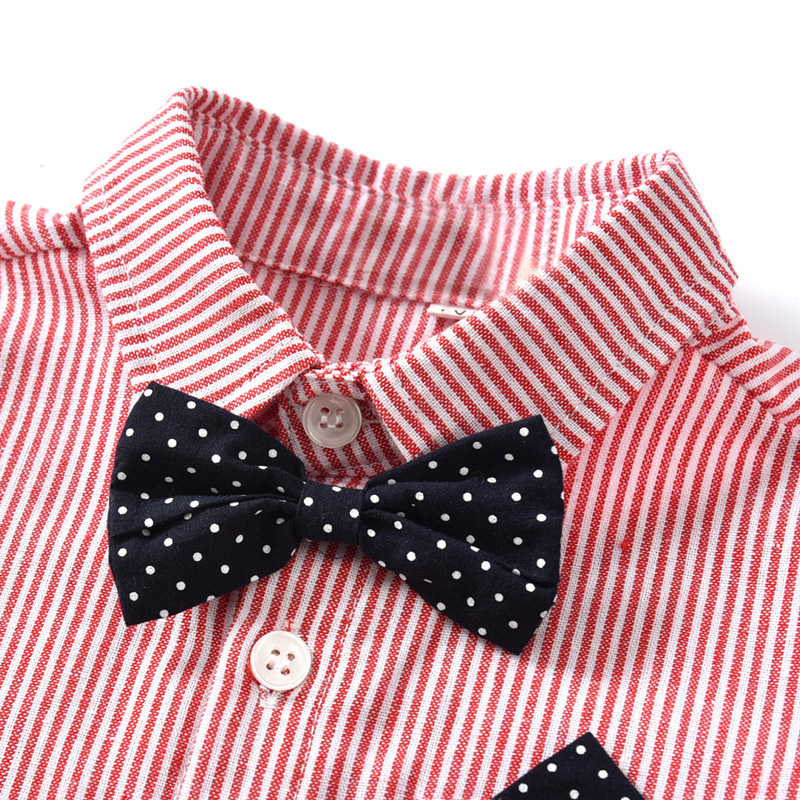 【BB091】韓版點點小領結條紋兩件式吊帶短袖短褲套裝(1色)