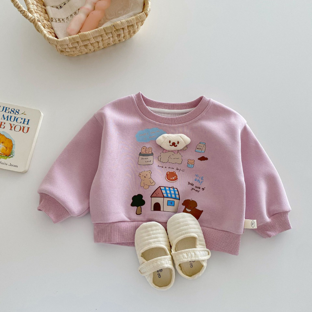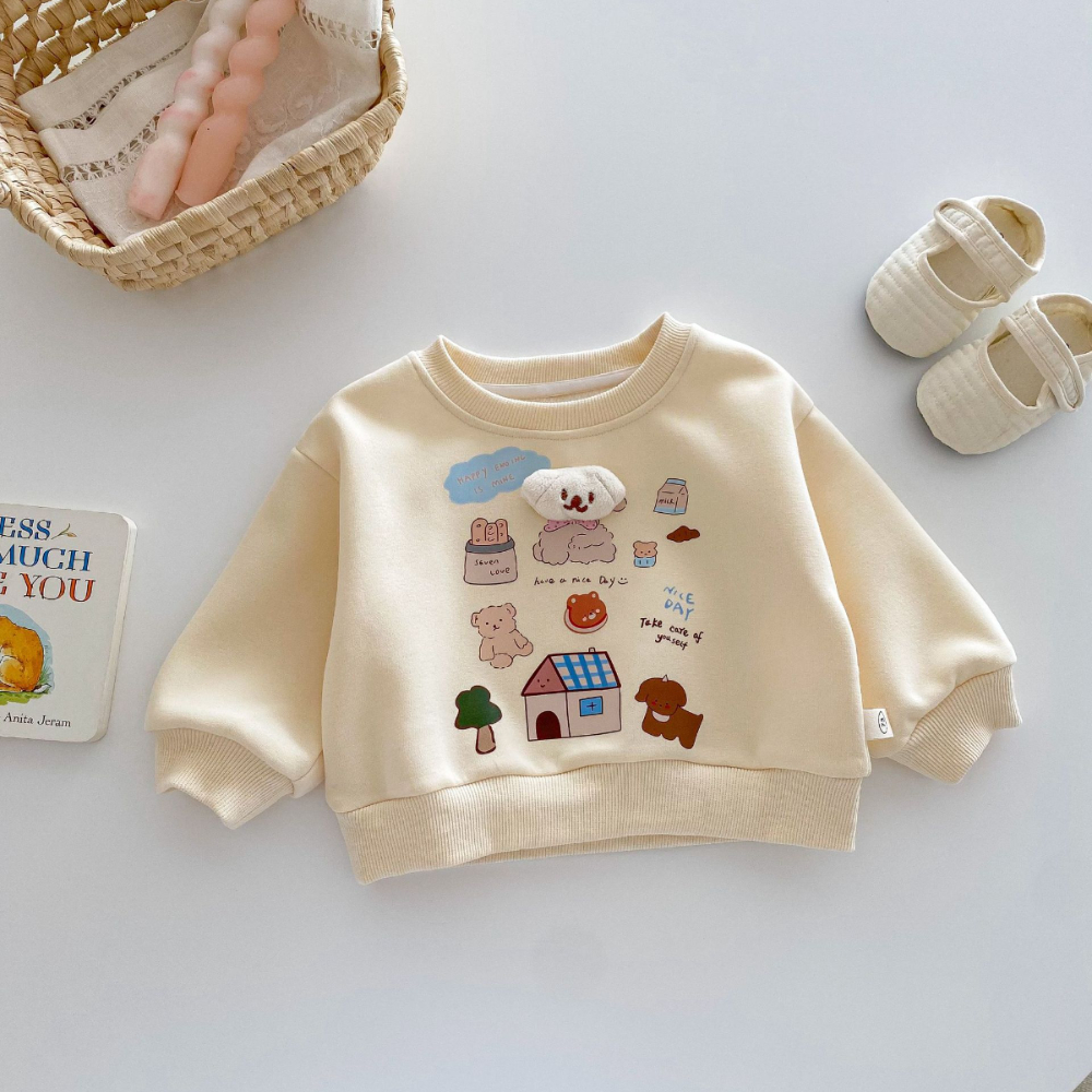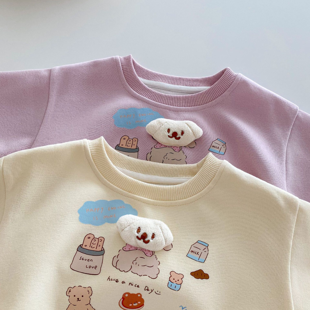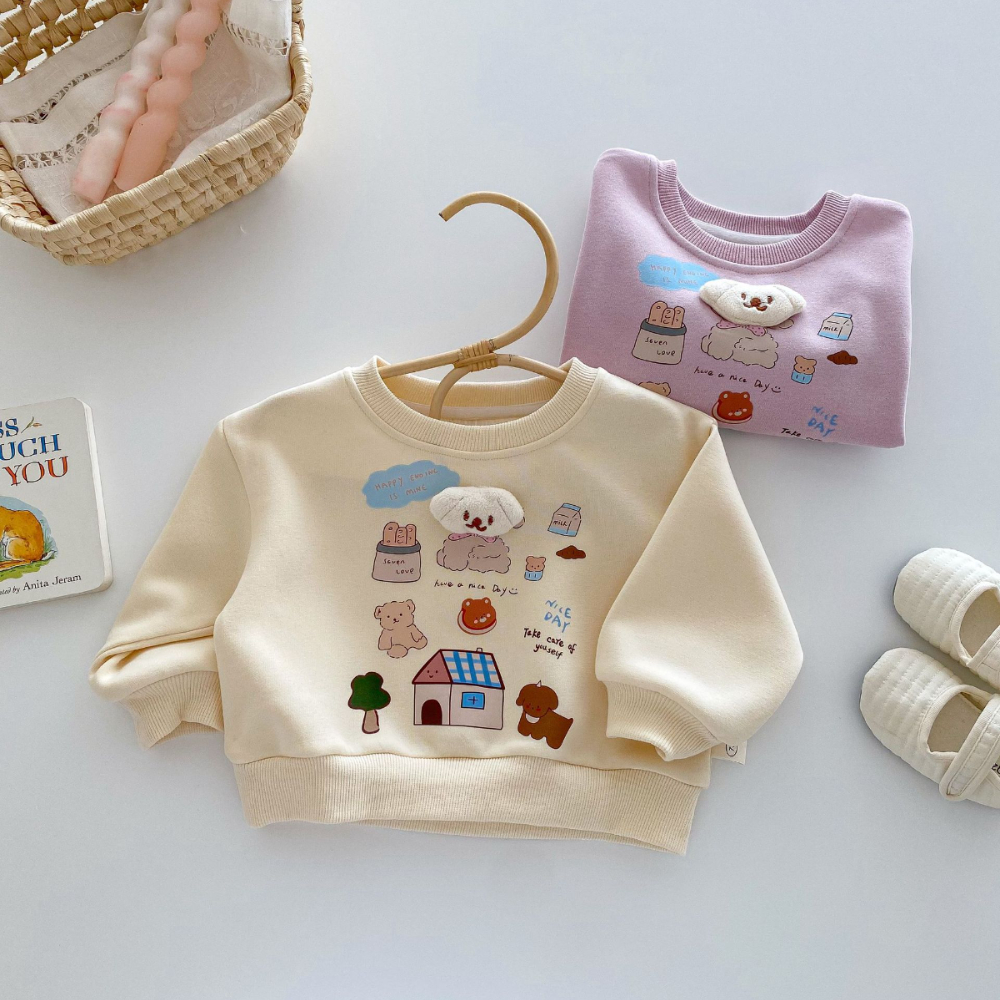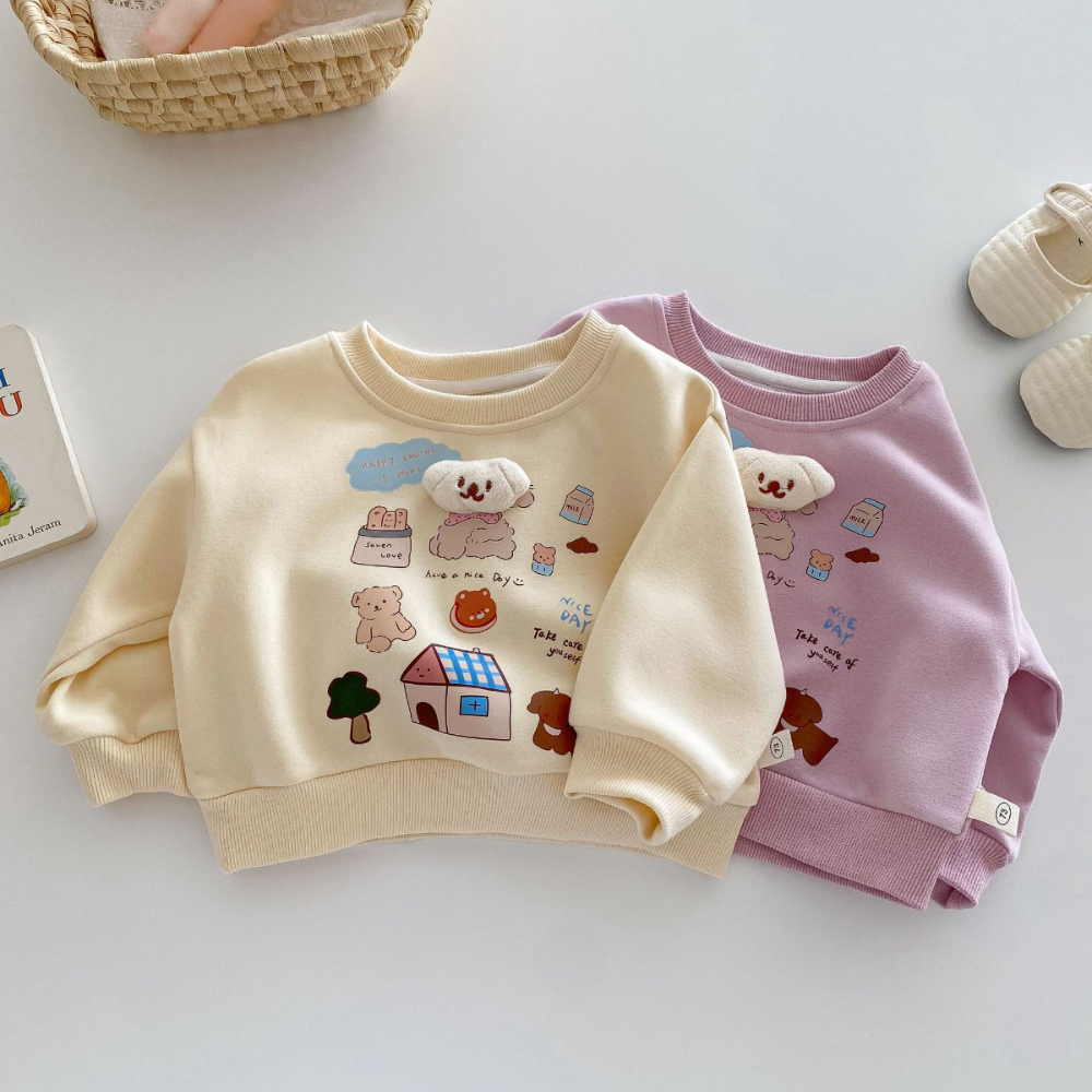 【BU162】韓版立體小狗可愛塗鴉長袖上衣(2色)