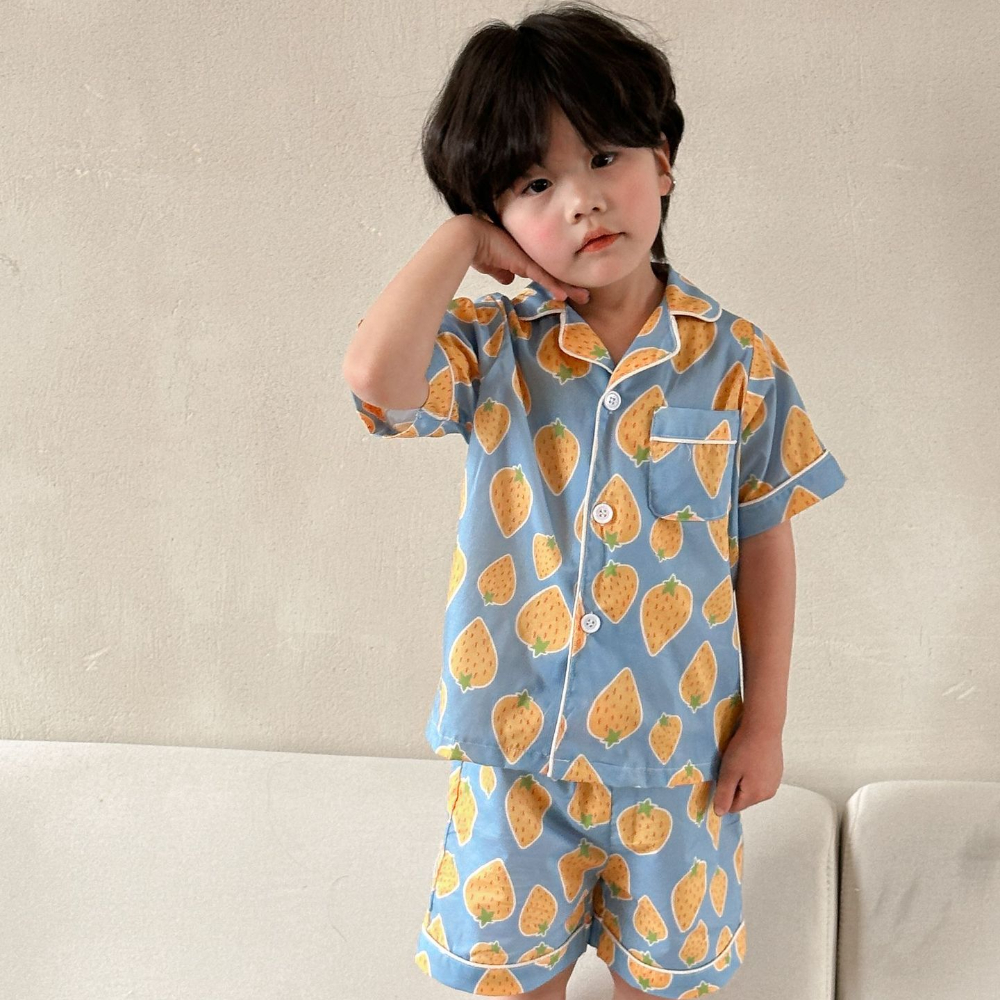 【BS195】韓版繽紛草莓家居兄妹短袖套裝(1色)