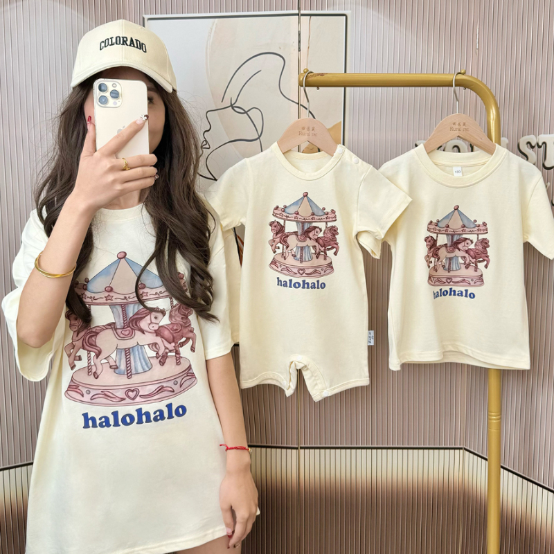【F068】日系旋轉木馬全家福親子短袖上衣(1色)