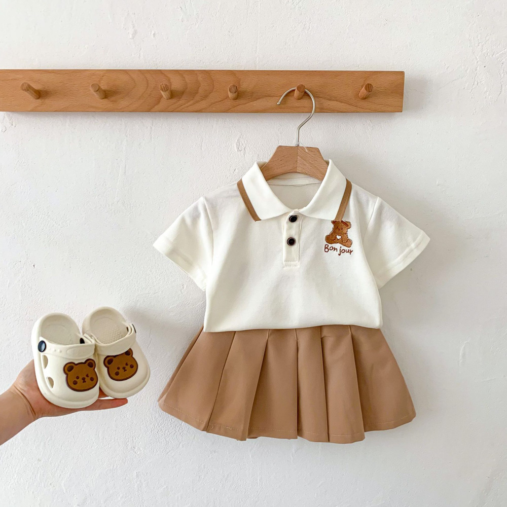【BS174】韓版學院風POLO熊兄妹短袖套裝(1色)