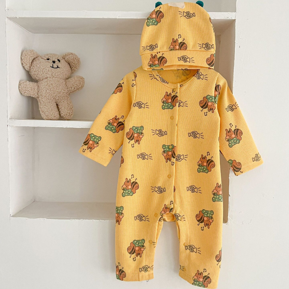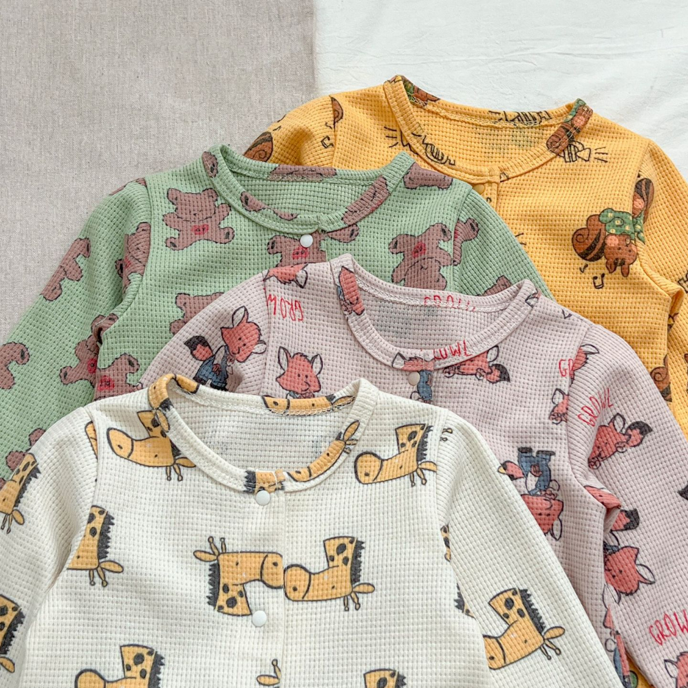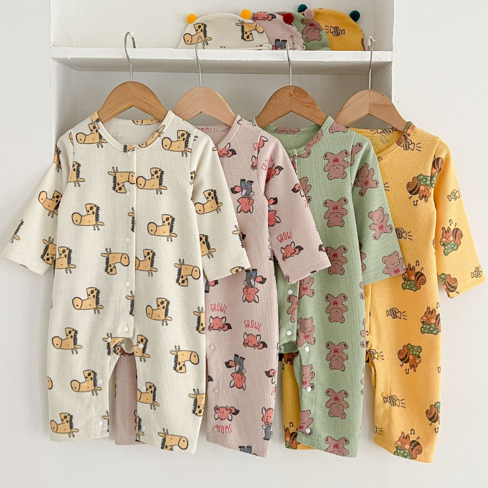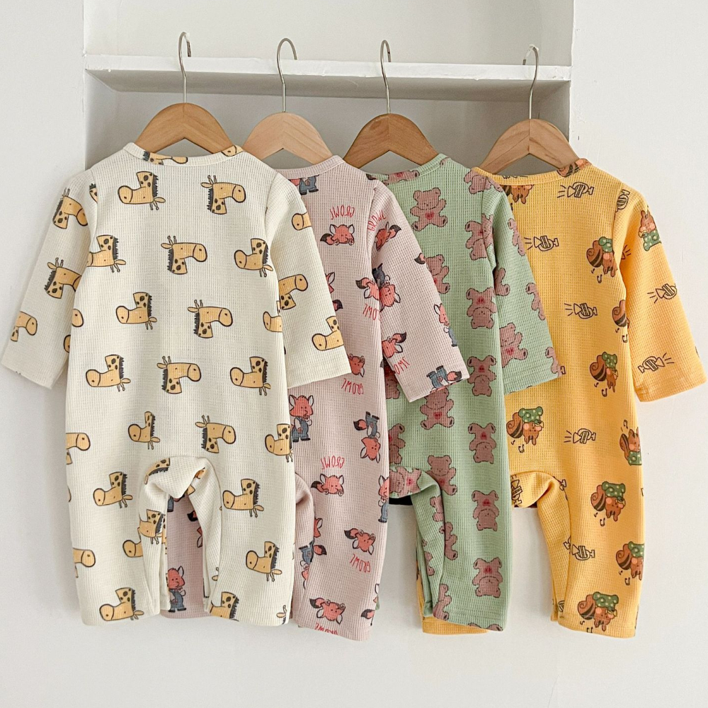 【BA770】韓版華夫格紋可愛動物長袖連身衣(4色)