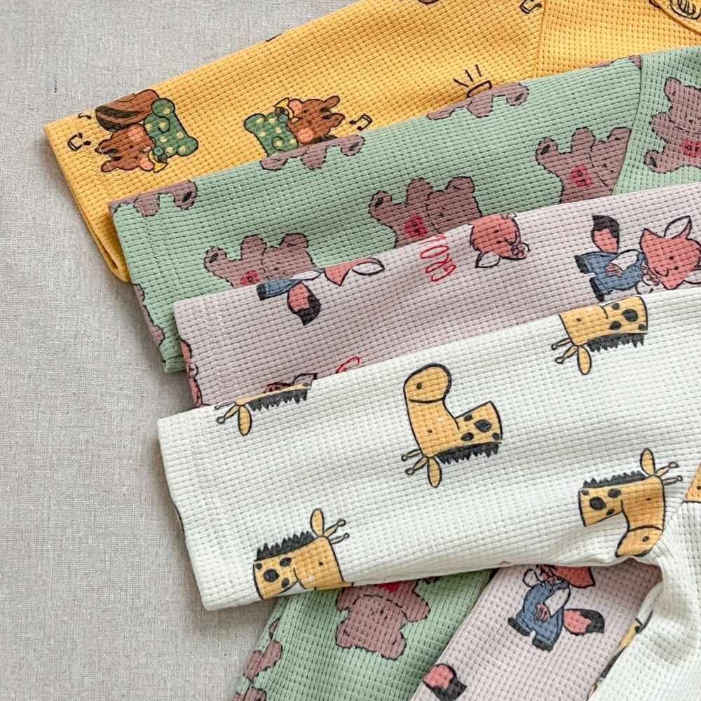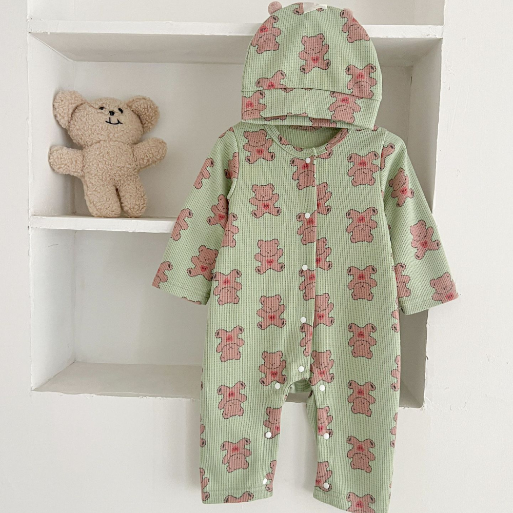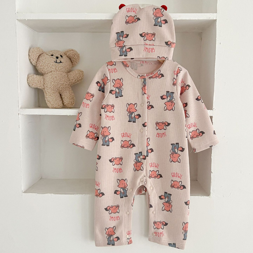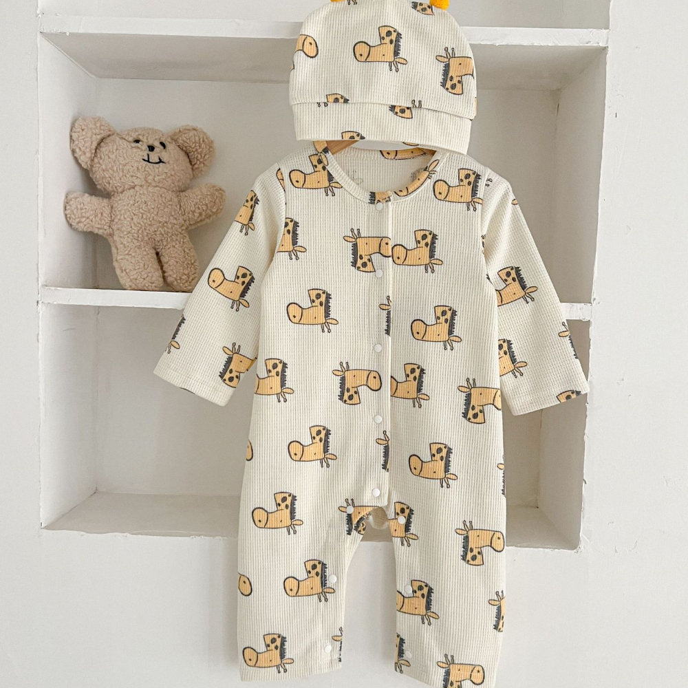 【BA770】韓版華夫格紋可愛動物長袖連身衣(4色)