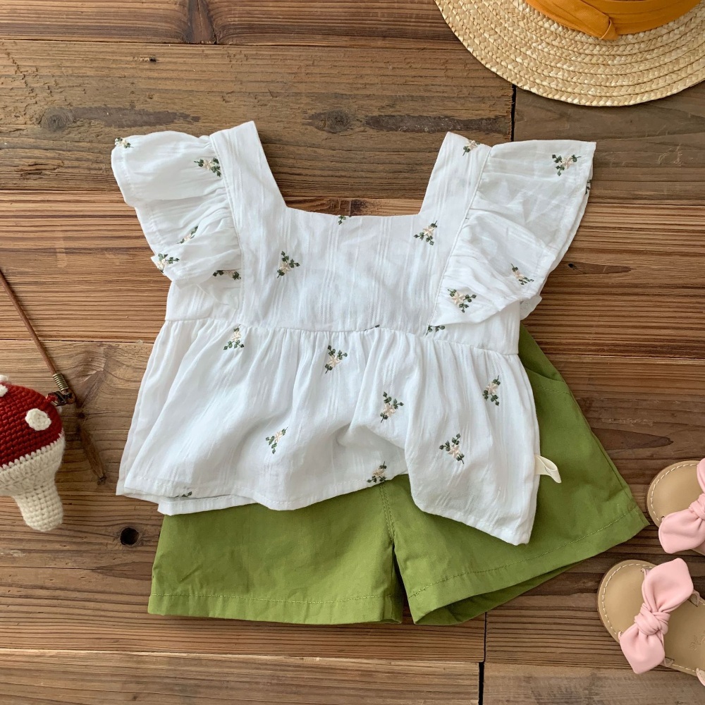 【BA323】韓版刺繡小碎花兩件式無袖短褲套裝(1色)