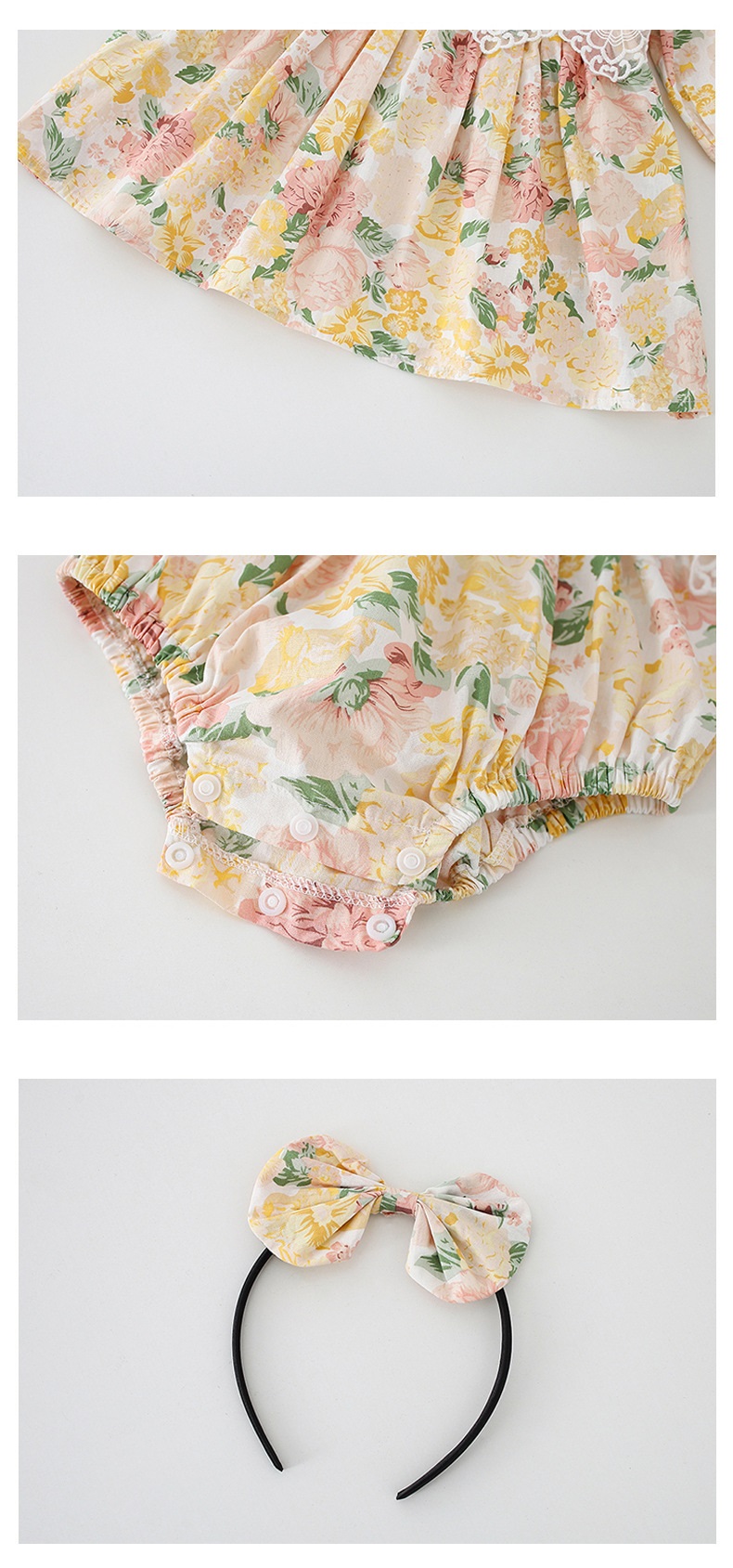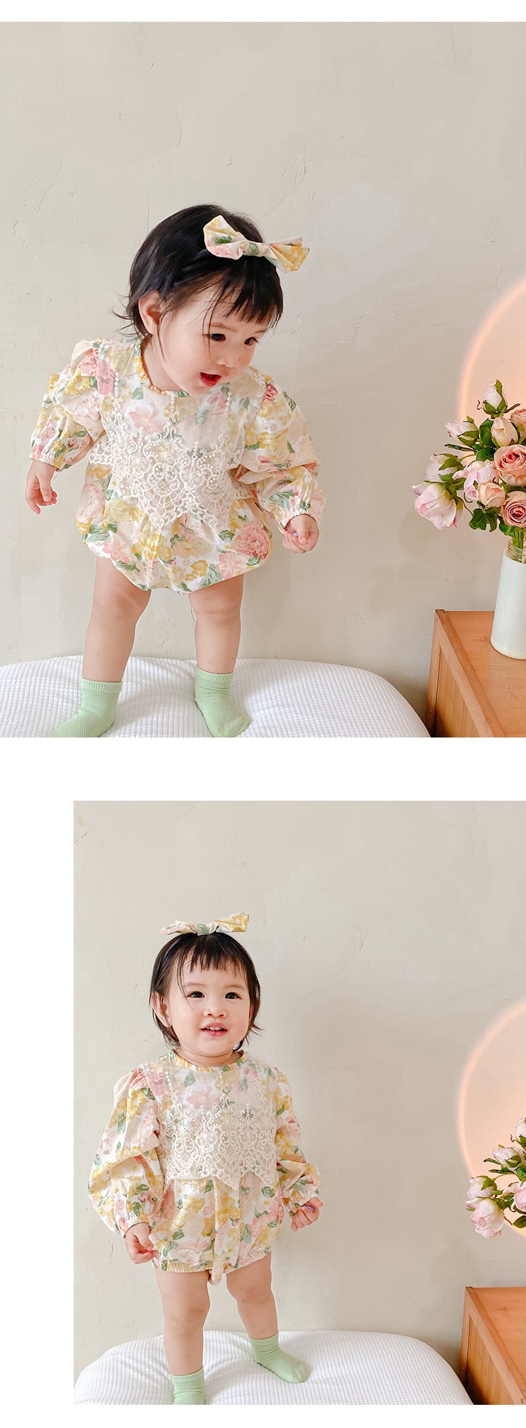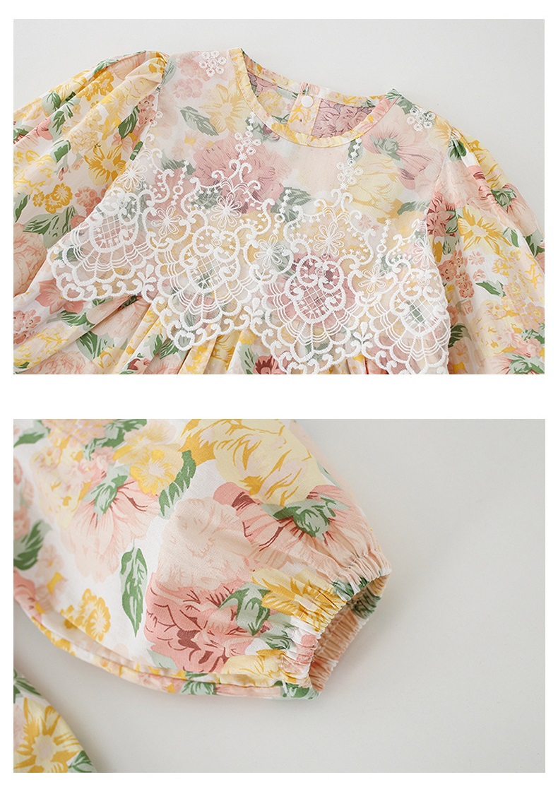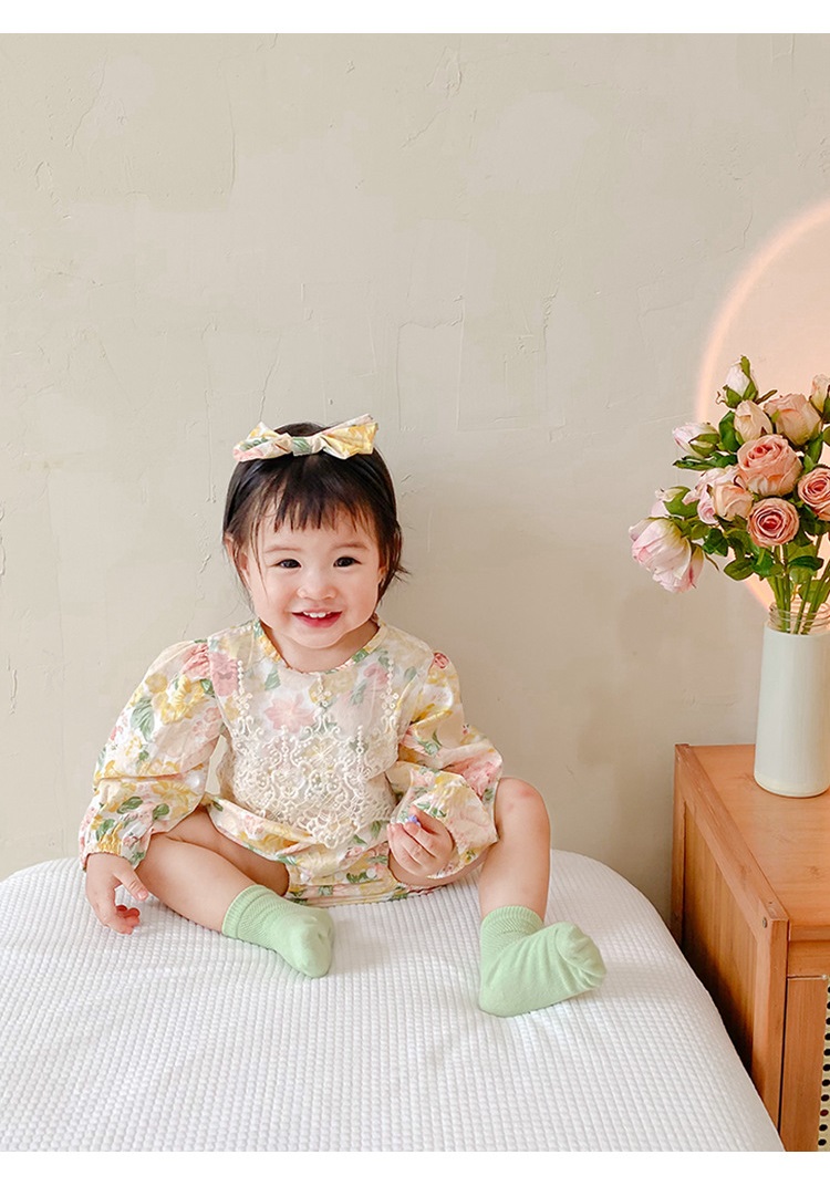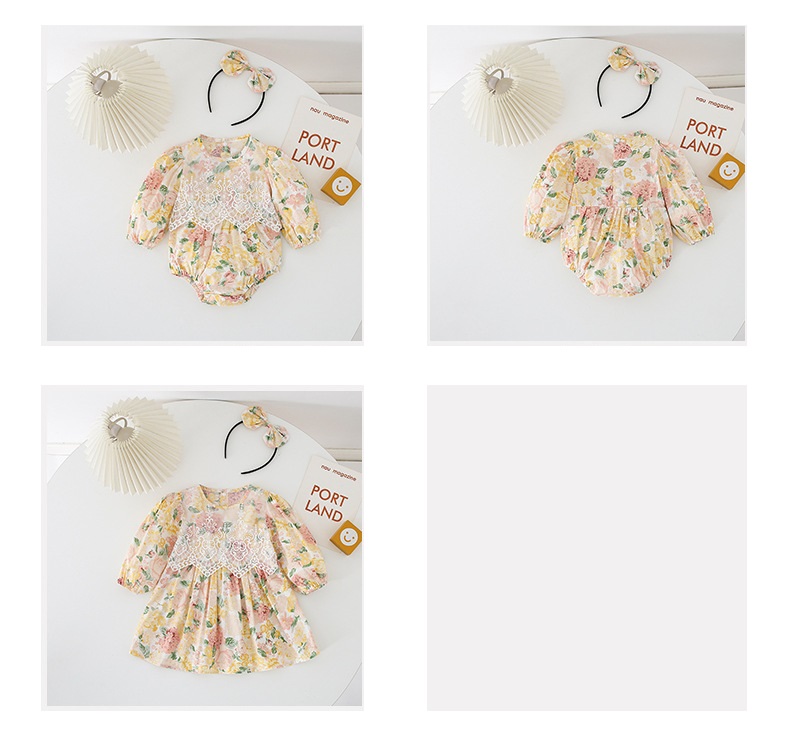 【BS018】韓版蕾絲花長袖包屁衣小洋裝(送髮箍)(1色)