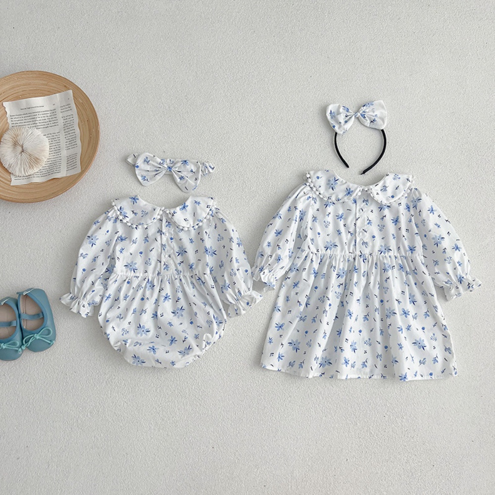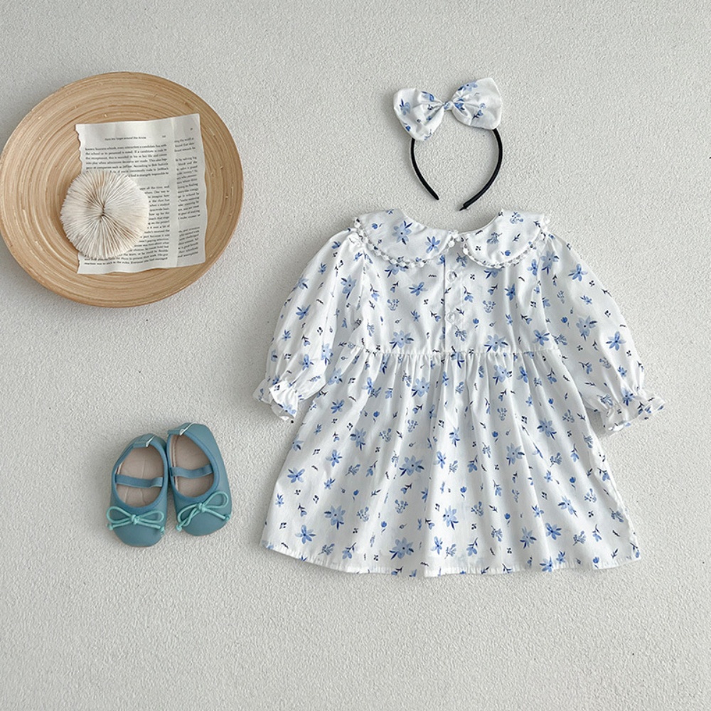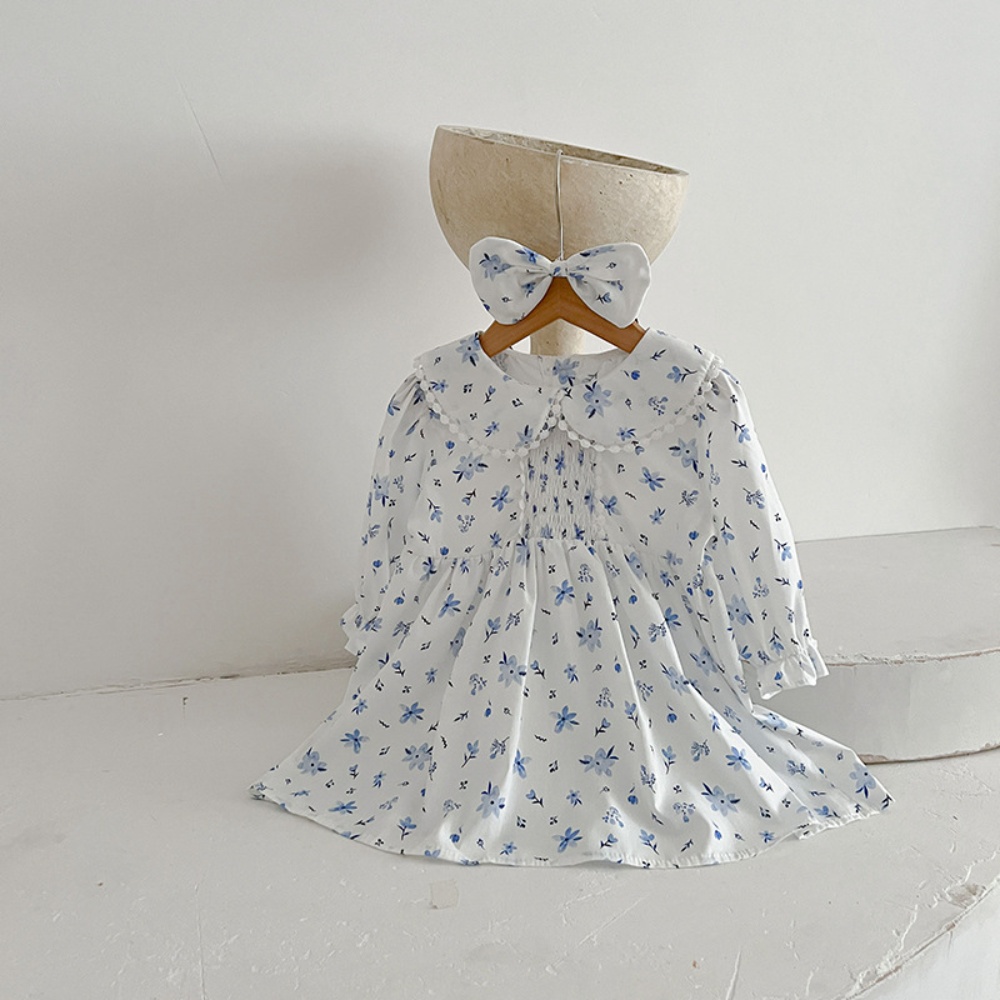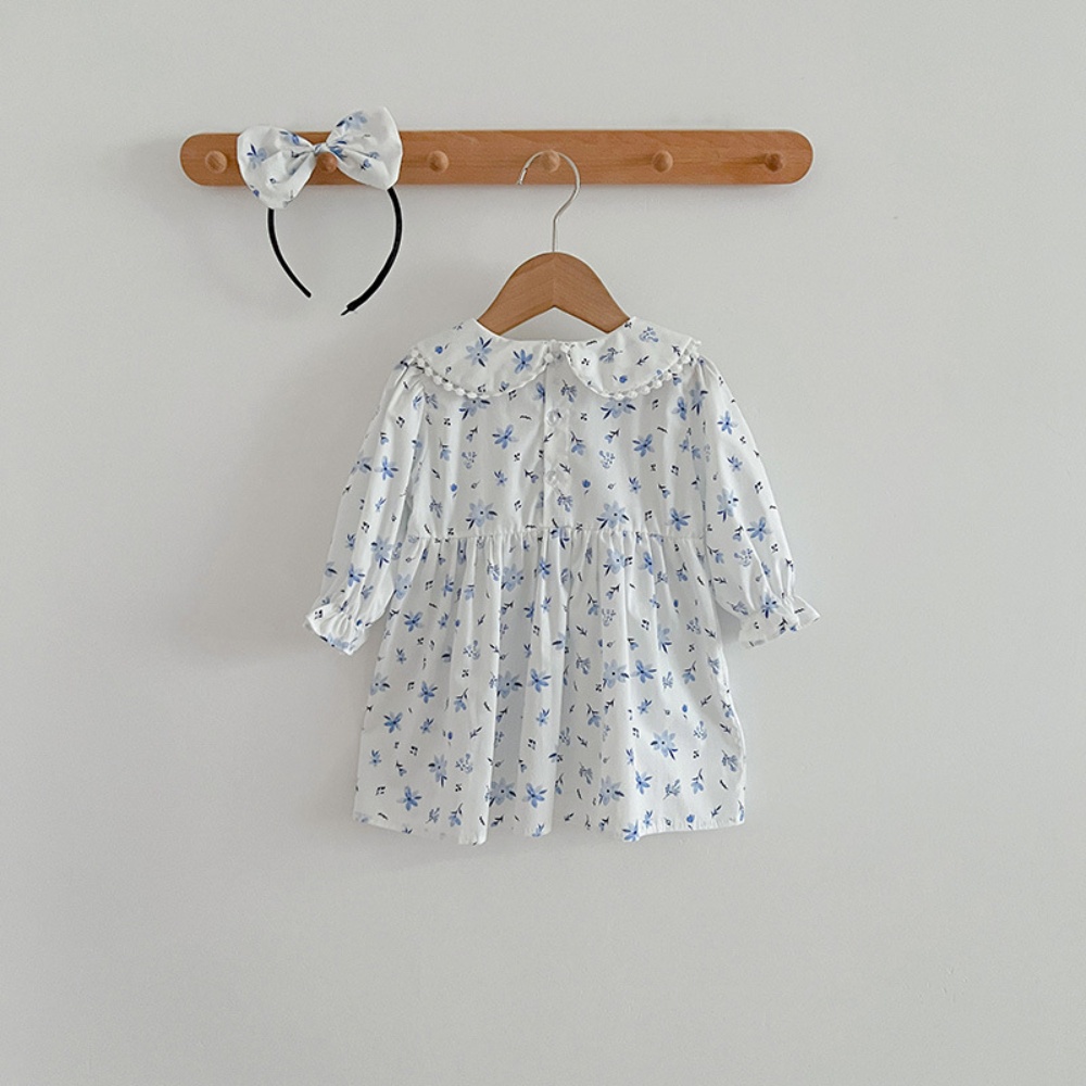 【BS086】韓版圓領小碎花長袖包屁衣小洋裝(送髮箍)(1色)