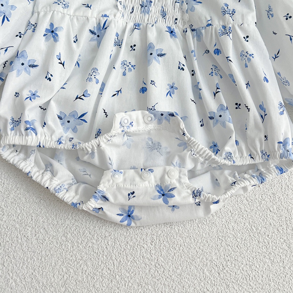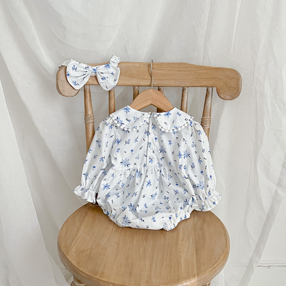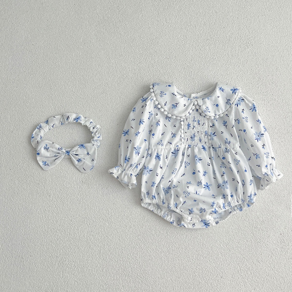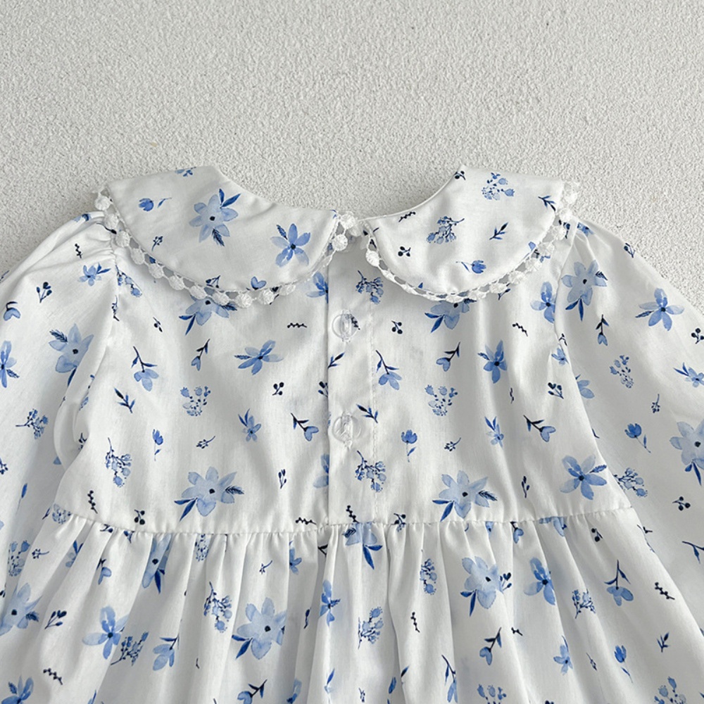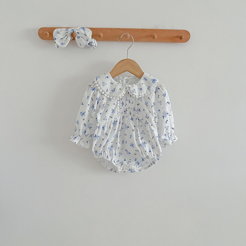 【BS086】韓版圓領小碎花長袖包屁衣小洋裝(送髮箍)(1色)
