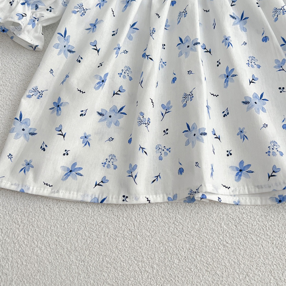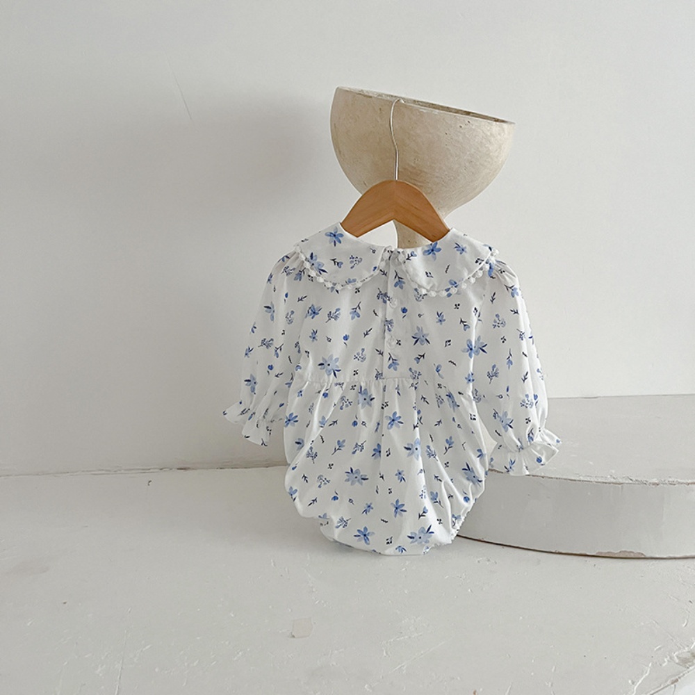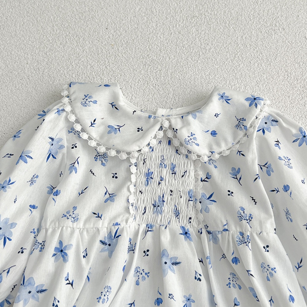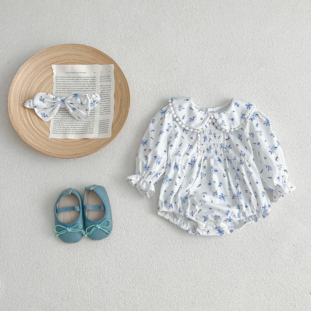 【BS086】韓版圓領小碎花長袖包屁衣小洋裝(送髮箍)(1色)