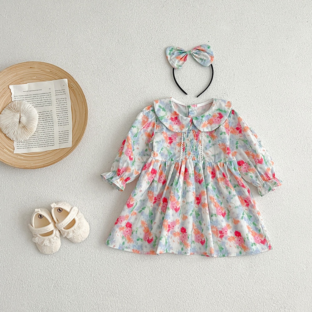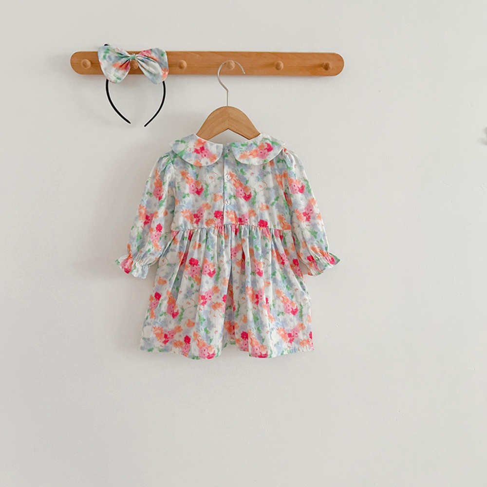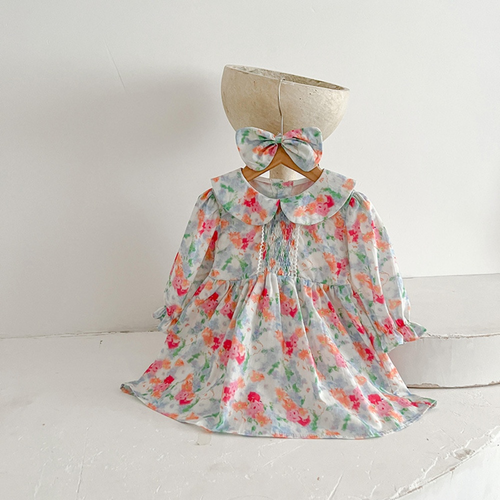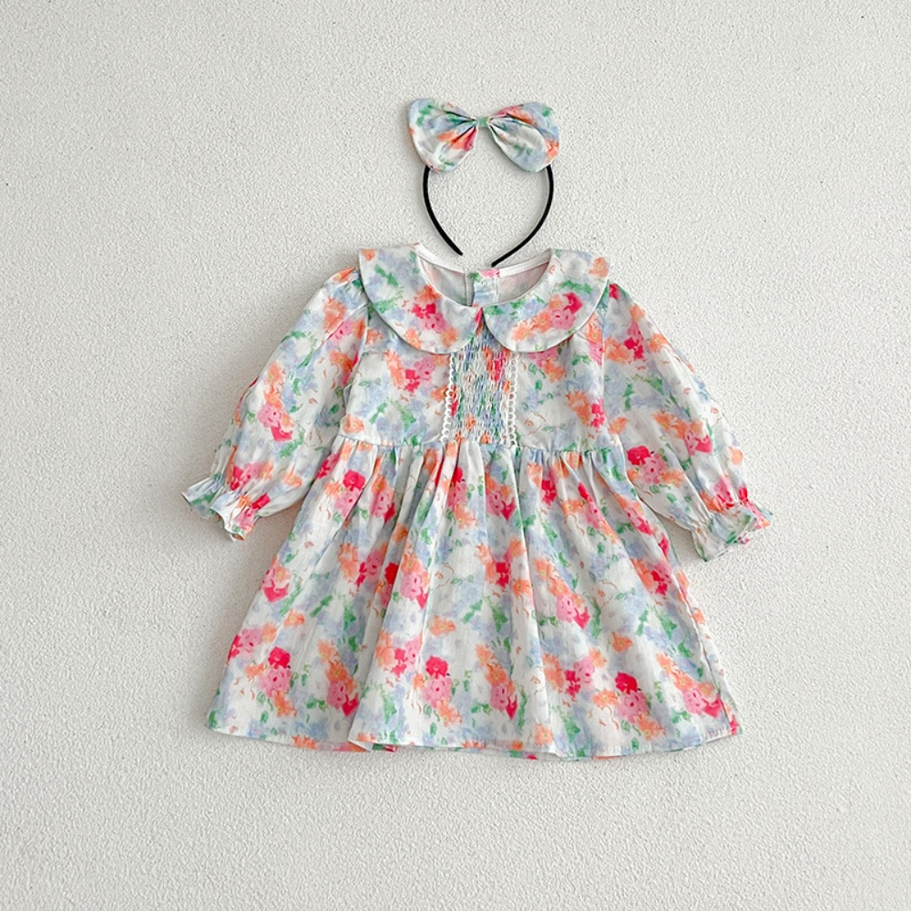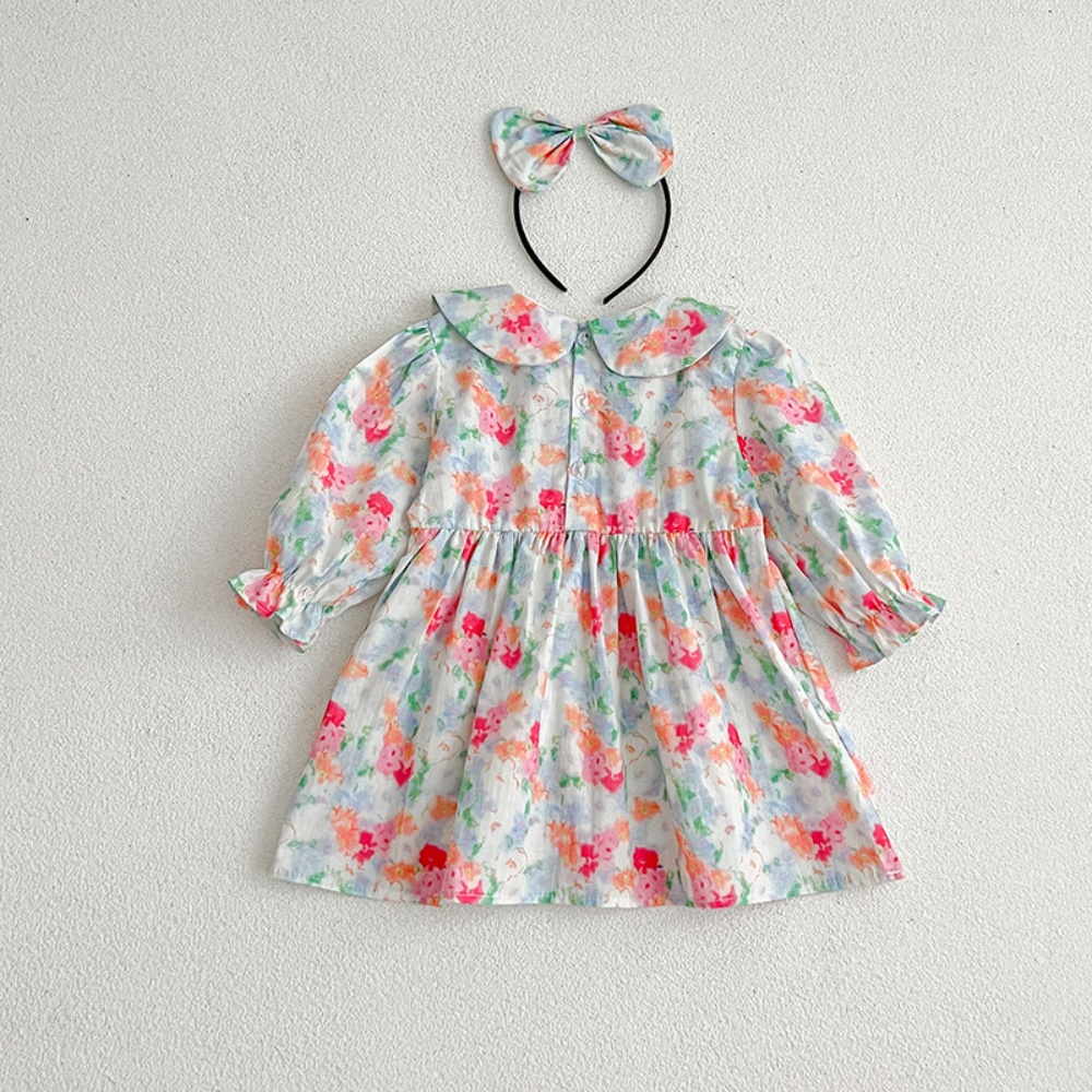 【BS087】韓版浪漫水彩花長袖包屁衣小洋裝(送髮箍)(1色)