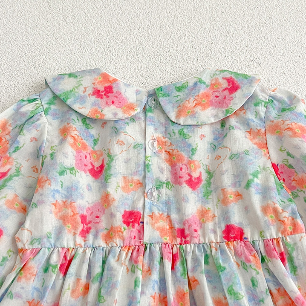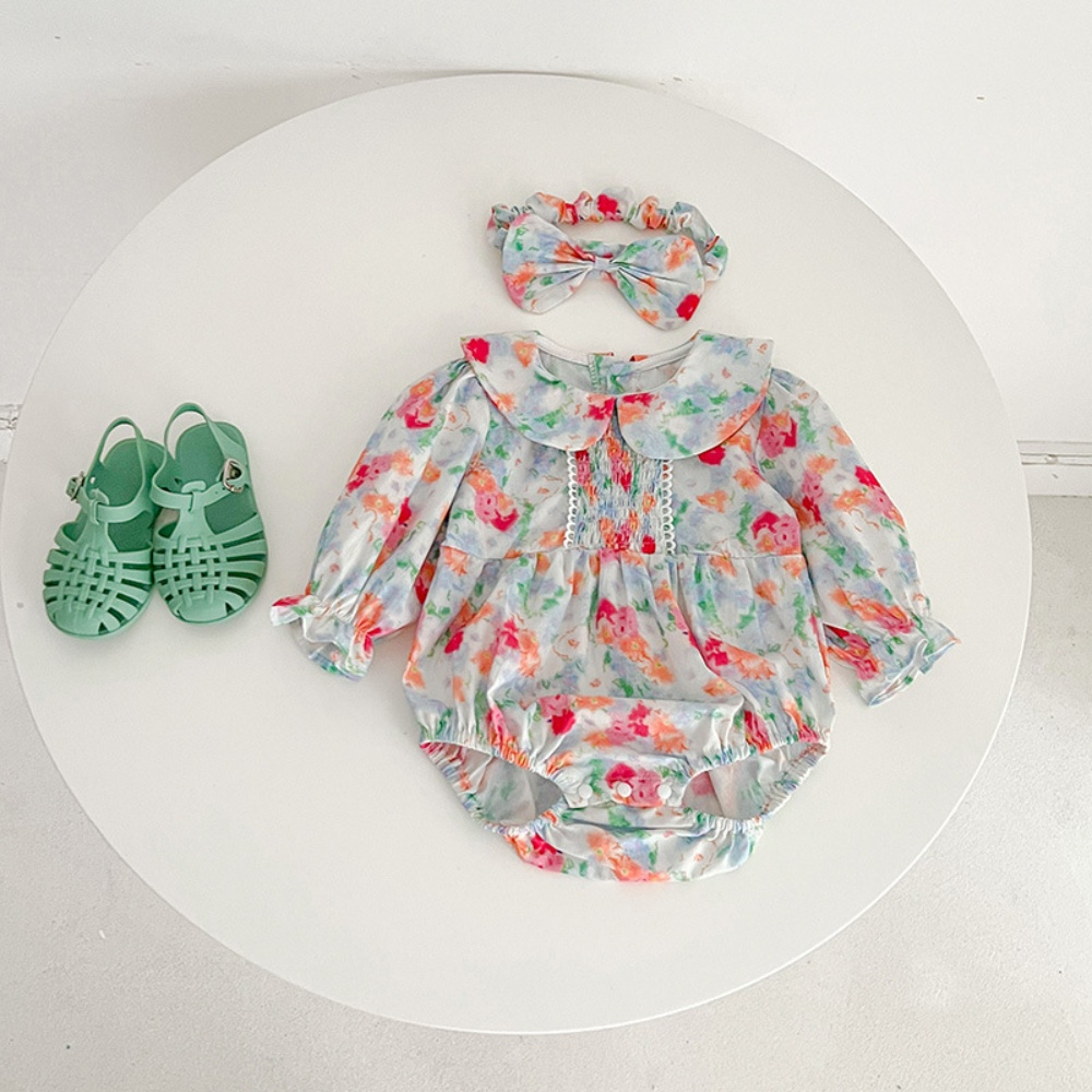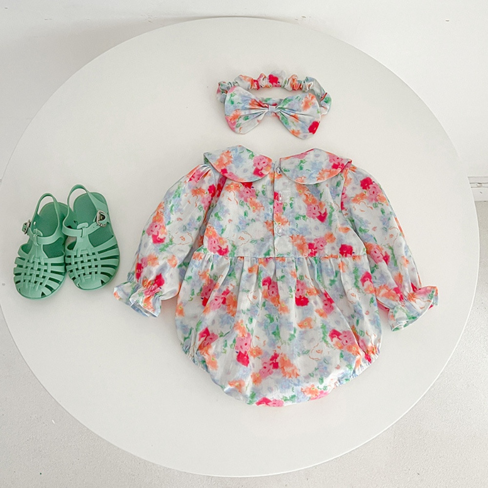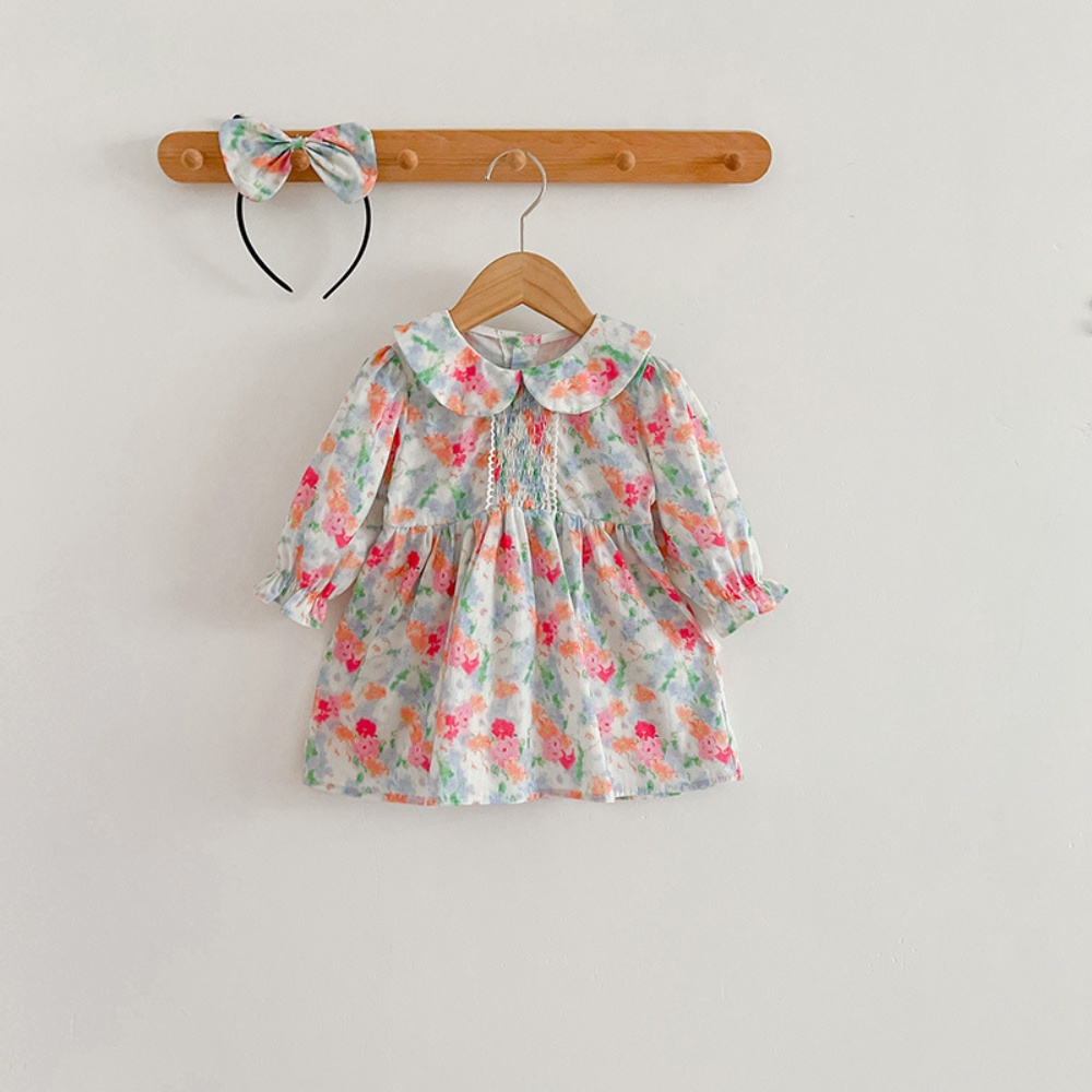 【BS087】韓版浪漫水彩花長袖包屁衣小洋裝(送髮箍)(1色)