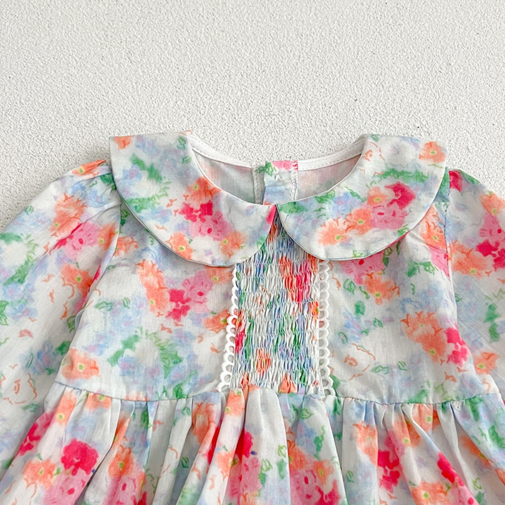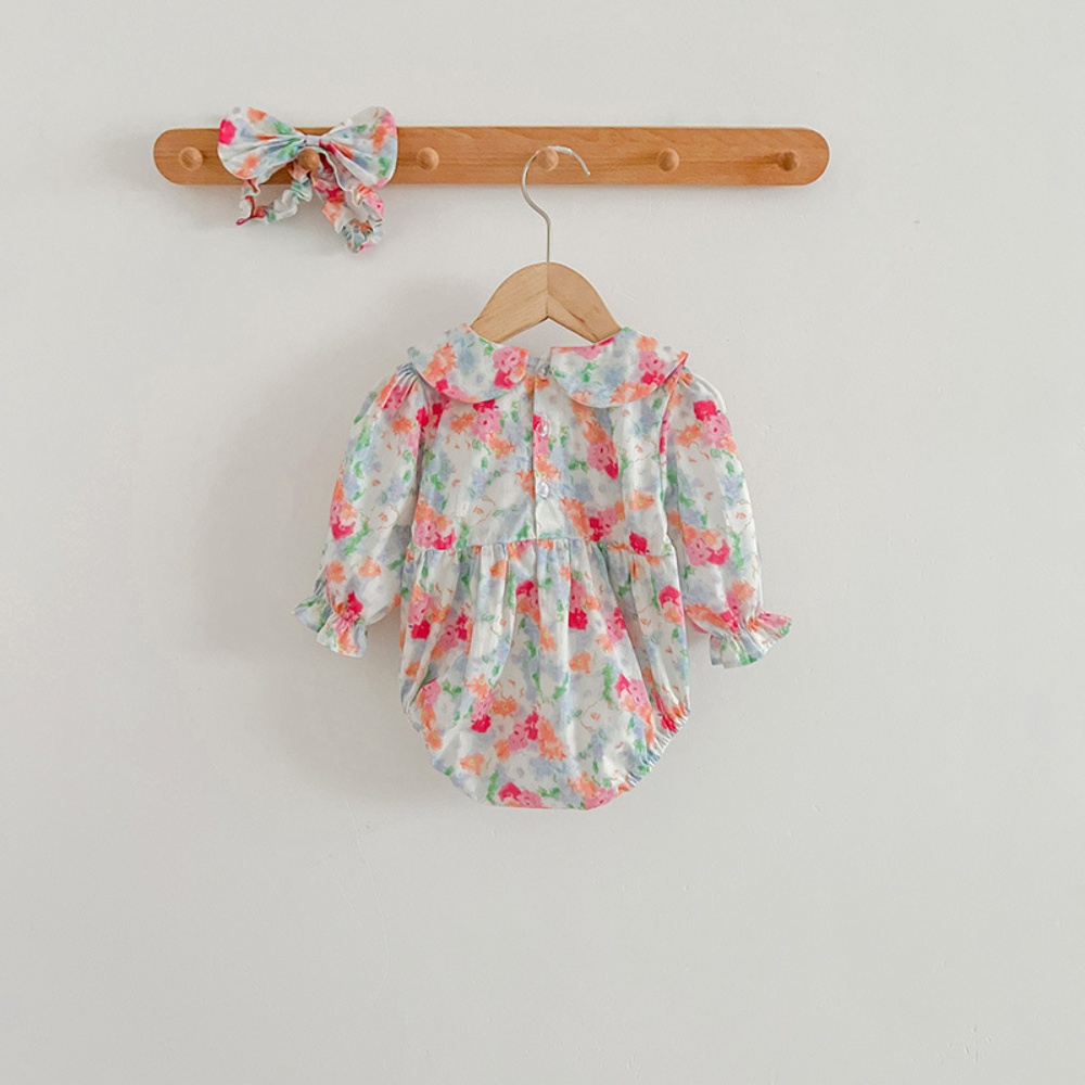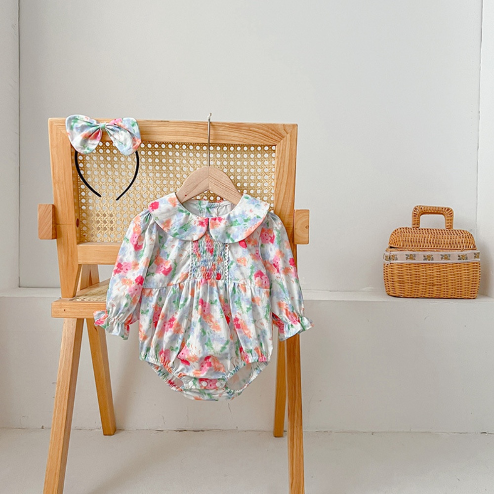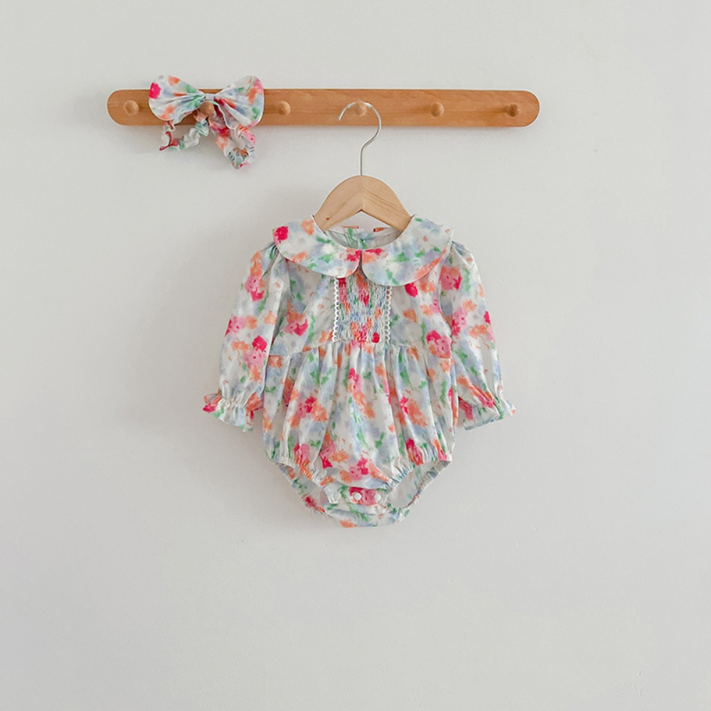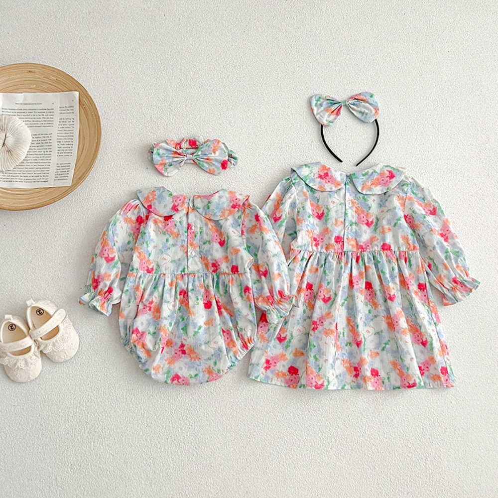 【BS087】韓版浪漫水彩花長袖包屁衣小洋裝(送髮箍)(1色)
