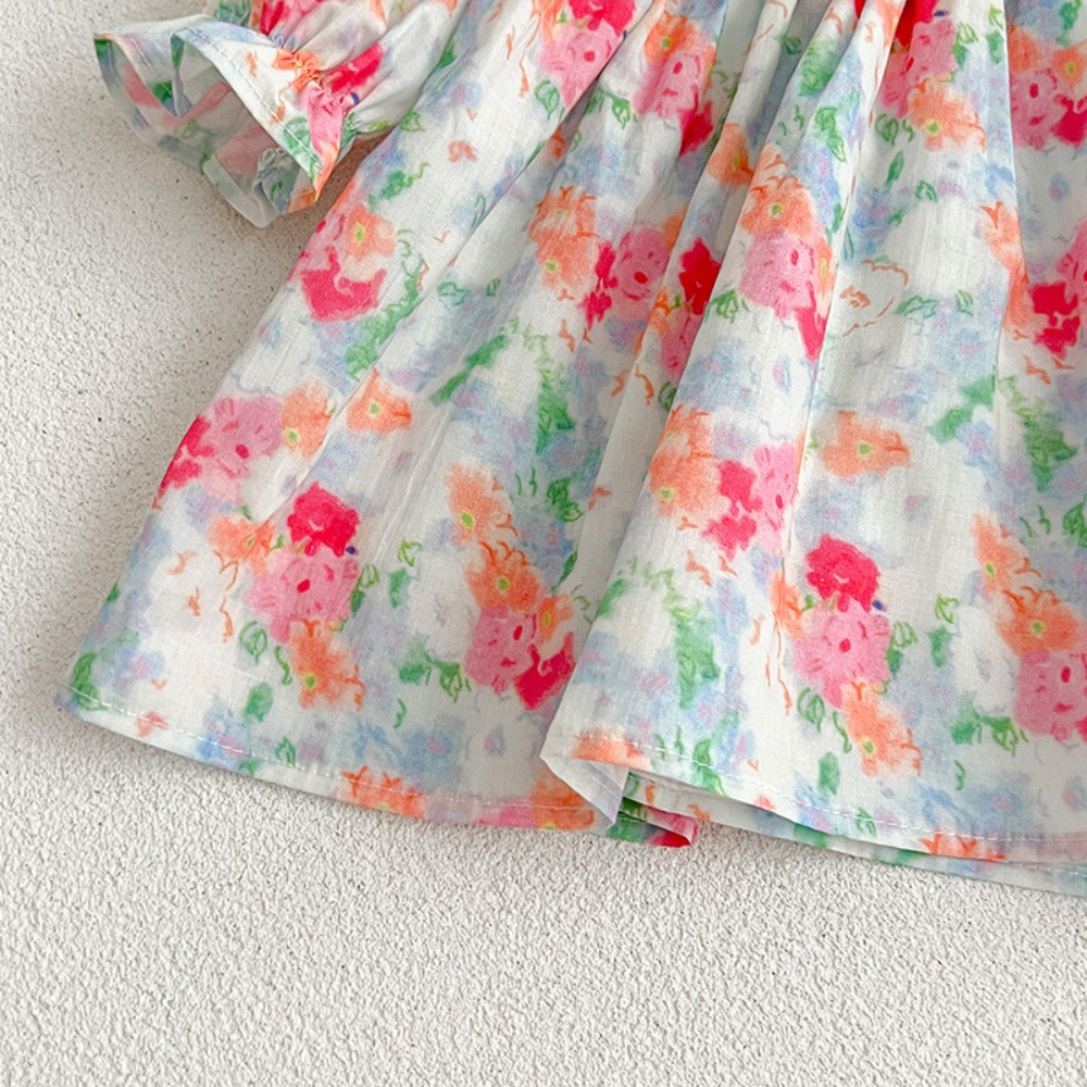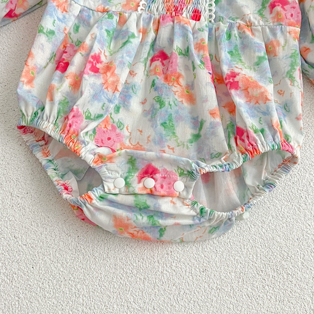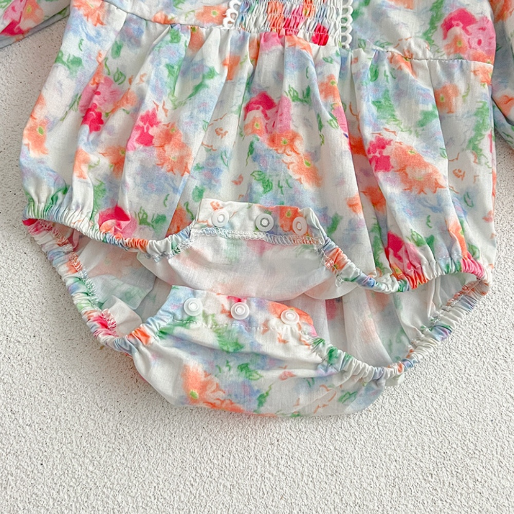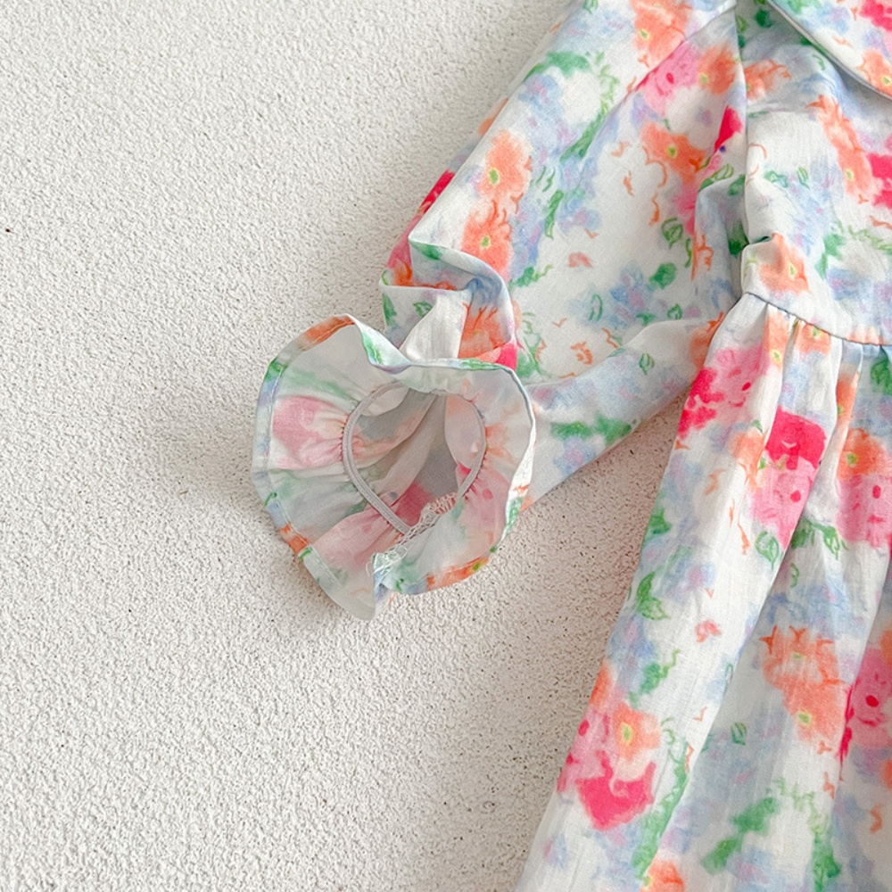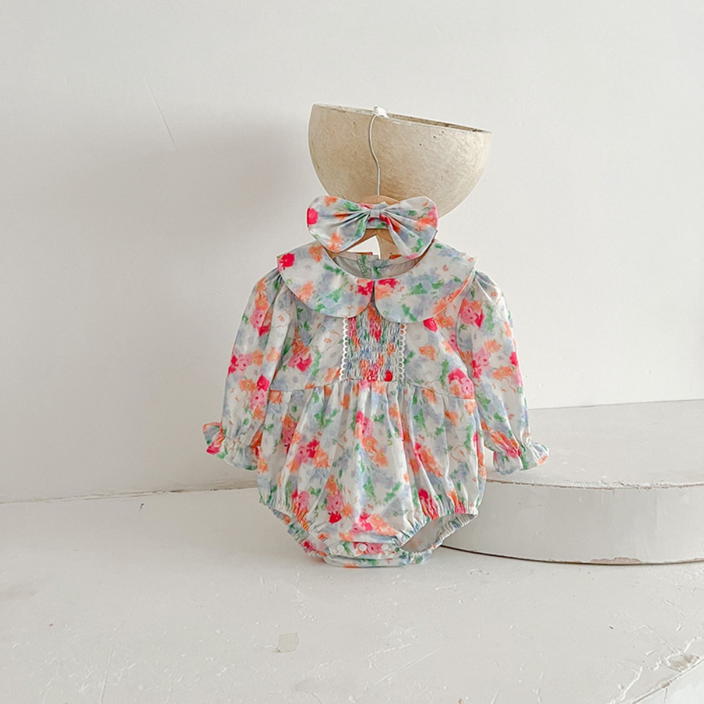 【BS087】韓版浪漫水彩花長袖包屁衣小洋裝(送髮箍)(1色)