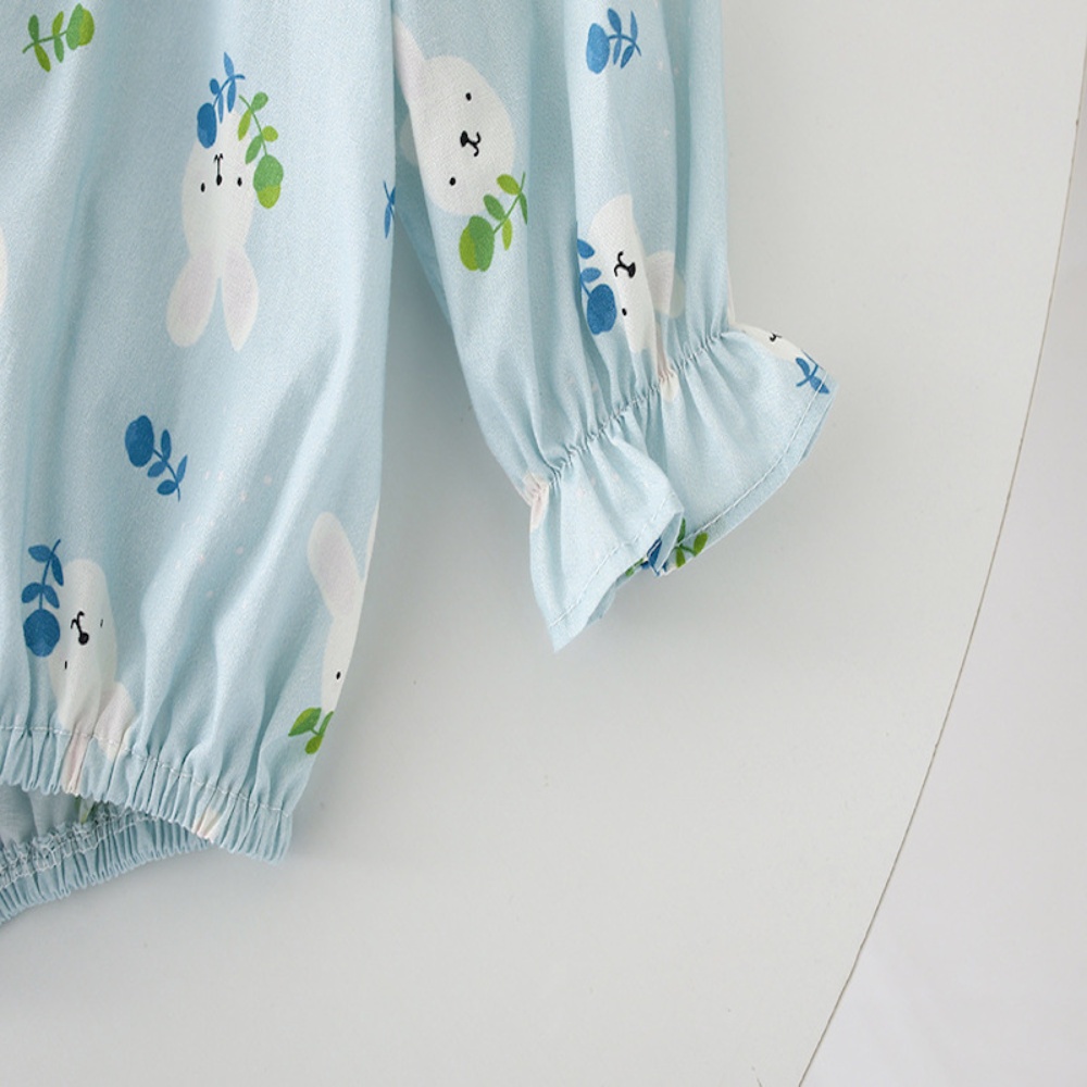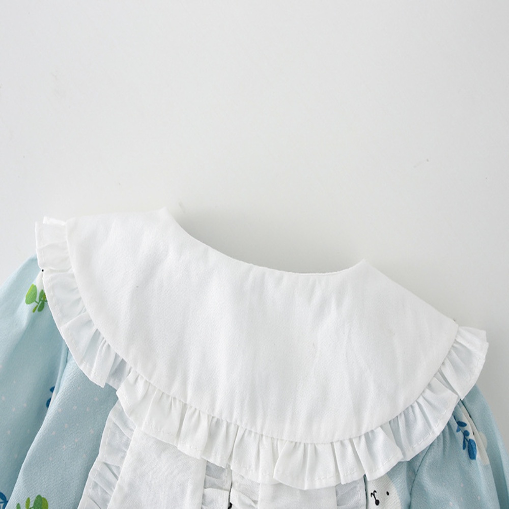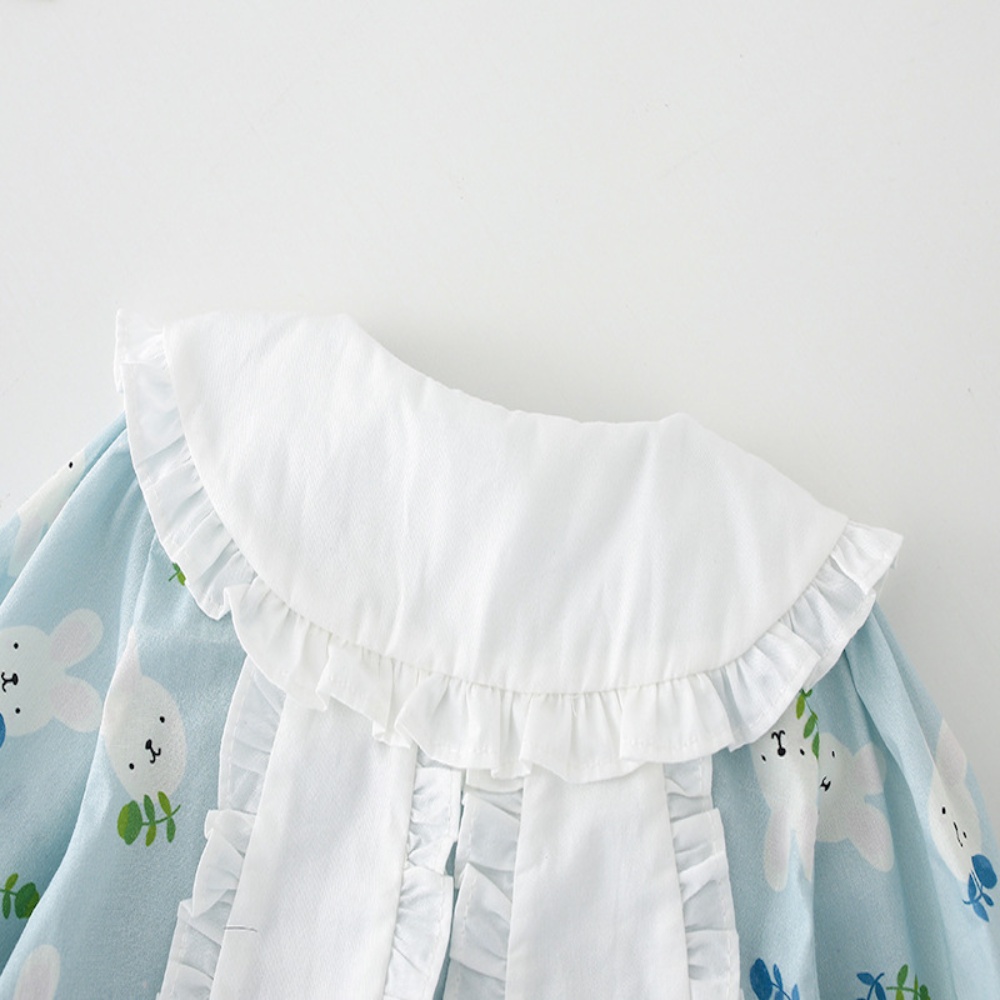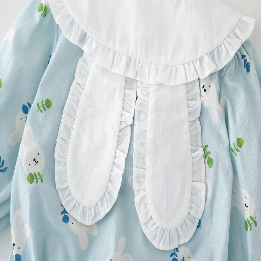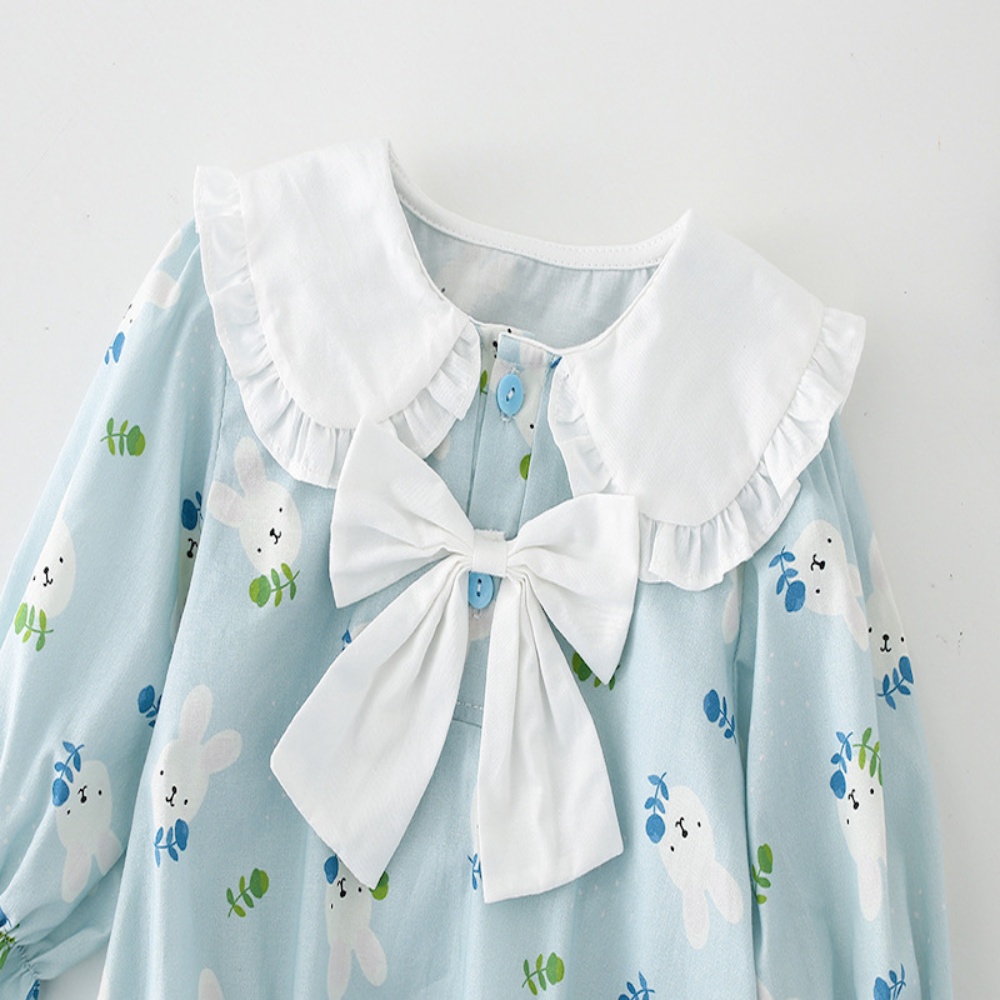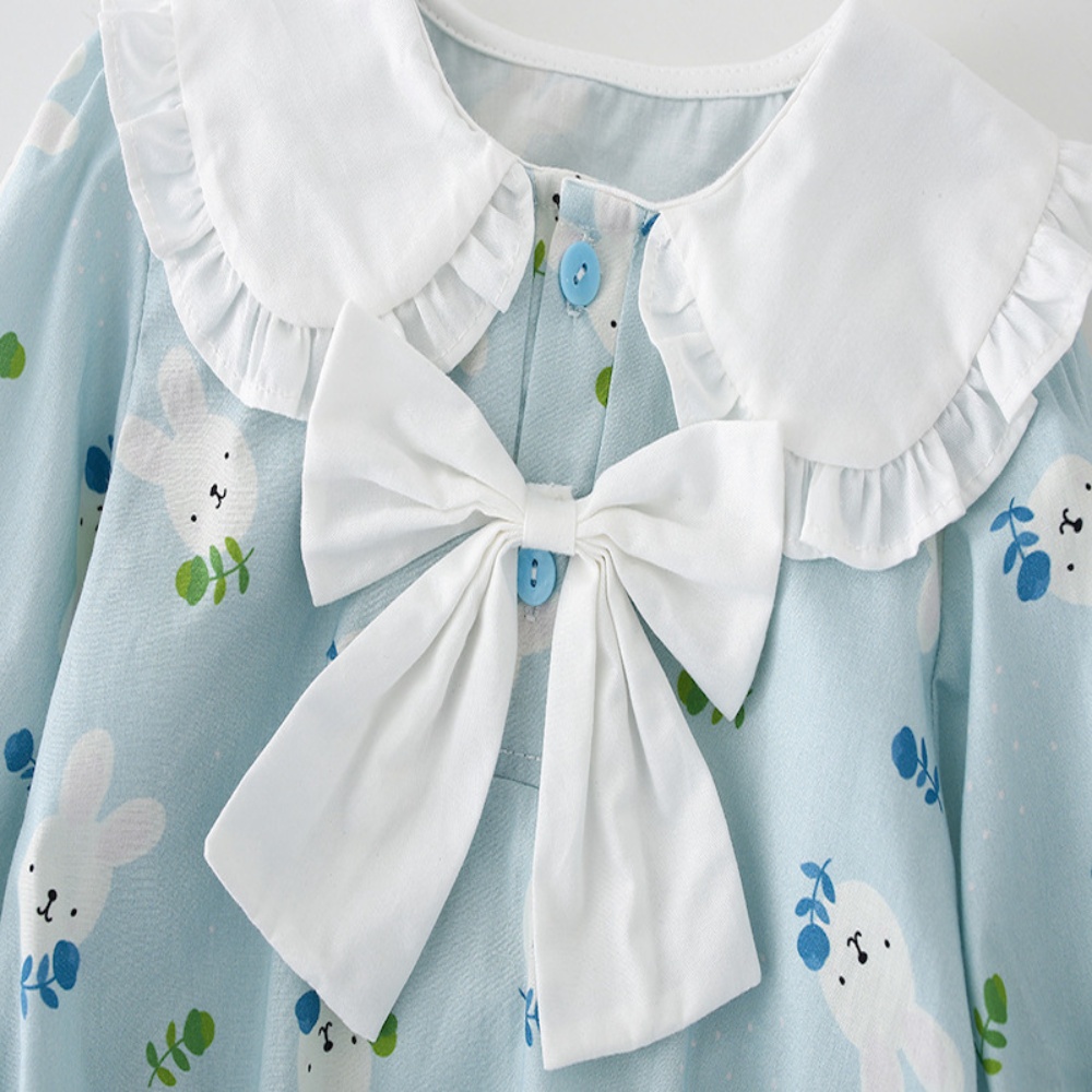 【BS088】韓版蝴蝶結小花兔長袖包屁衣小洋裝(送髮箍)(1色)