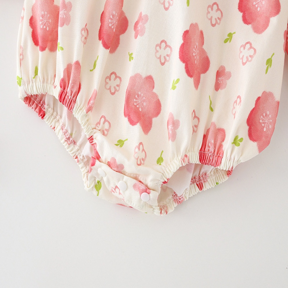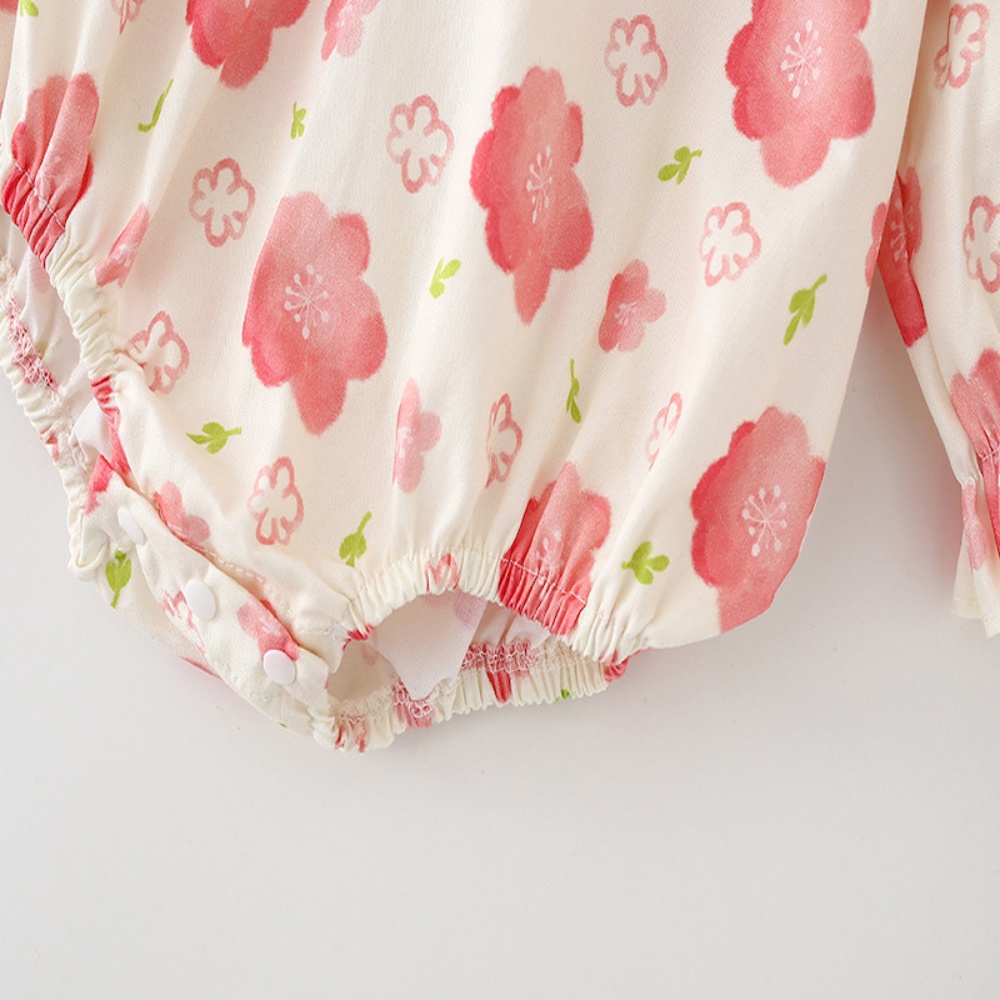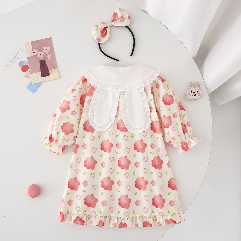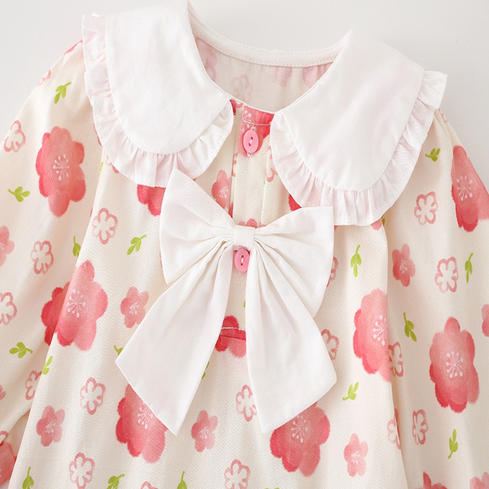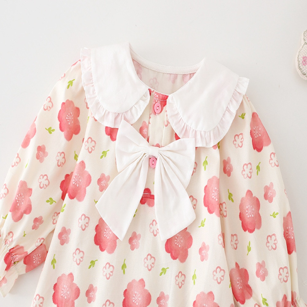 【BS091】韓版蝴蝶結浪漫花長袖包屁衣小洋裝(送髮箍)(1色)