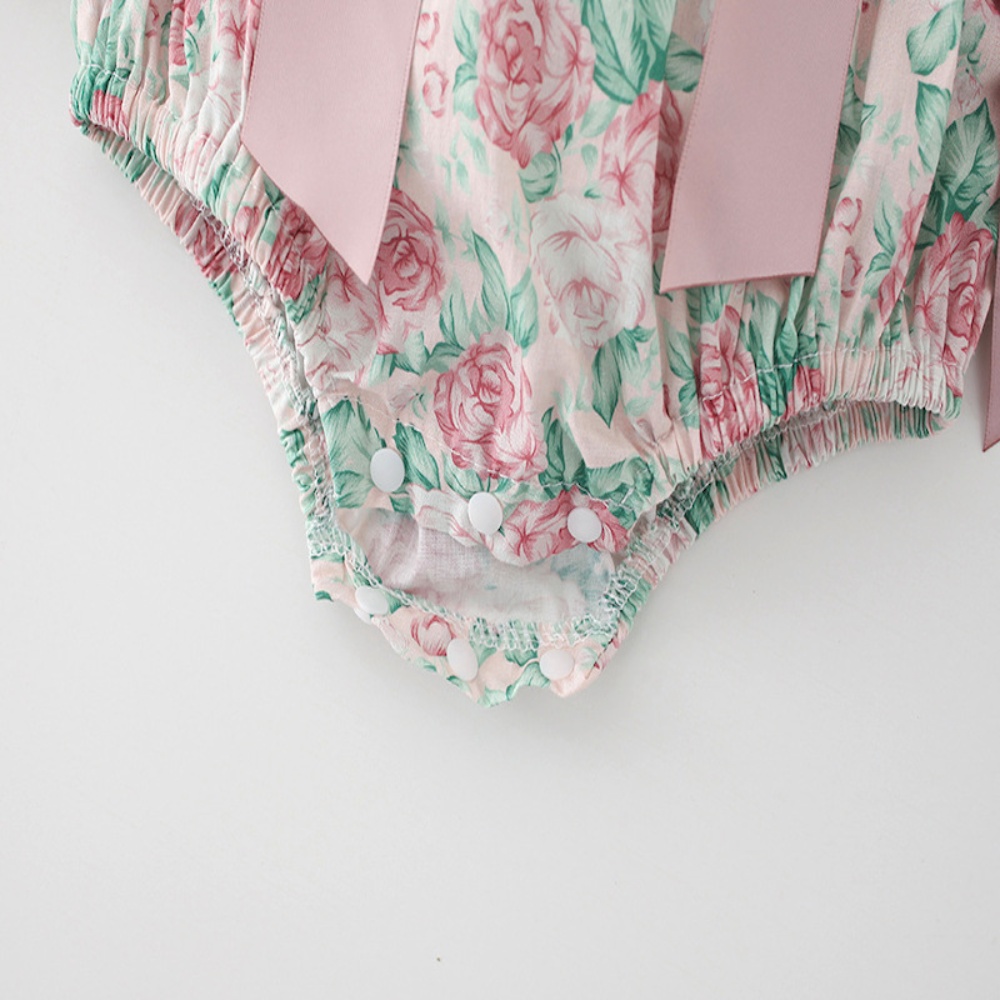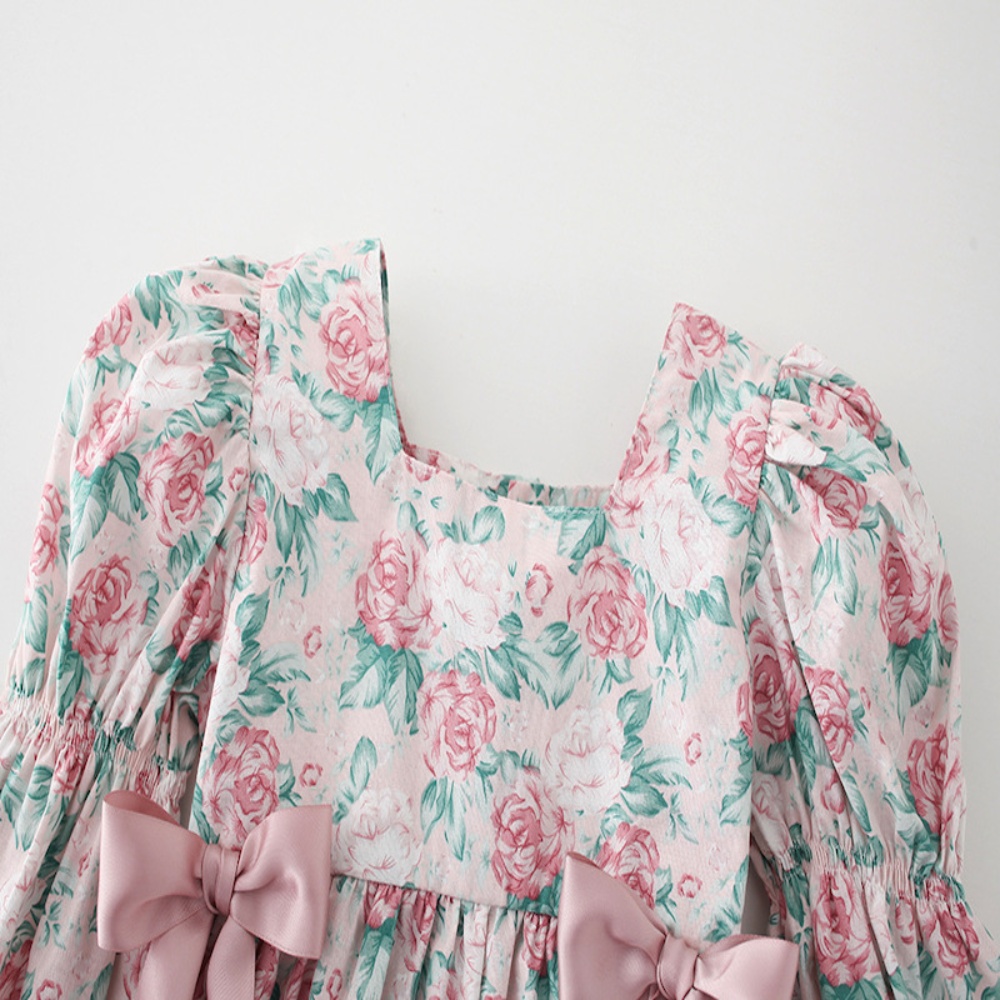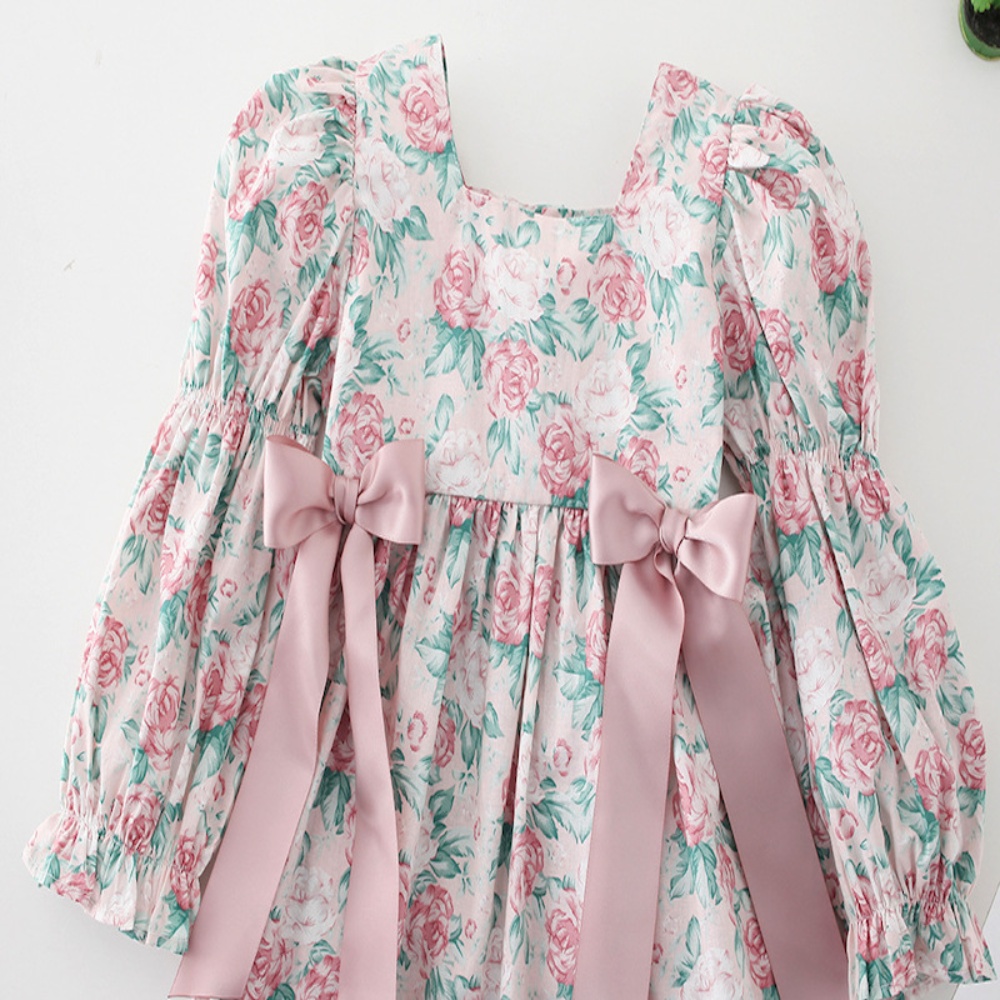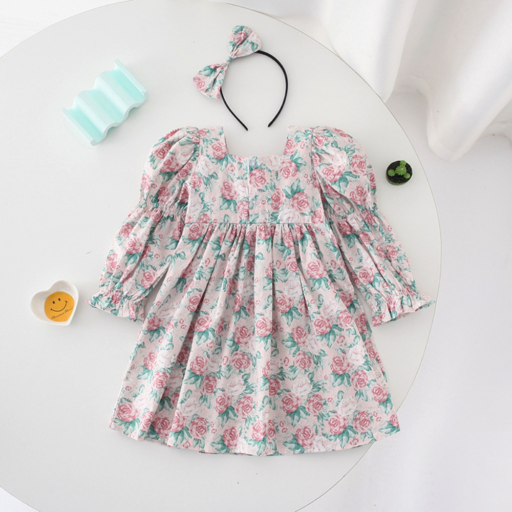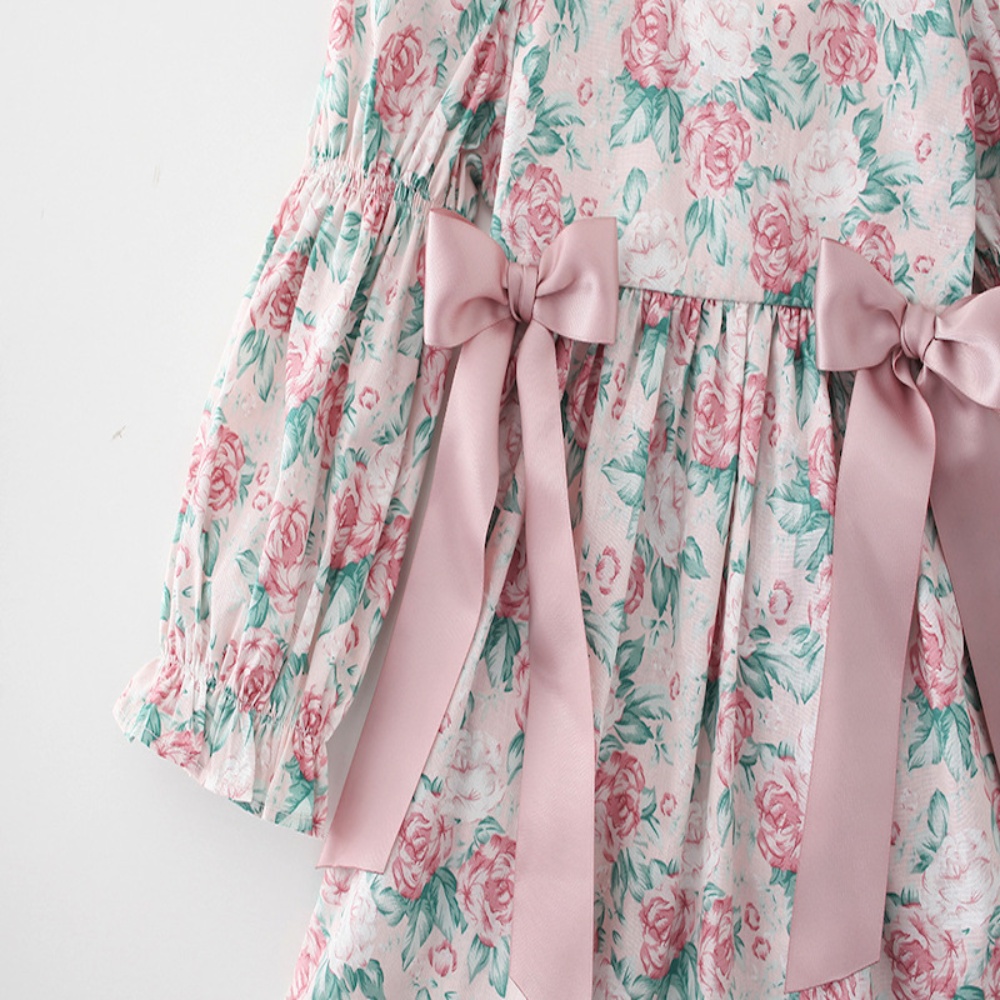 【BS092】韓版復古玫瑰緞帶蝴蝶結長袖包屁衣小洋裝(送髮箍)(1色)