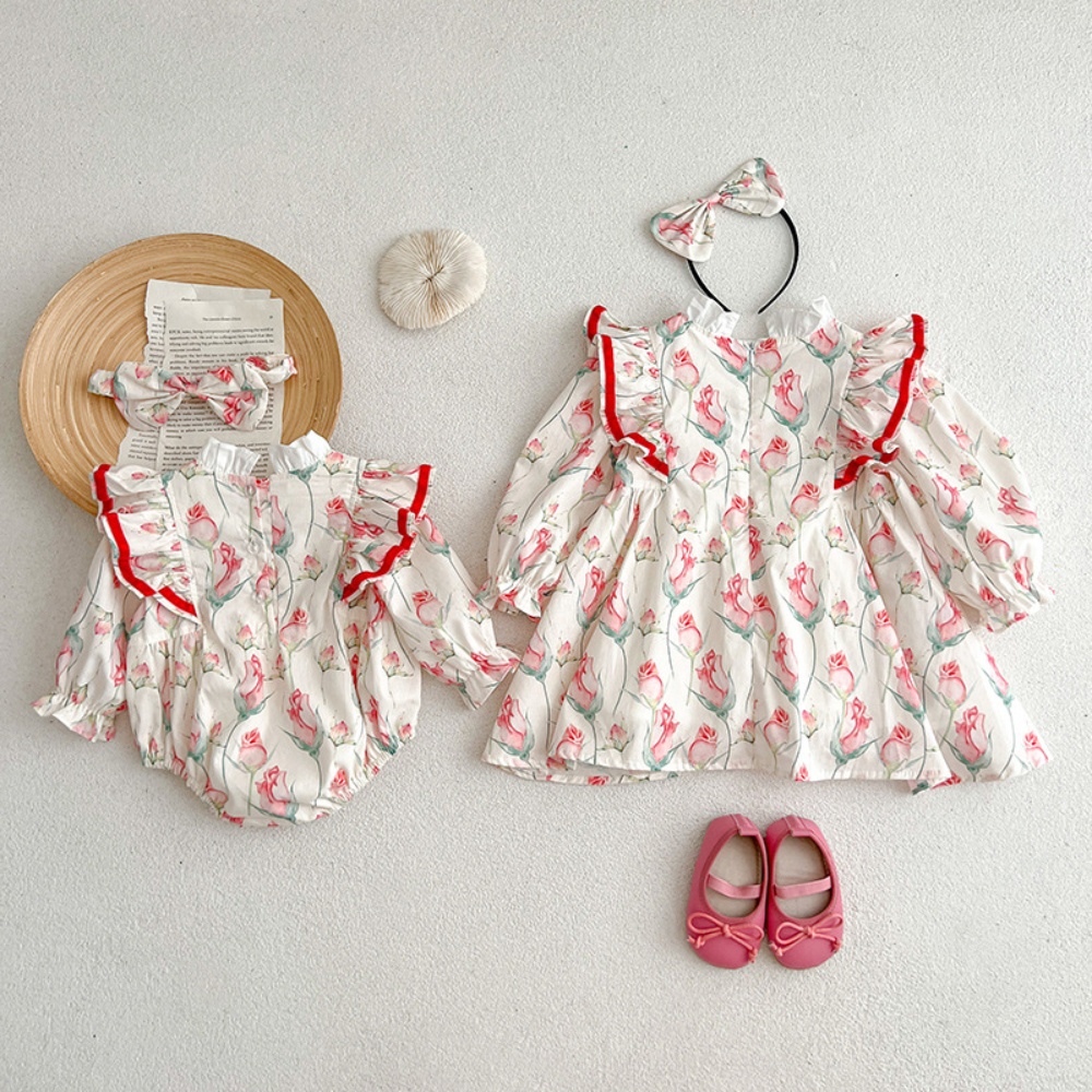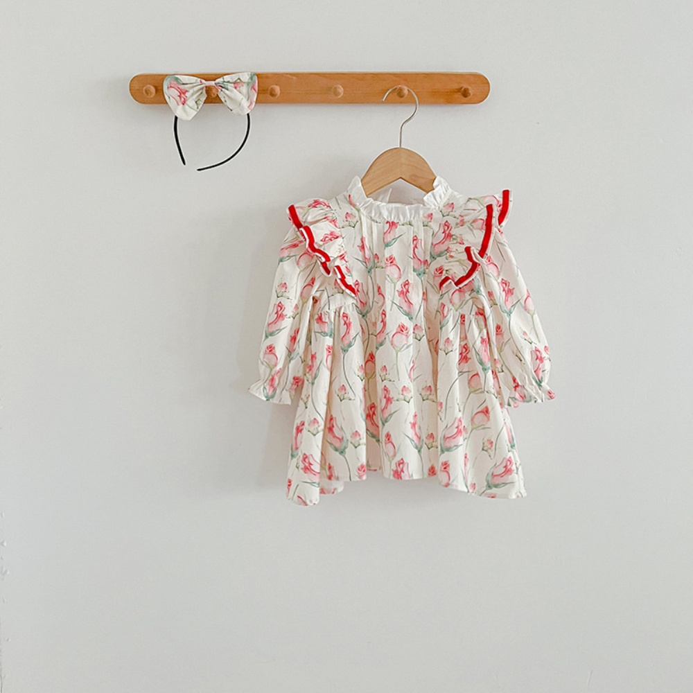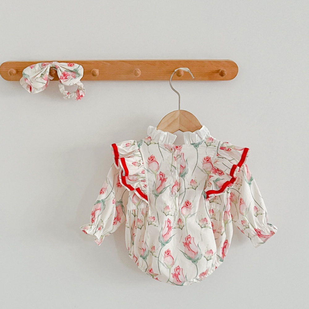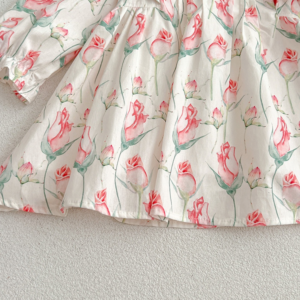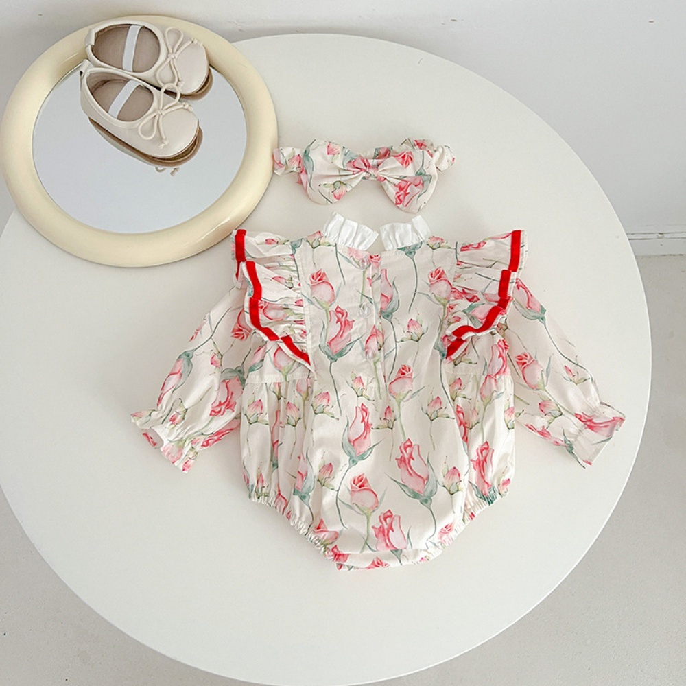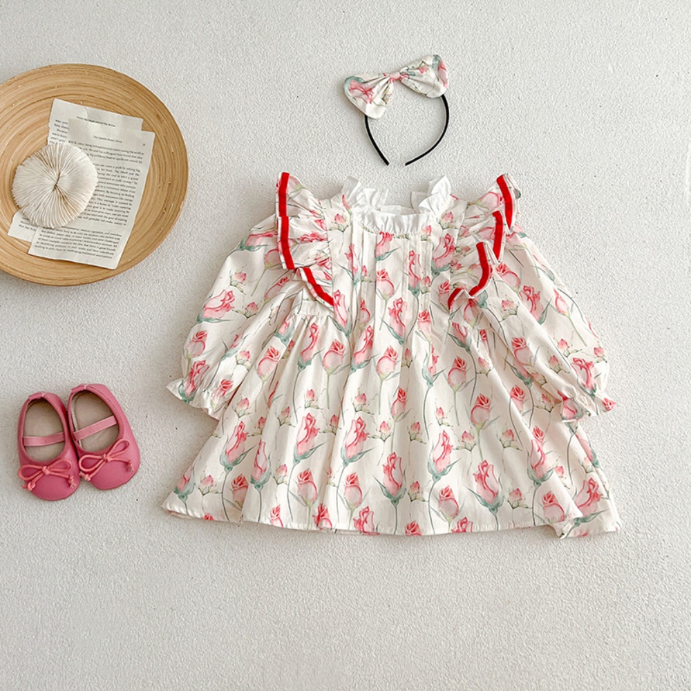 【BS094】韓版浪漫玫瑰花長袖包屁衣小洋裝(送髮箍)(1色)