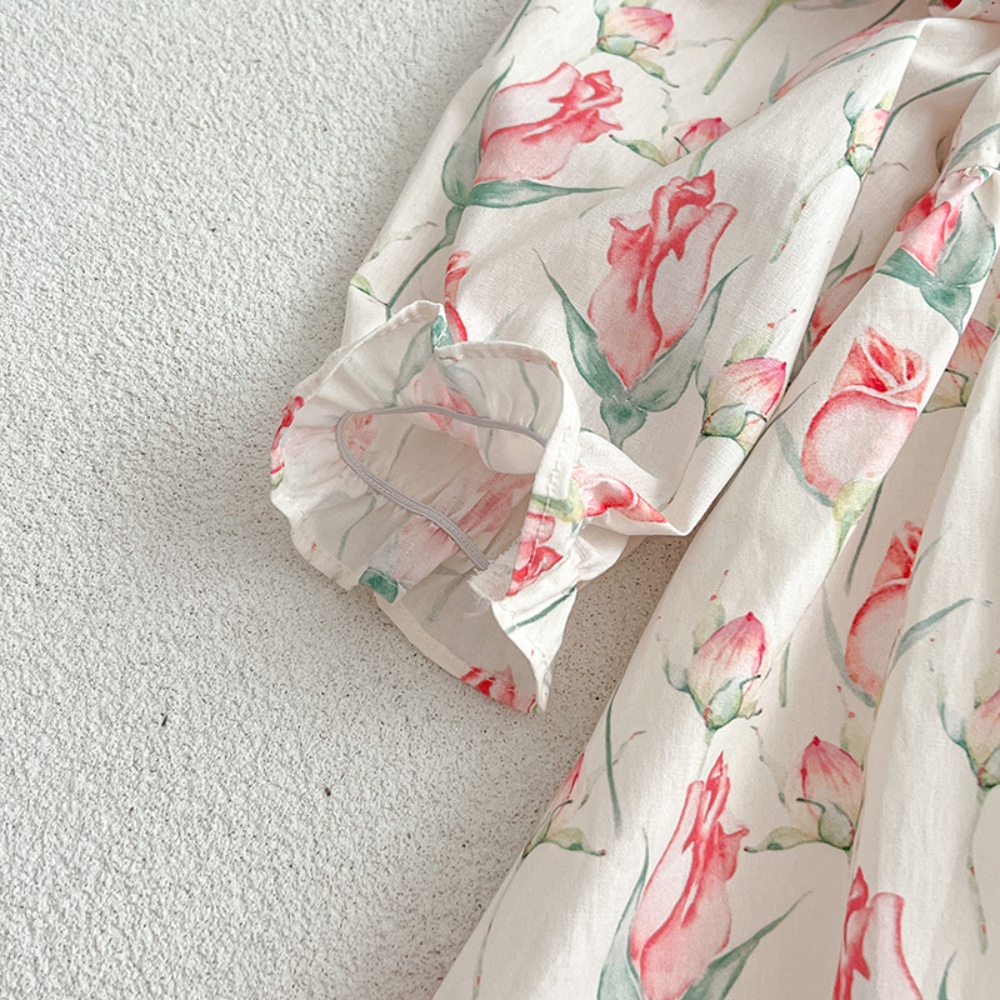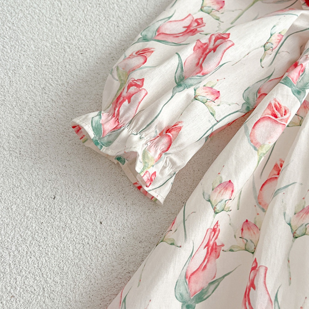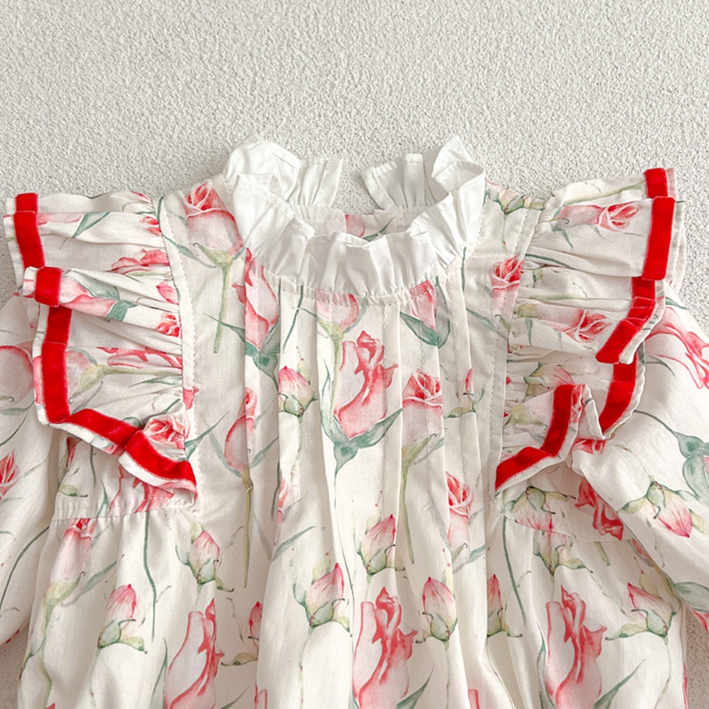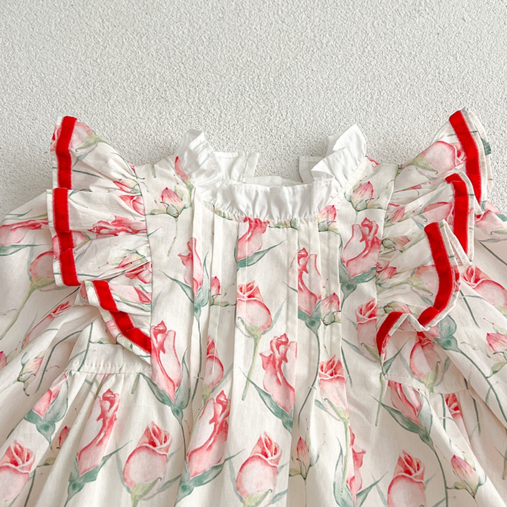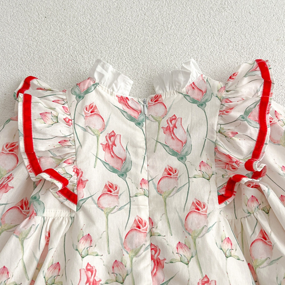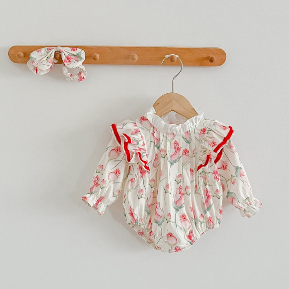 【BS094】韓版浪漫玫瑰花長袖包屁衣小洋裝(送髮箍)(1色)