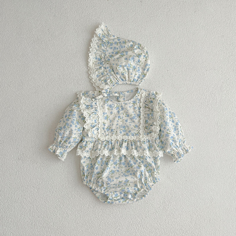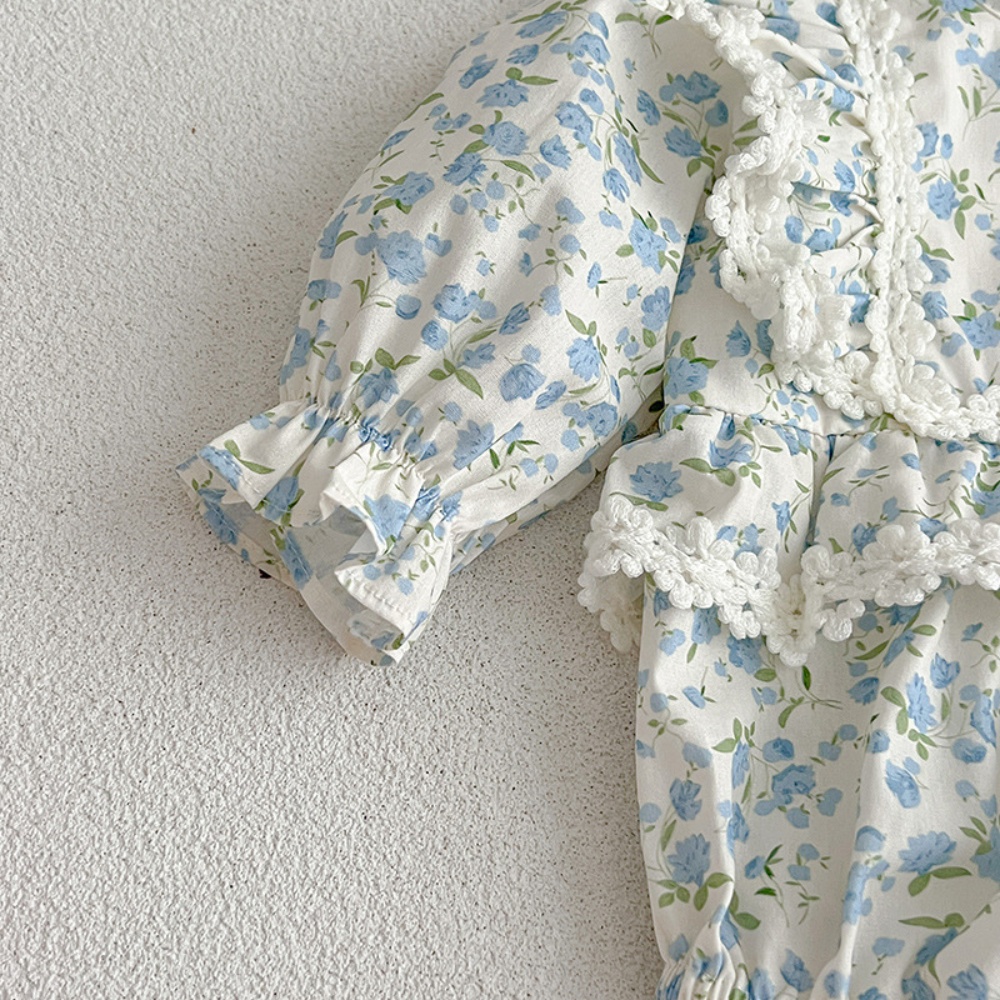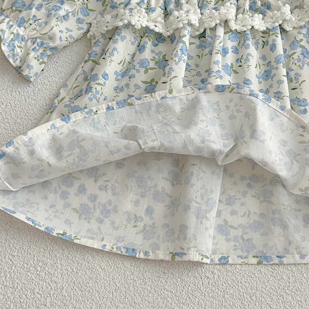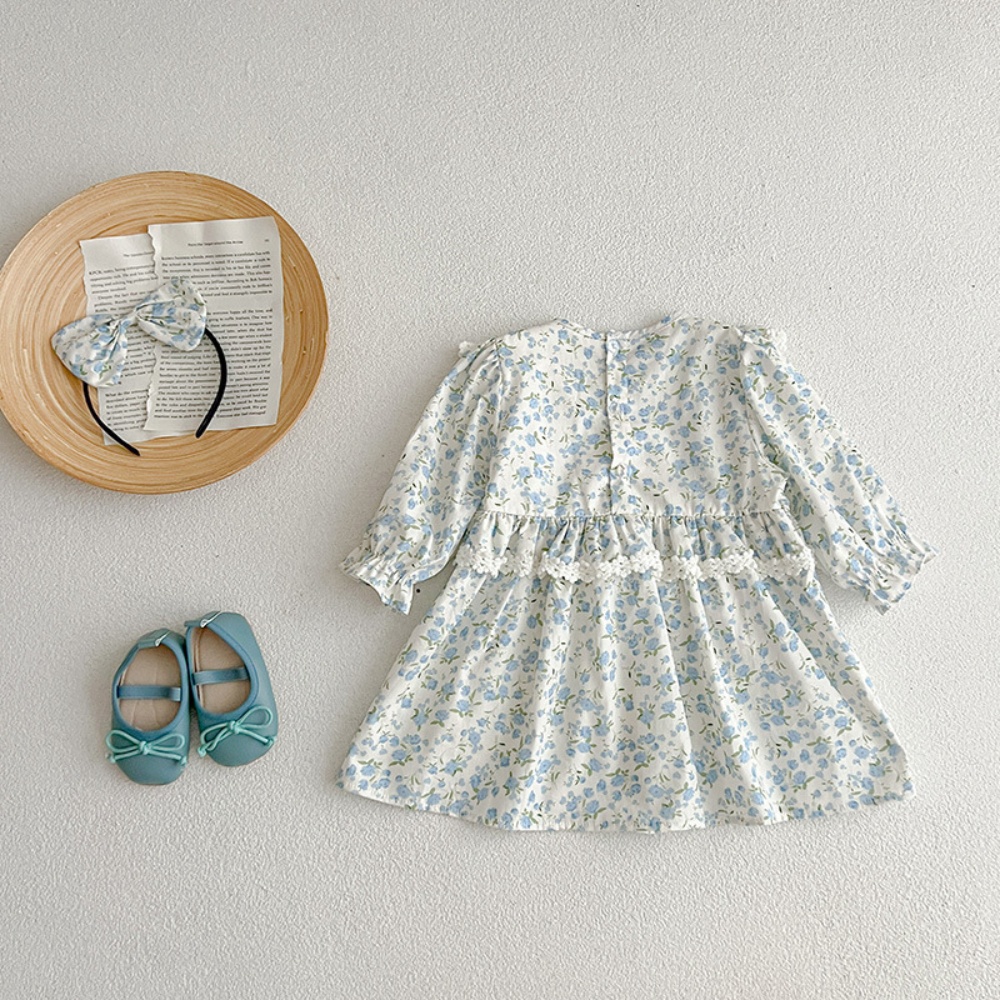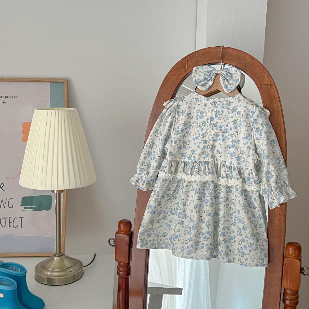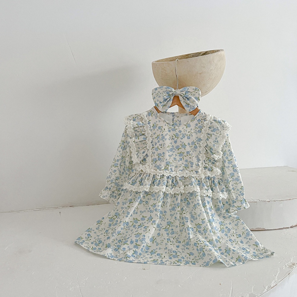【BS096】韓版蕾絲邊小碎花長袖包屁衣小洋裝(送髮箍)(1色)