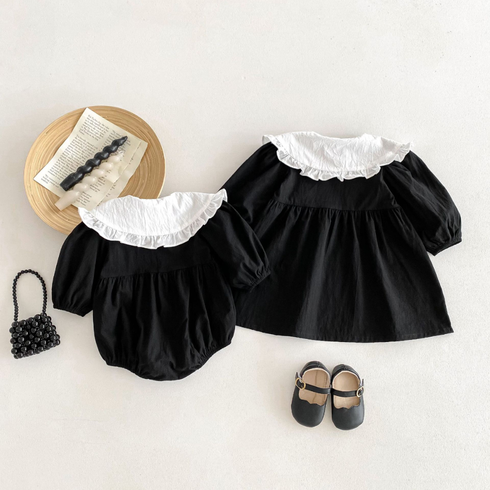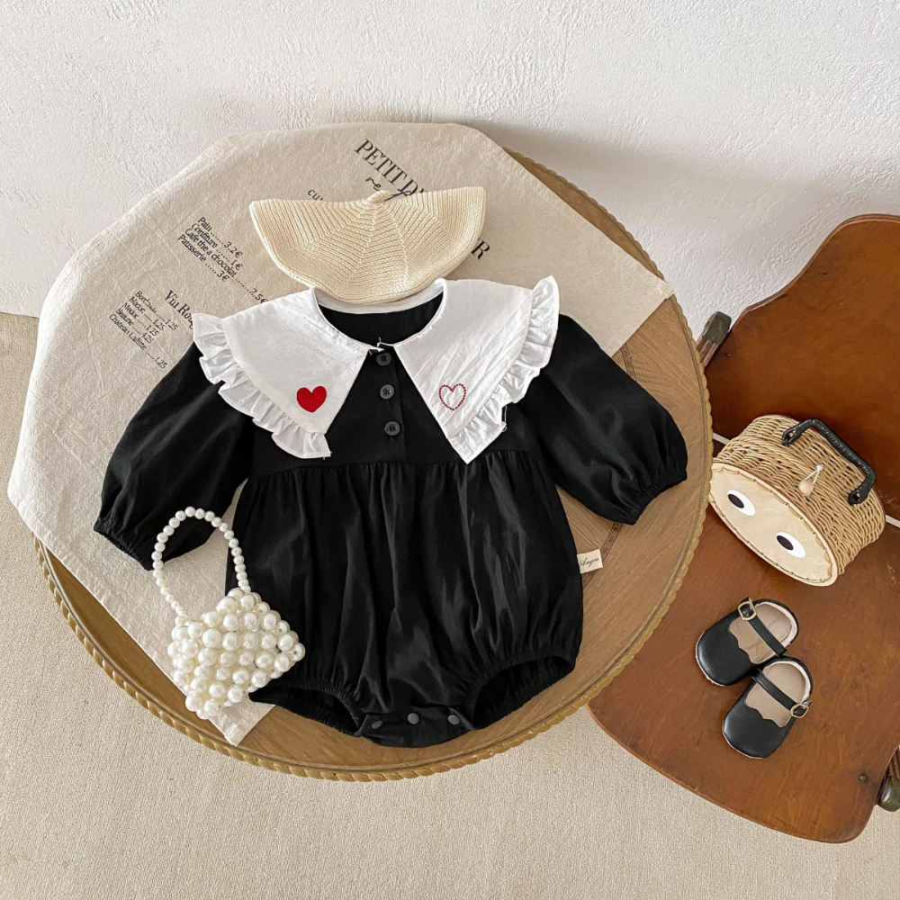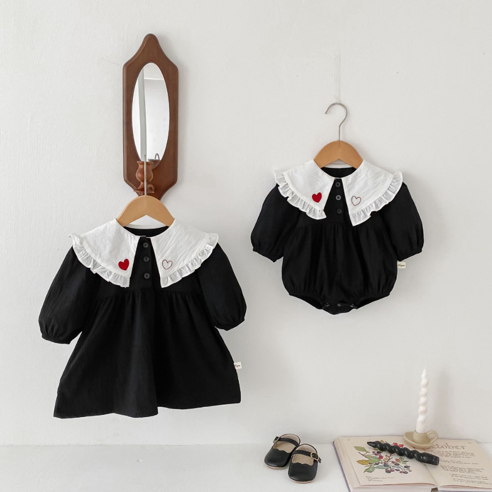 【BS210】韓版黑白刺繡愛心長袖包屁衣小洋裝(1色)