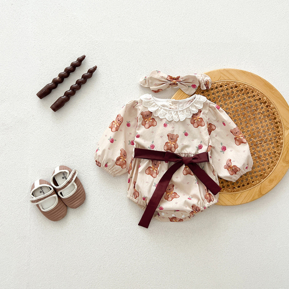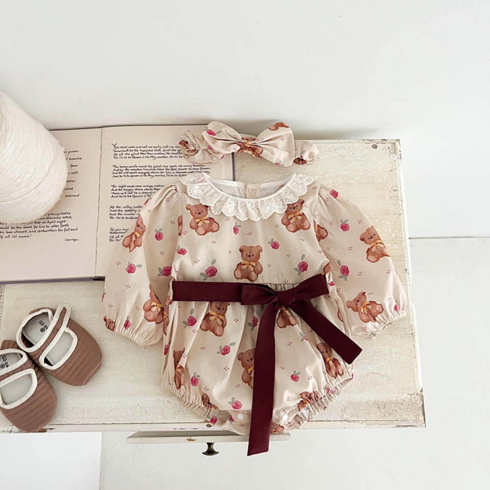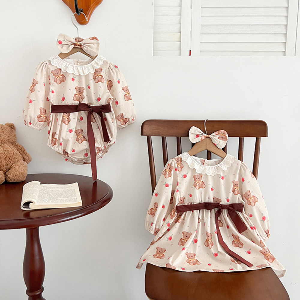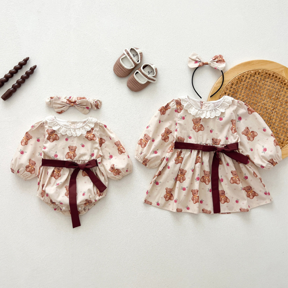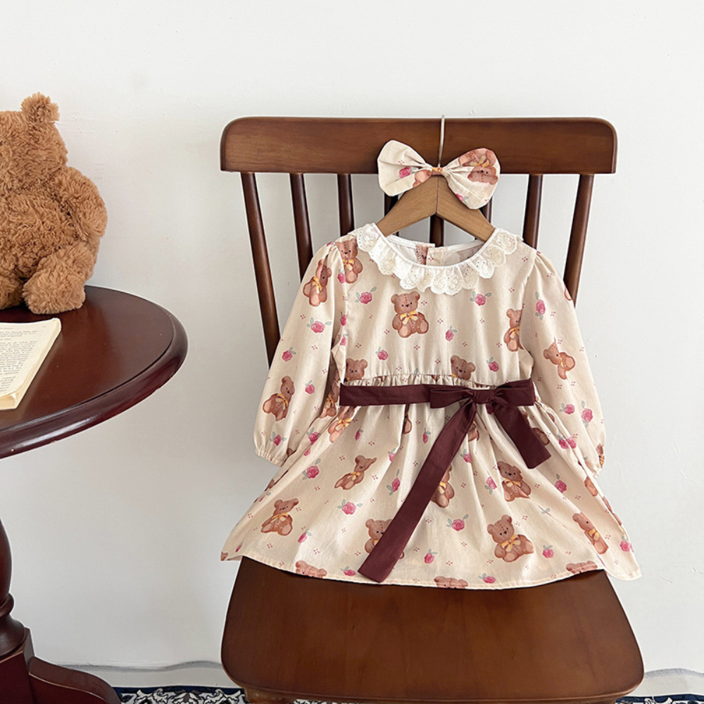 【BS216】韓版蝴蝶結小熊長袖包屁衣小洋裝(送髮箍)(1色)