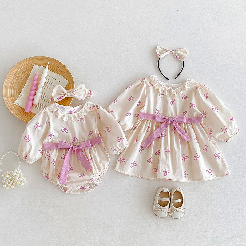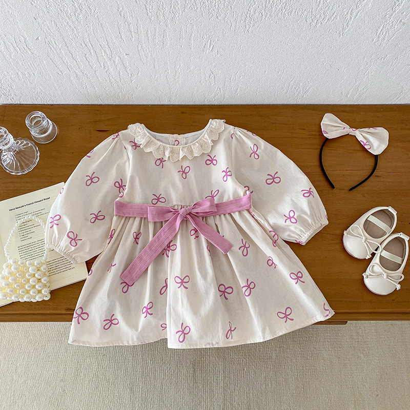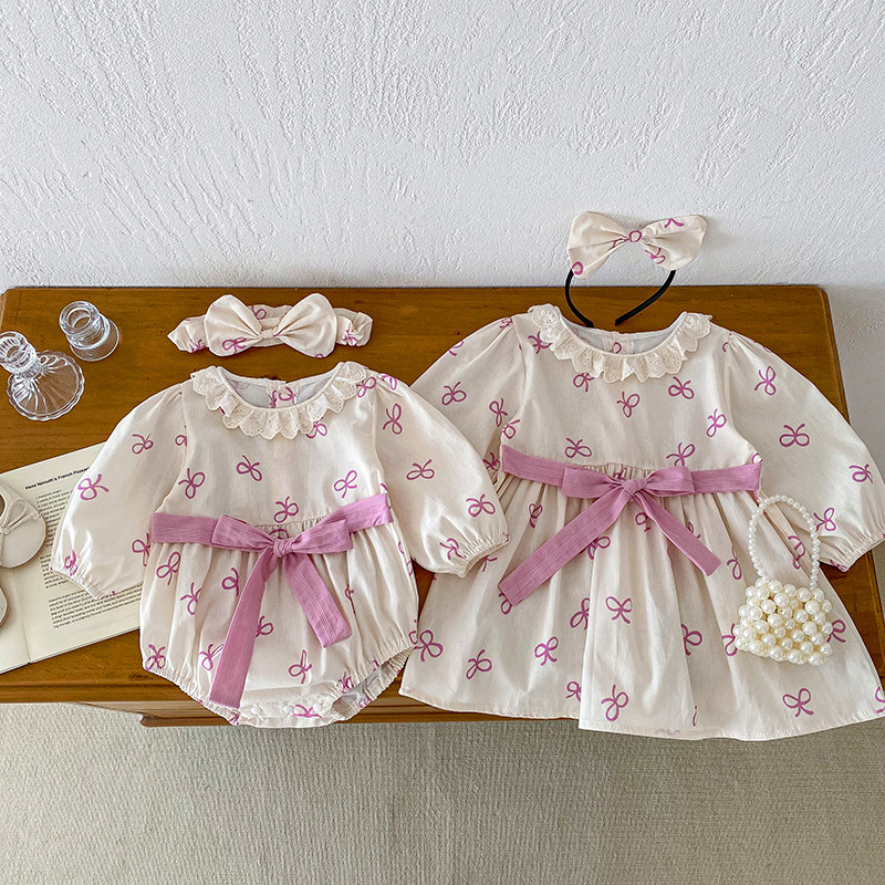 【BS217】韓版小蝴蝶結長袖包屁衣小洋裝(送髮箍)(1色)