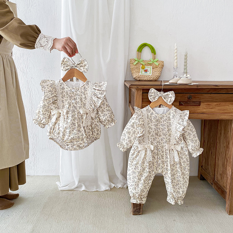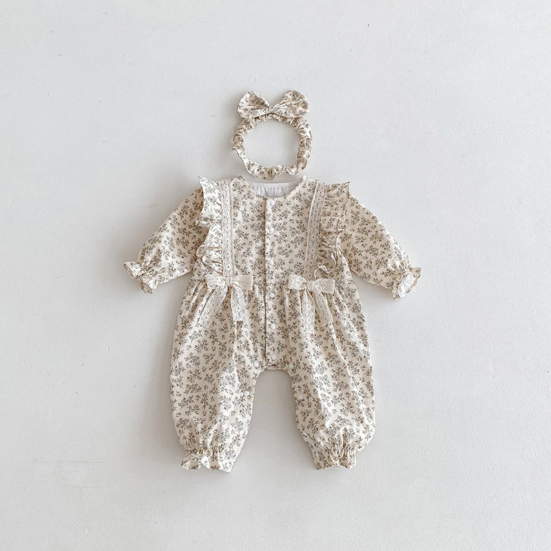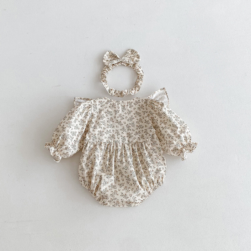 【BS230】韓版浪漫小碎花長袖包屁衣連身衣(送髮帶)(1色)