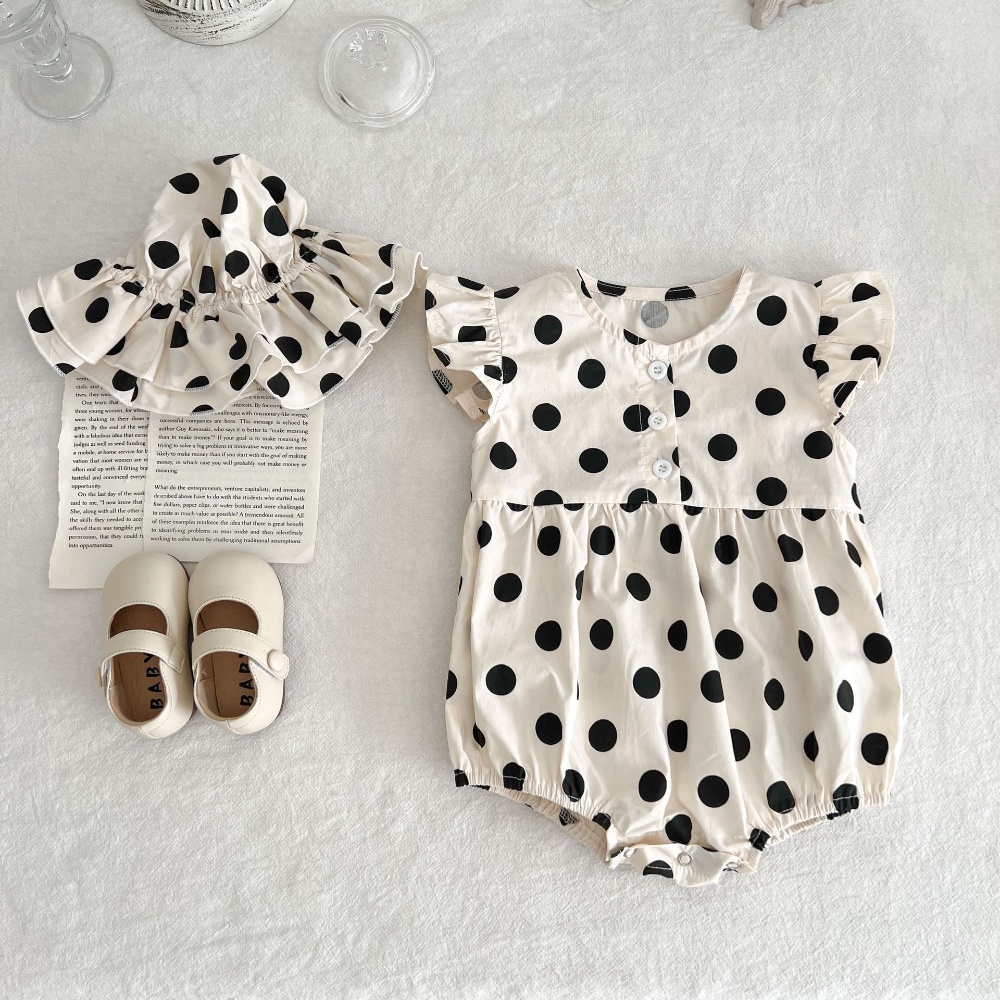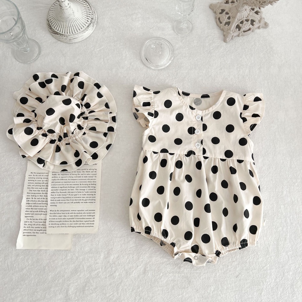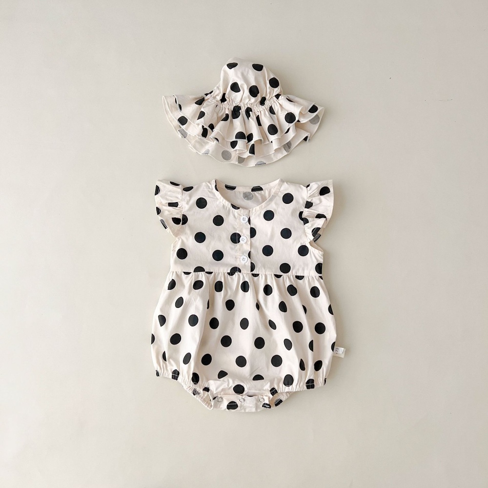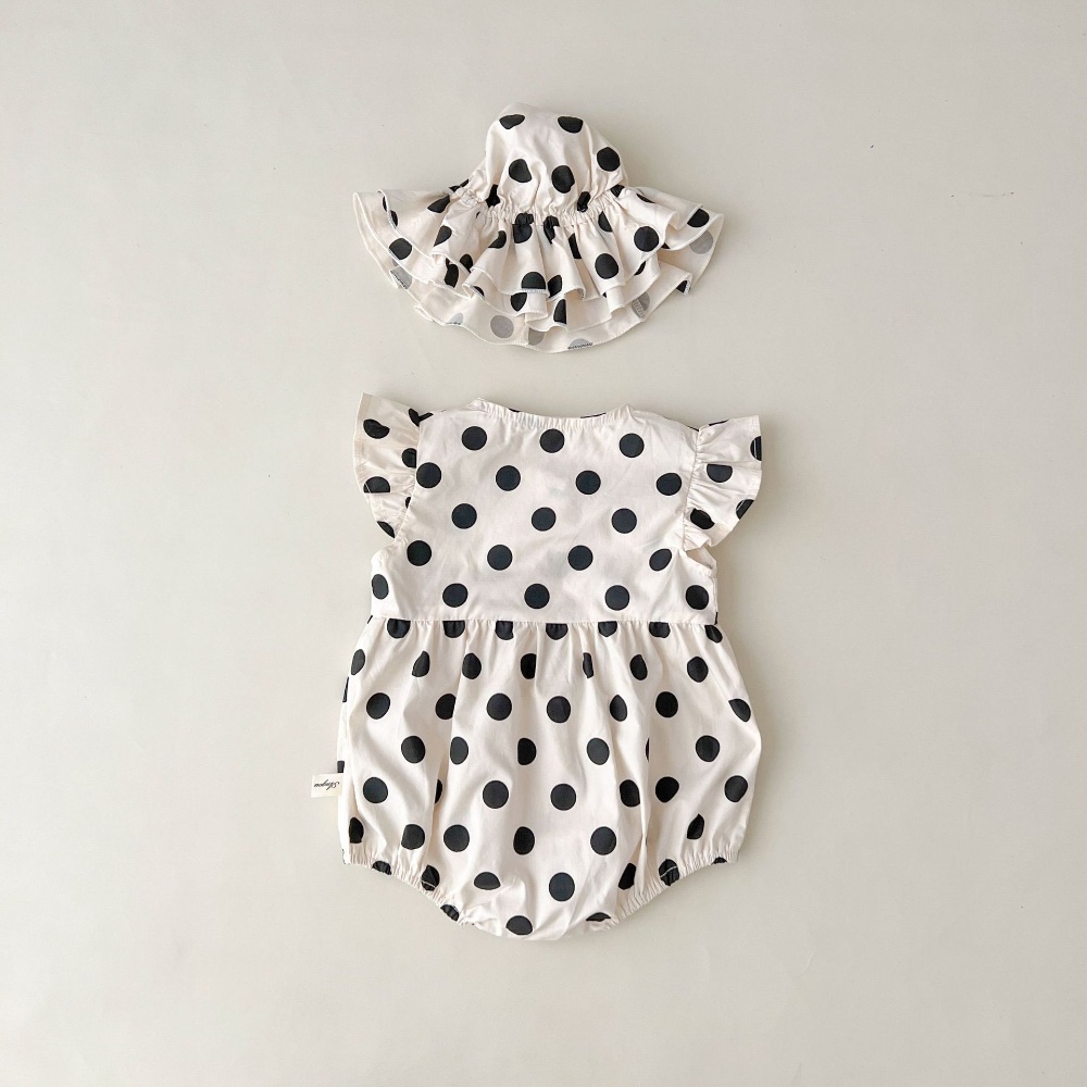 【BA430】韓版點點鈕扣無袖包屁衣(送遮陽帽)(1色)
