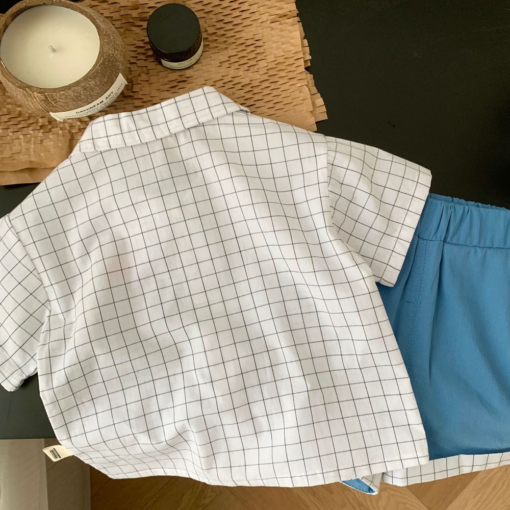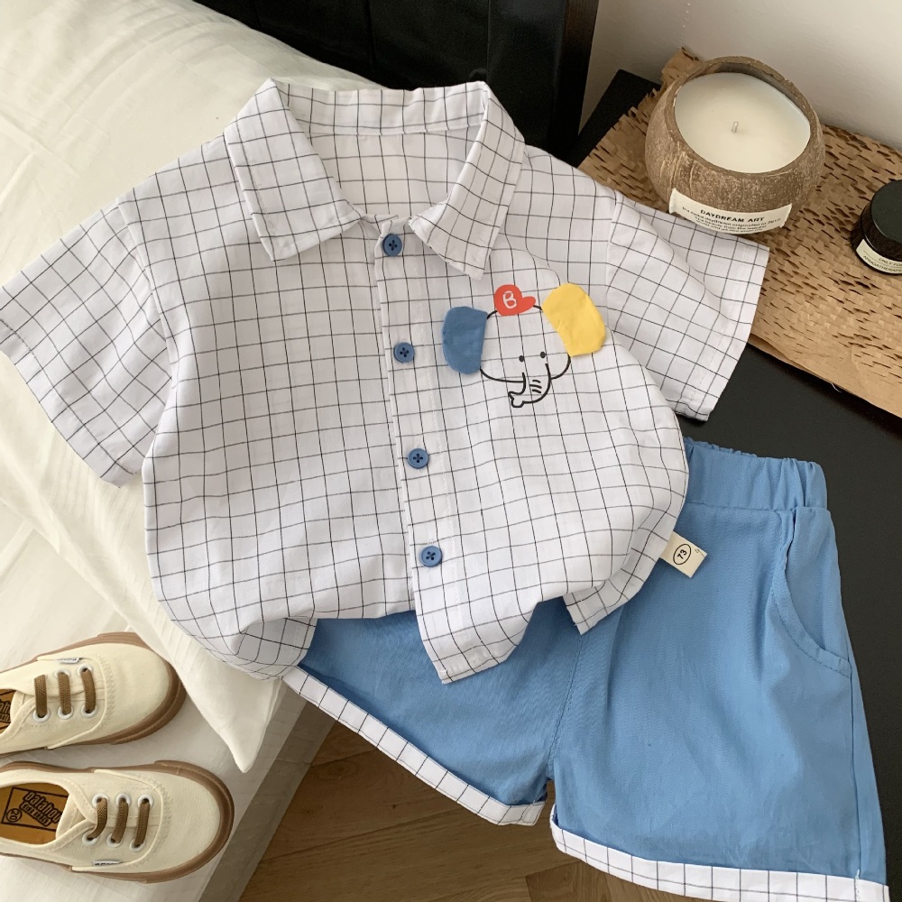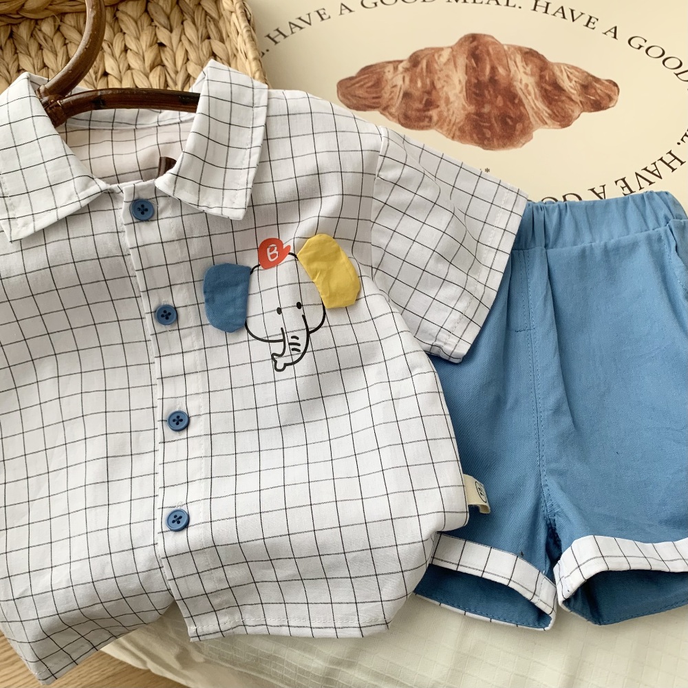 【BA328】韓版大象格紋兩件式短袖短褲套裝(1色)