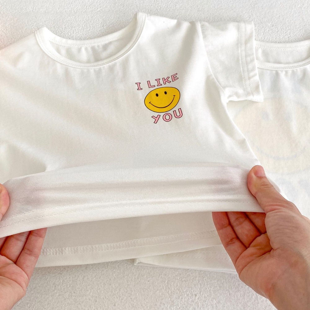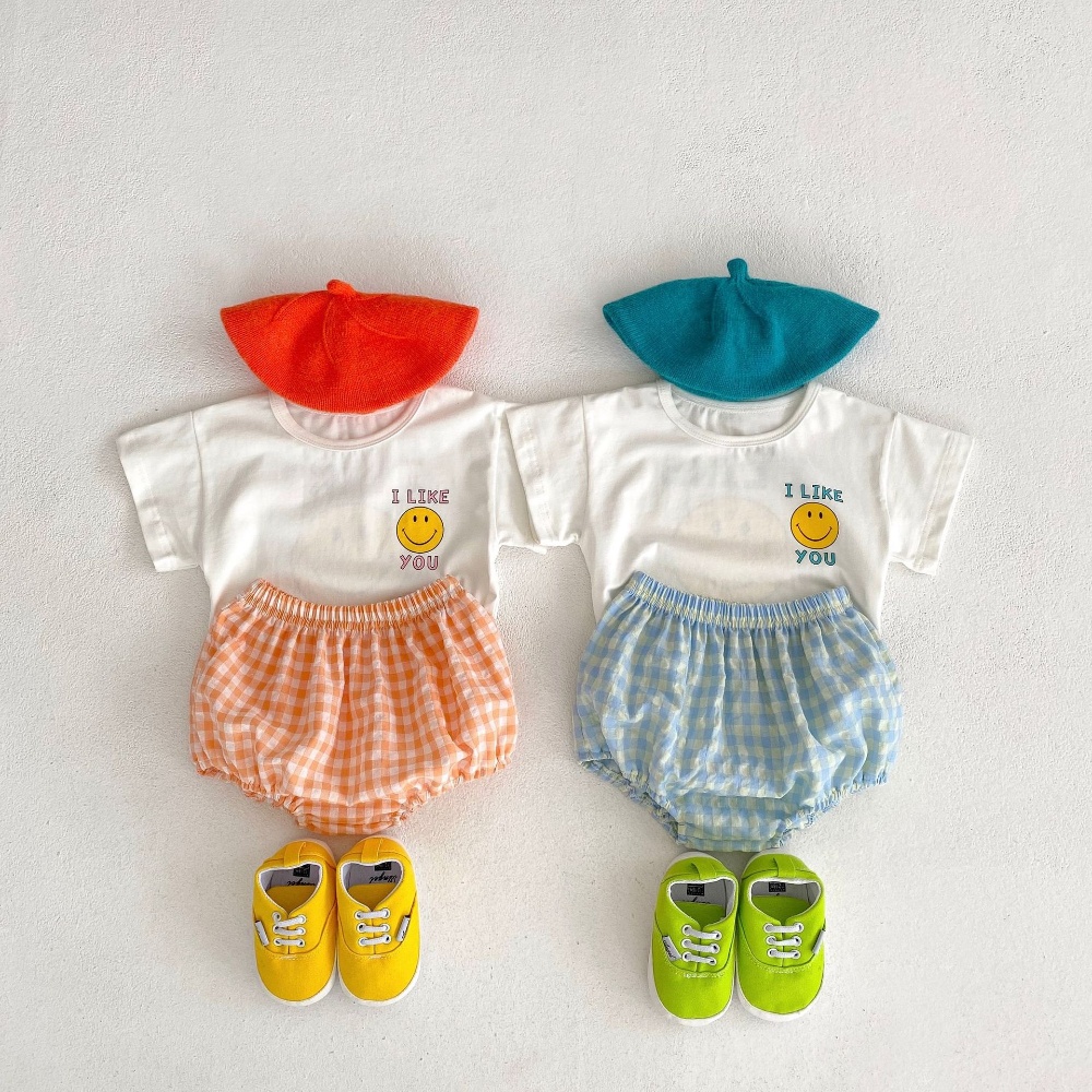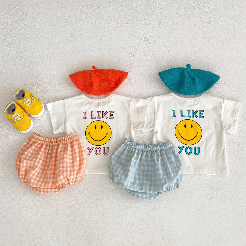 【BA357】韓版笑臉字母兩件式短袖短褲套裝(2色)