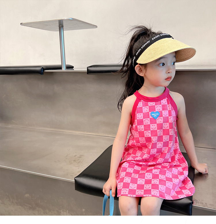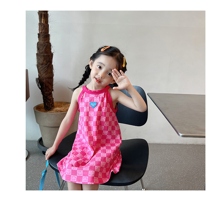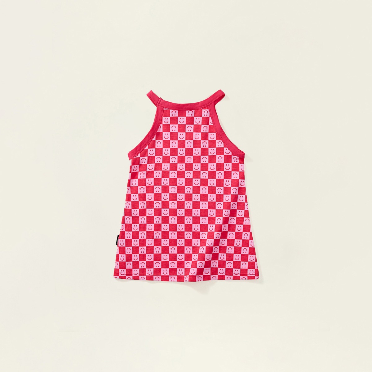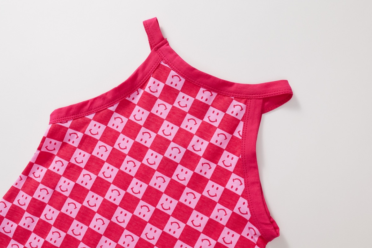 【BG044】日系笑臉小方格愛心無袖澎澎洋裝(1色)