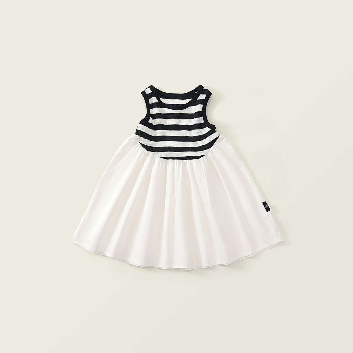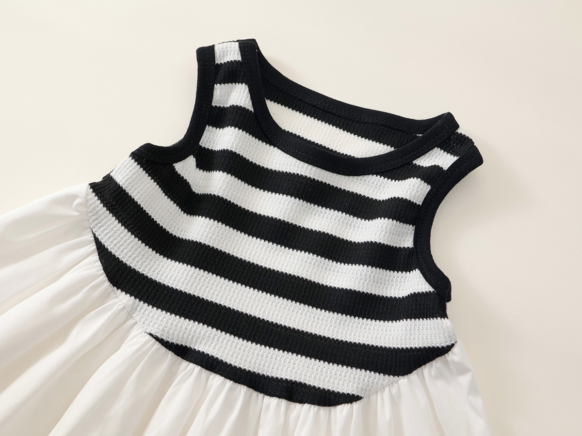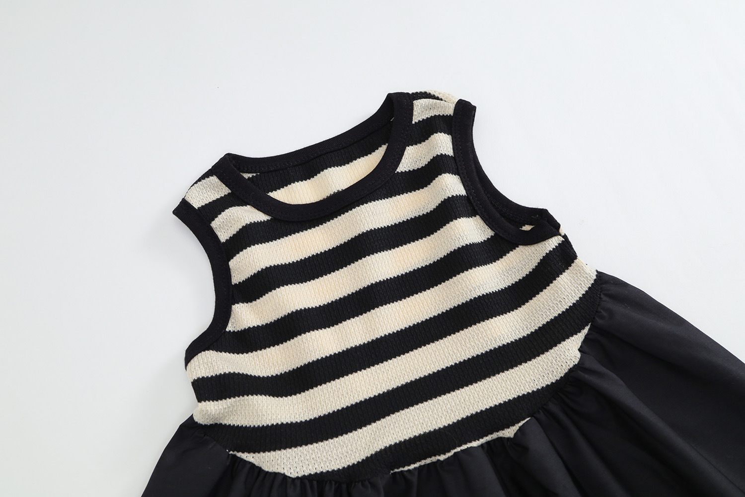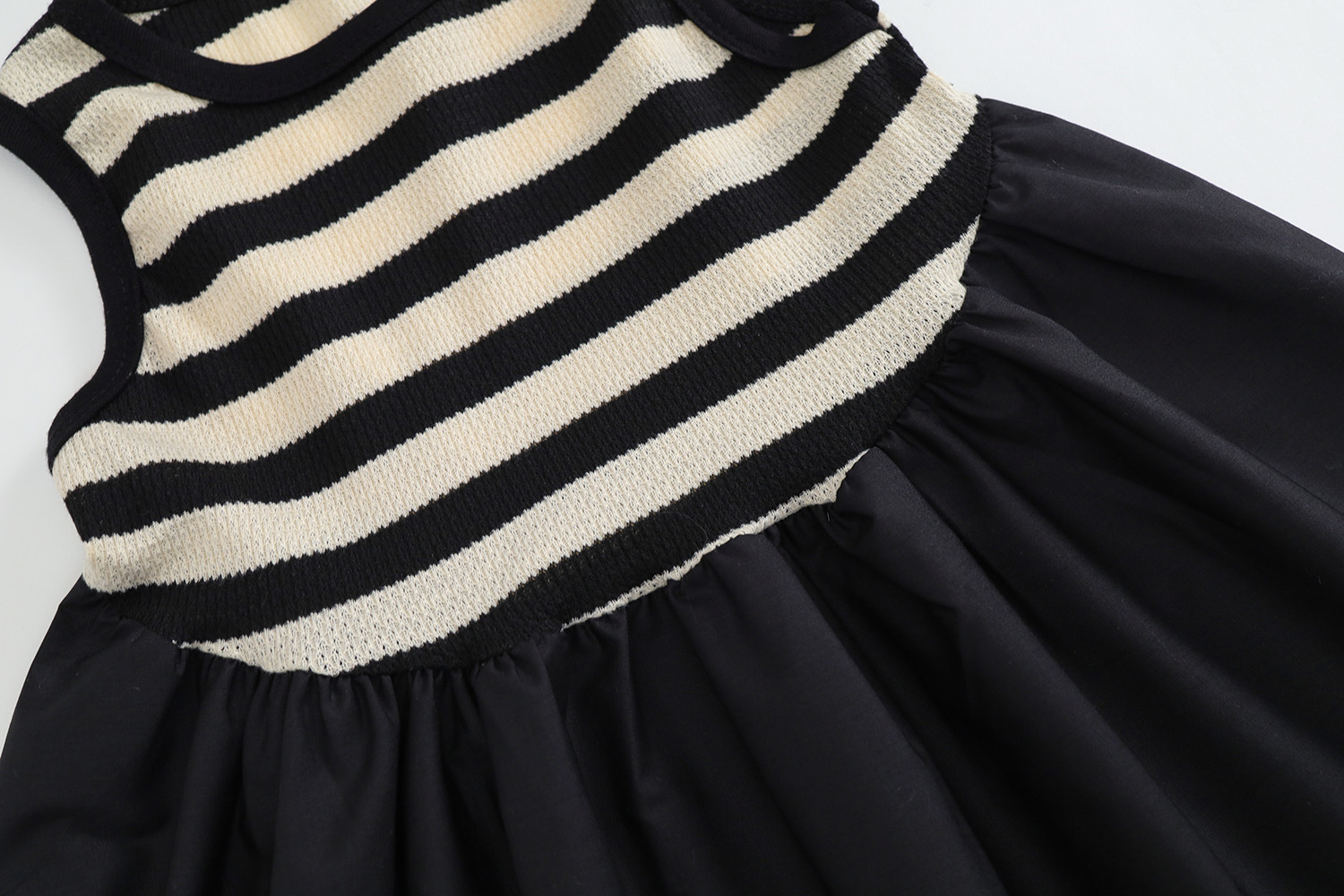 【BG069】日系拼接條紋無袖澎澎洋裝(2色)