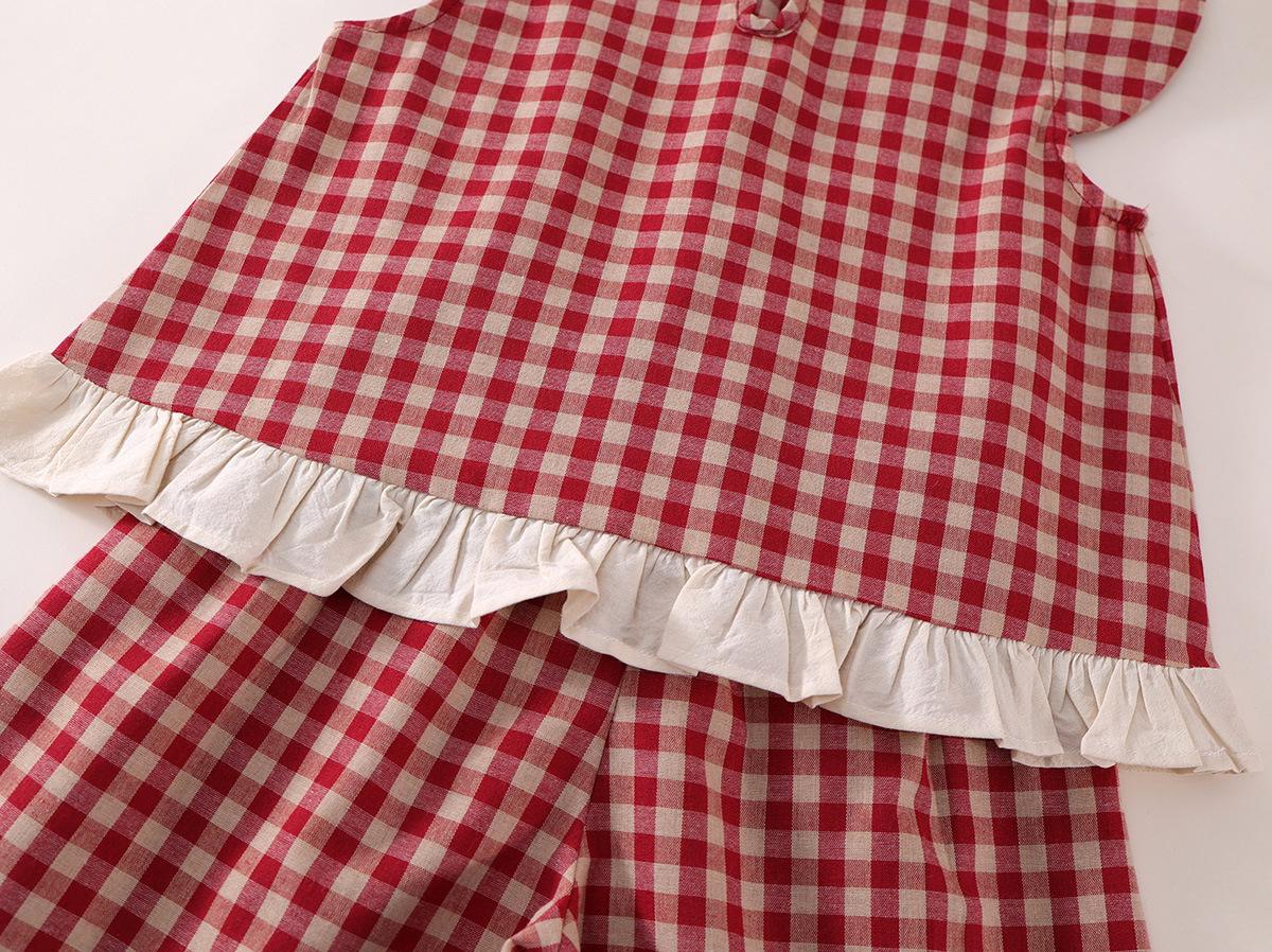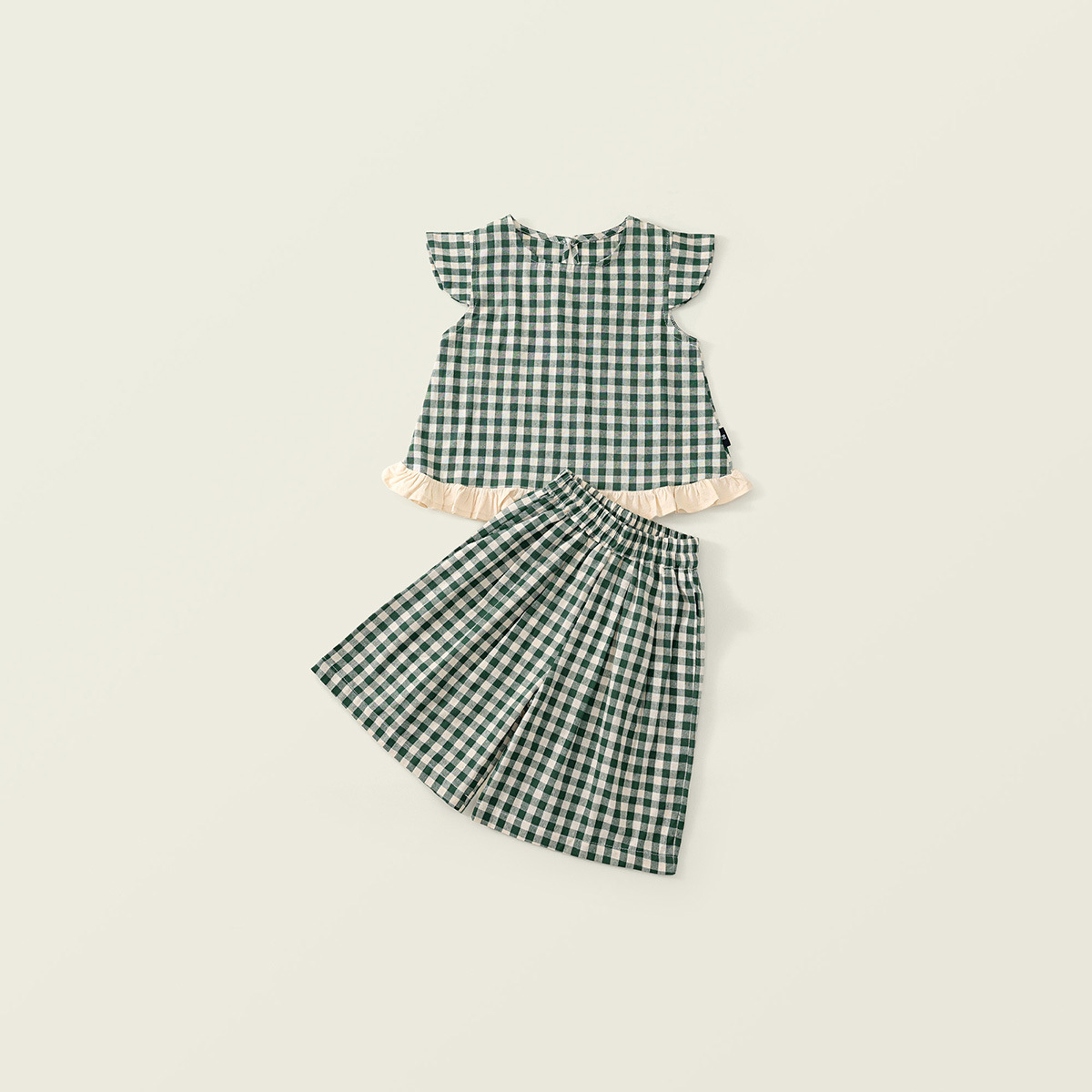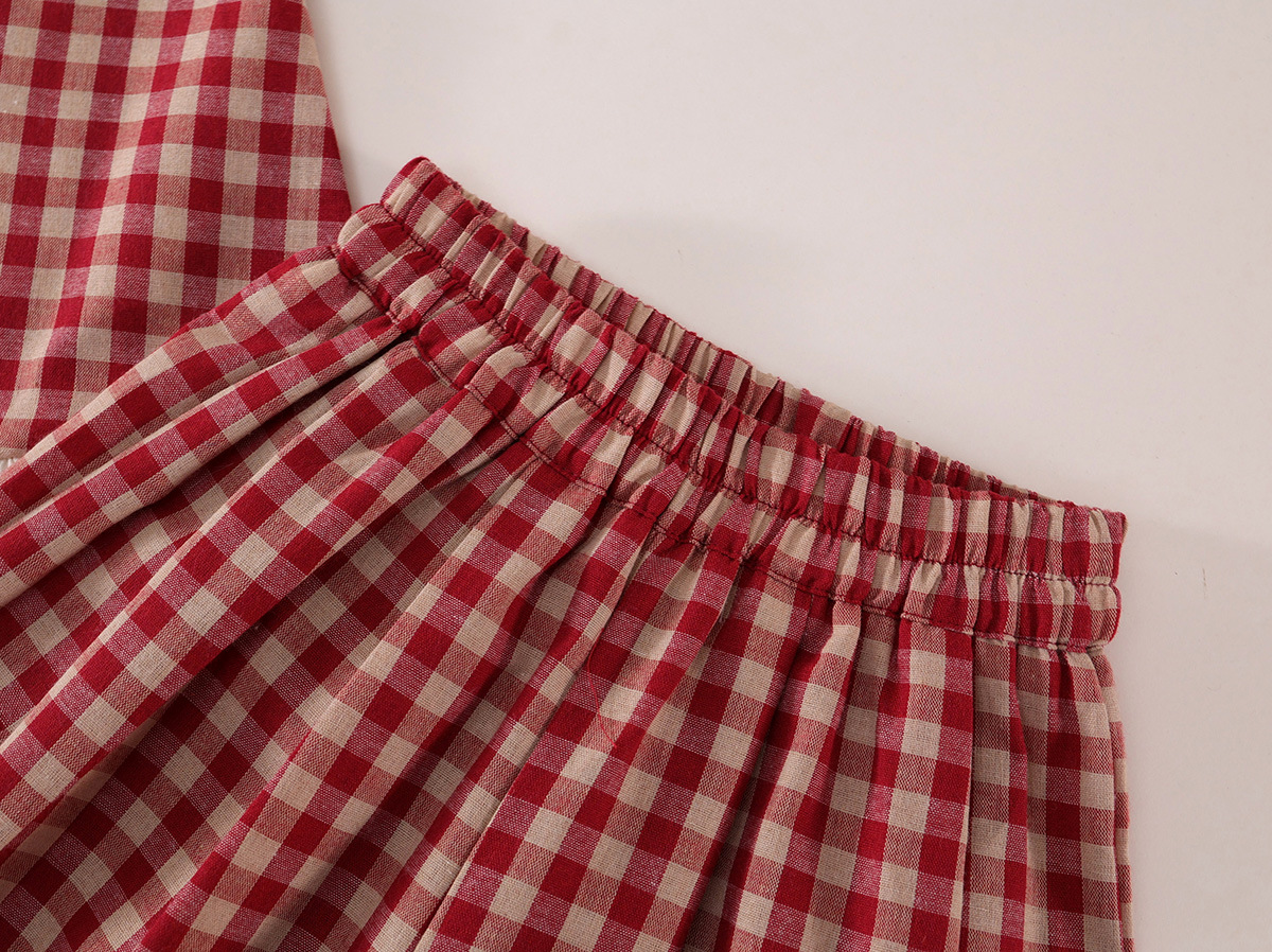 【BG293】日系小格紋兩件式無袖七分褲套裝(2色)