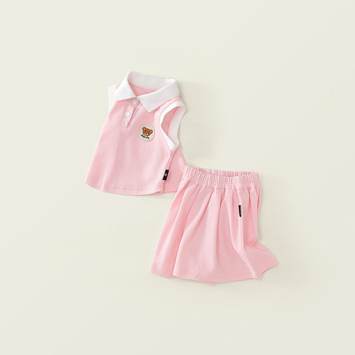【BG507】日系刺繡小熊兩件式無袖短褲套裝(1色)