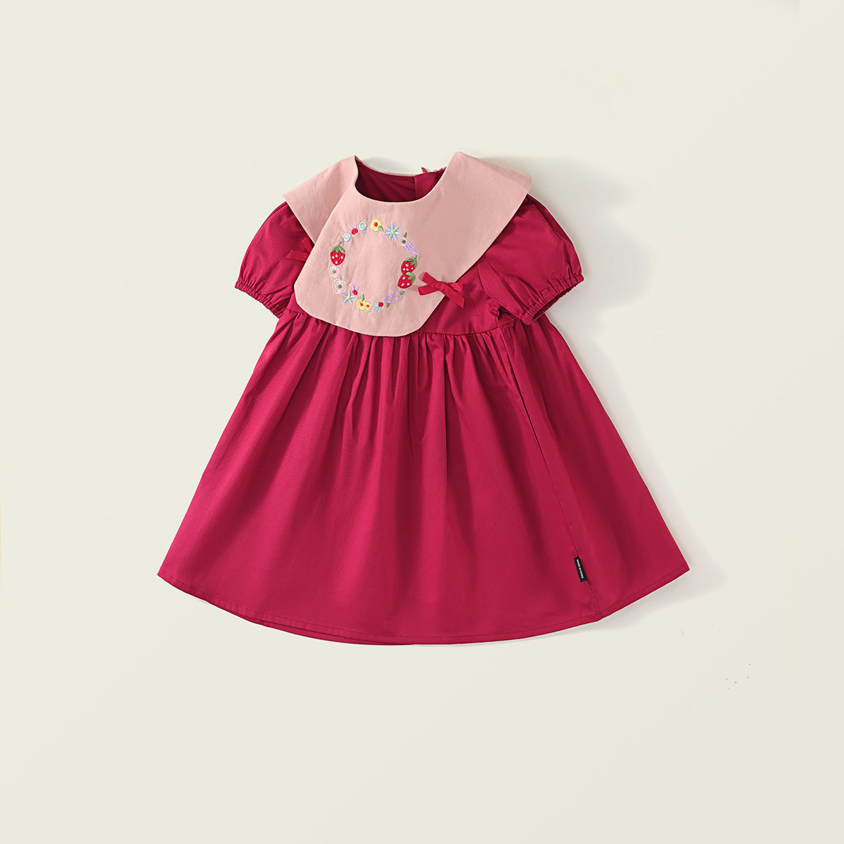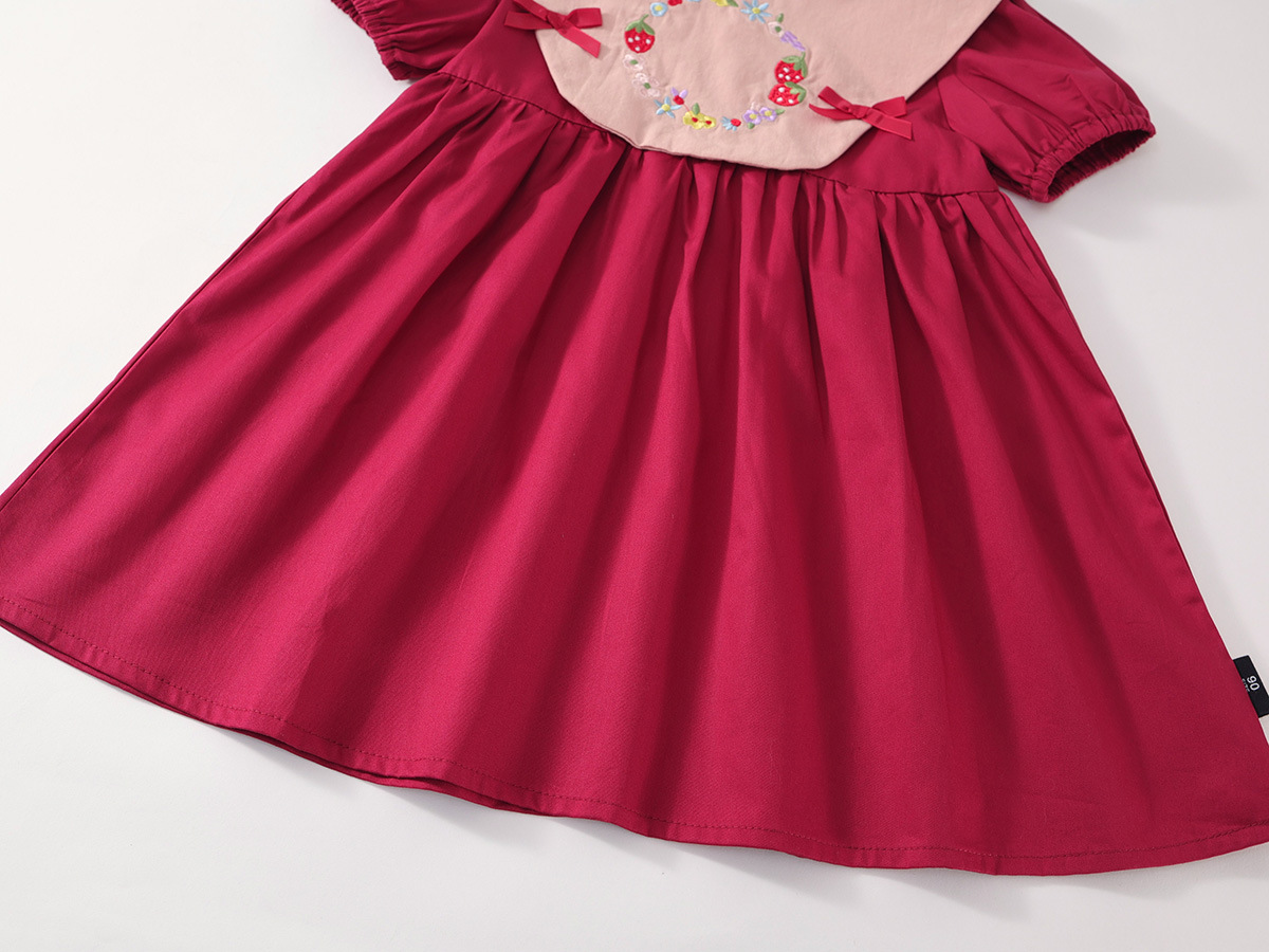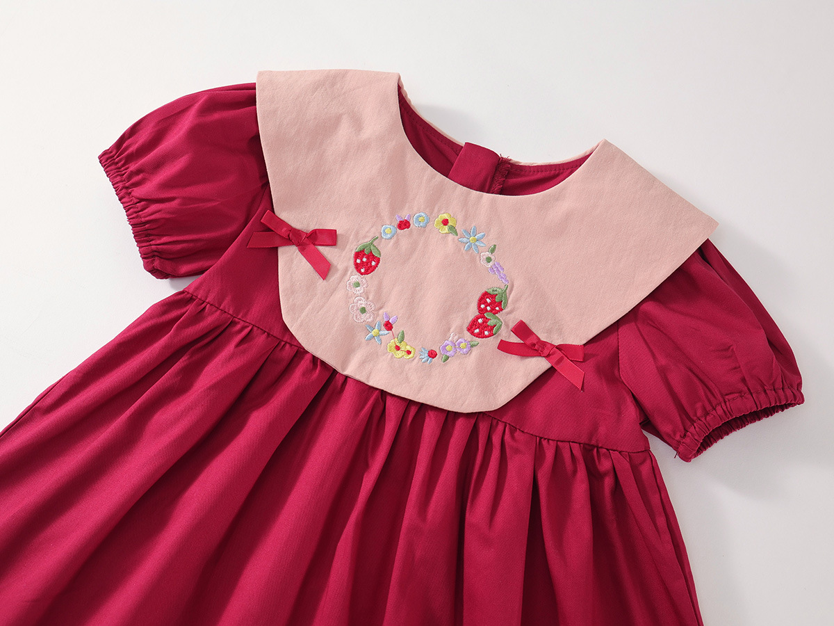 【BG540】日系刺繡草莓花短袖澎澎洋裝(2色)