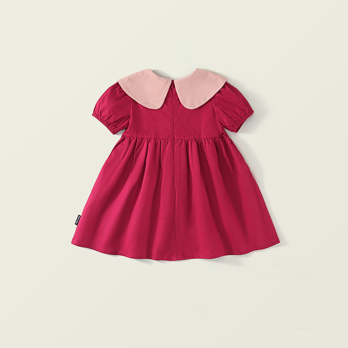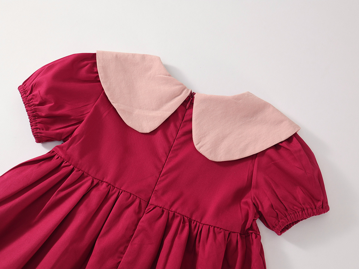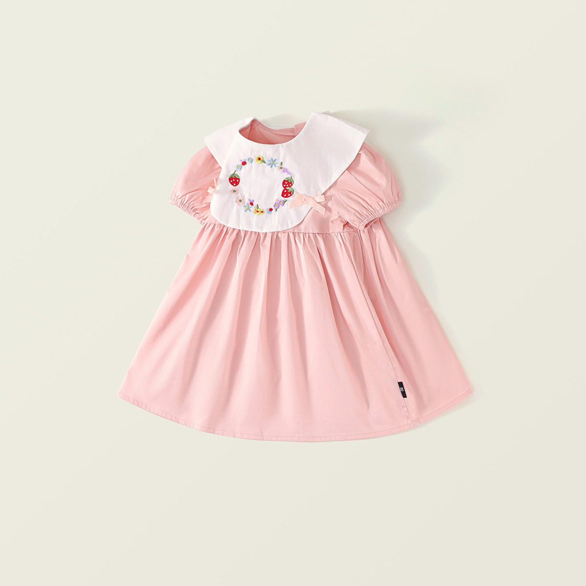 【BG540】日系刺繡草莓花短袖澎澎洋裝(2色)