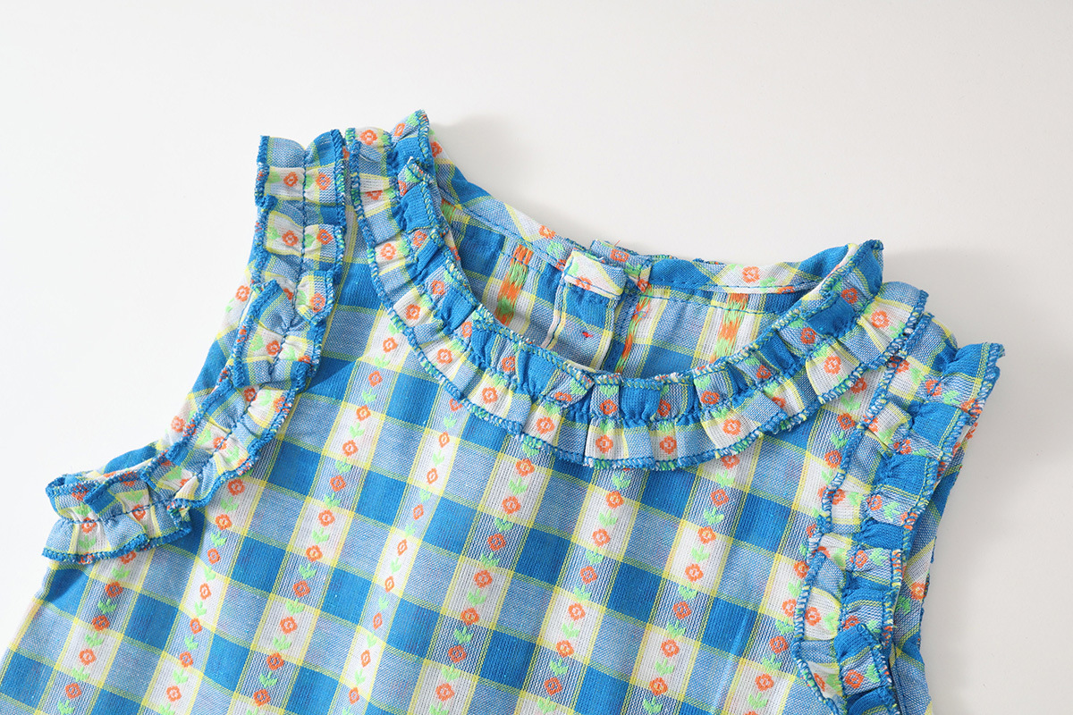 【BG562】日系方格小花兩件式無袖長褲套裝(1色)